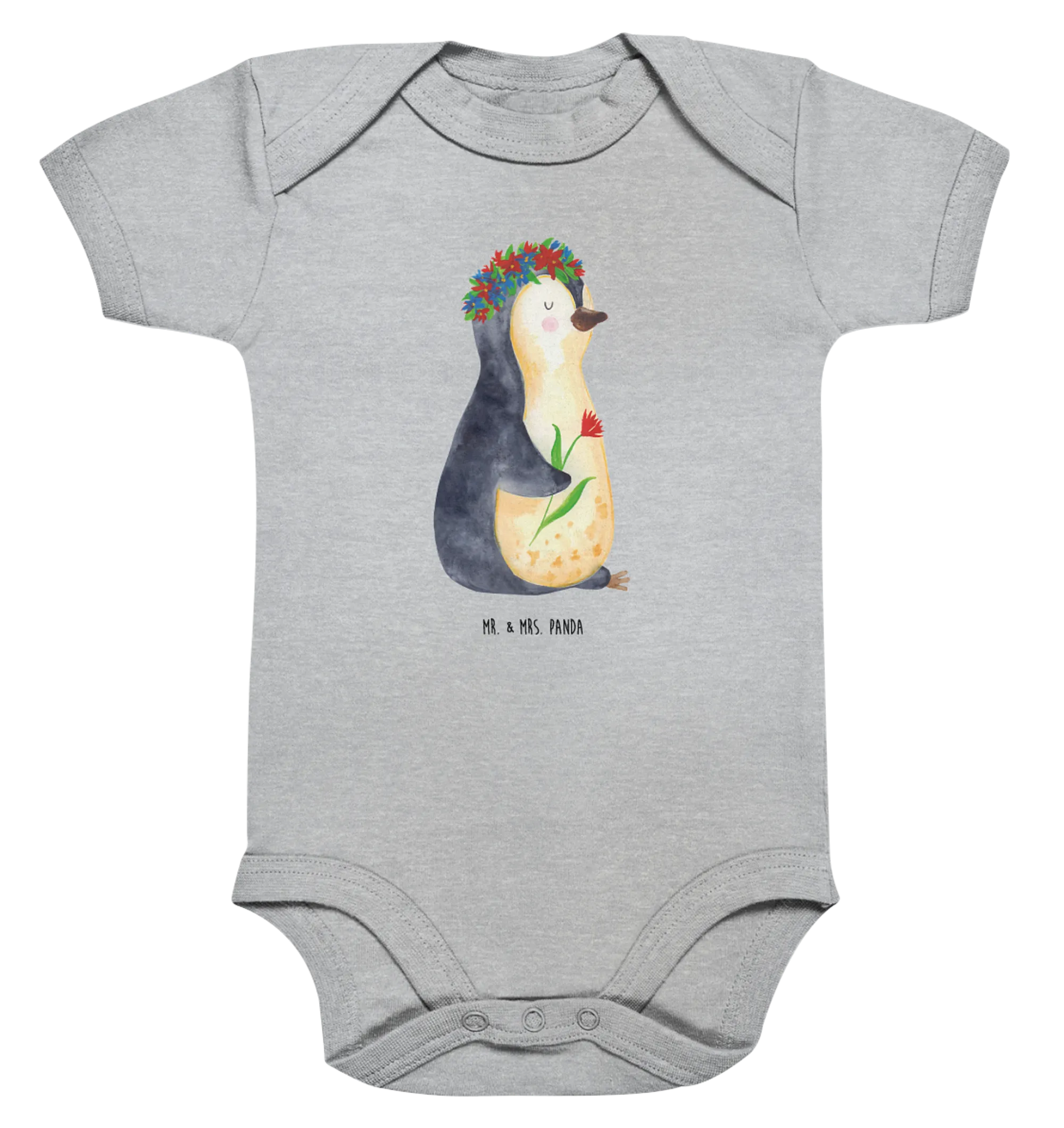 Looking for the perfect gift for the little ones in your life? The Organic Baby Body featuring our enchanting Penguin flowerwreath from the Mr. & Mrs. Panda Penguin - Collection is just what you need! This adorable baby body is not just a piece of clothing; it's a charming way to sprinkle joy and love into every baby's wardrobe.