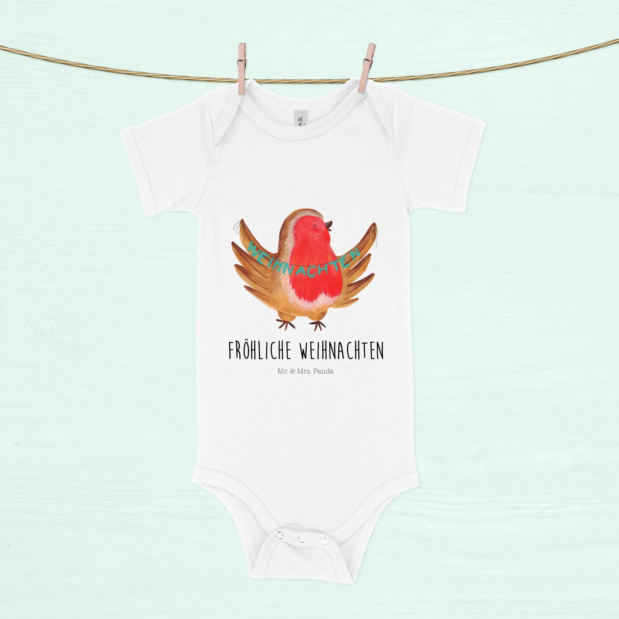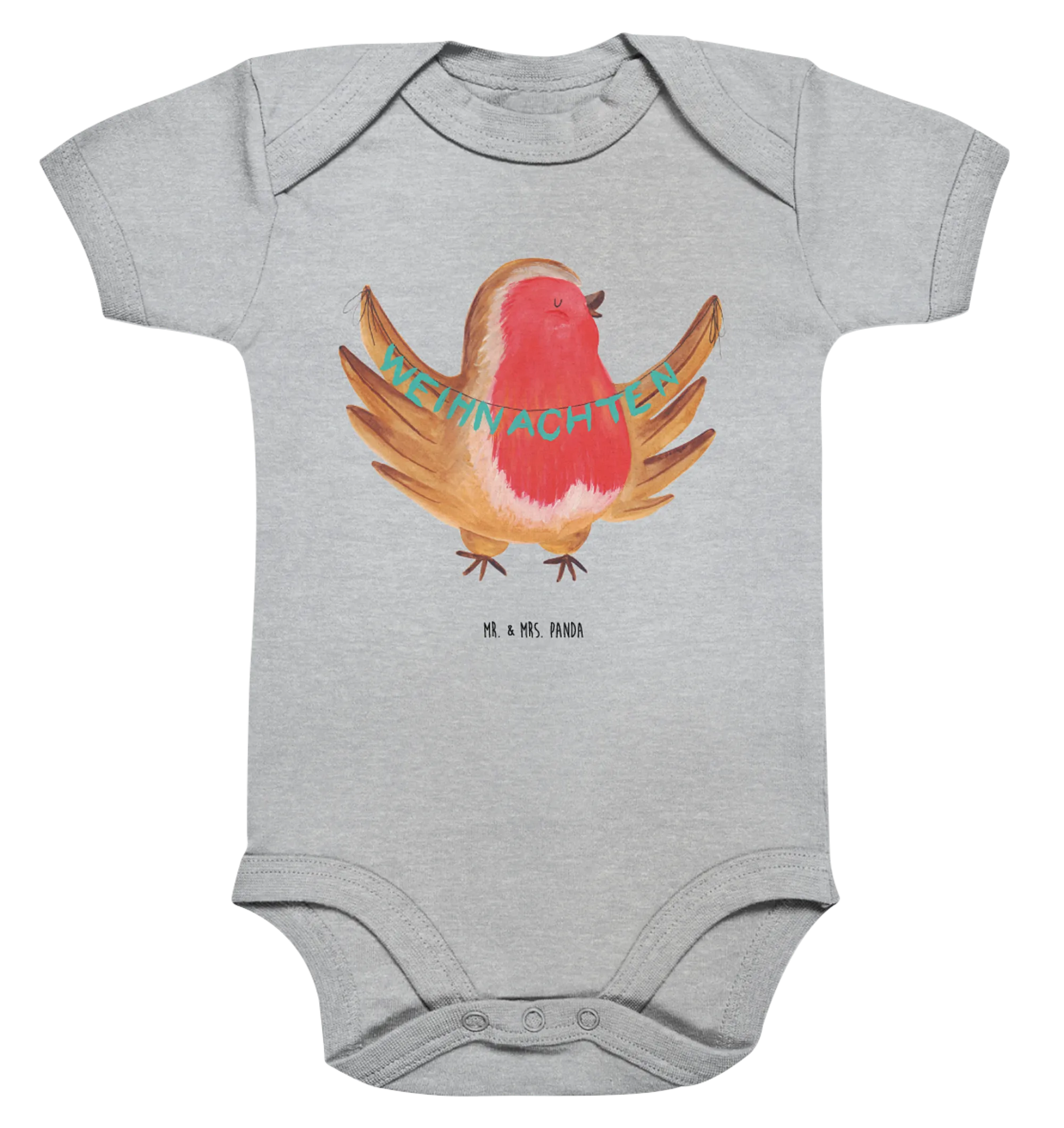 Introducing the Organic Baby Body with the delightful Robin Christmas motif from the enchanting Winter Collection of Mr. & Mrs. Panda! This adorable baby bodysuit is not just a piece of clothing; it's a warm embrace of love and joy, perfect for the magical winter season.