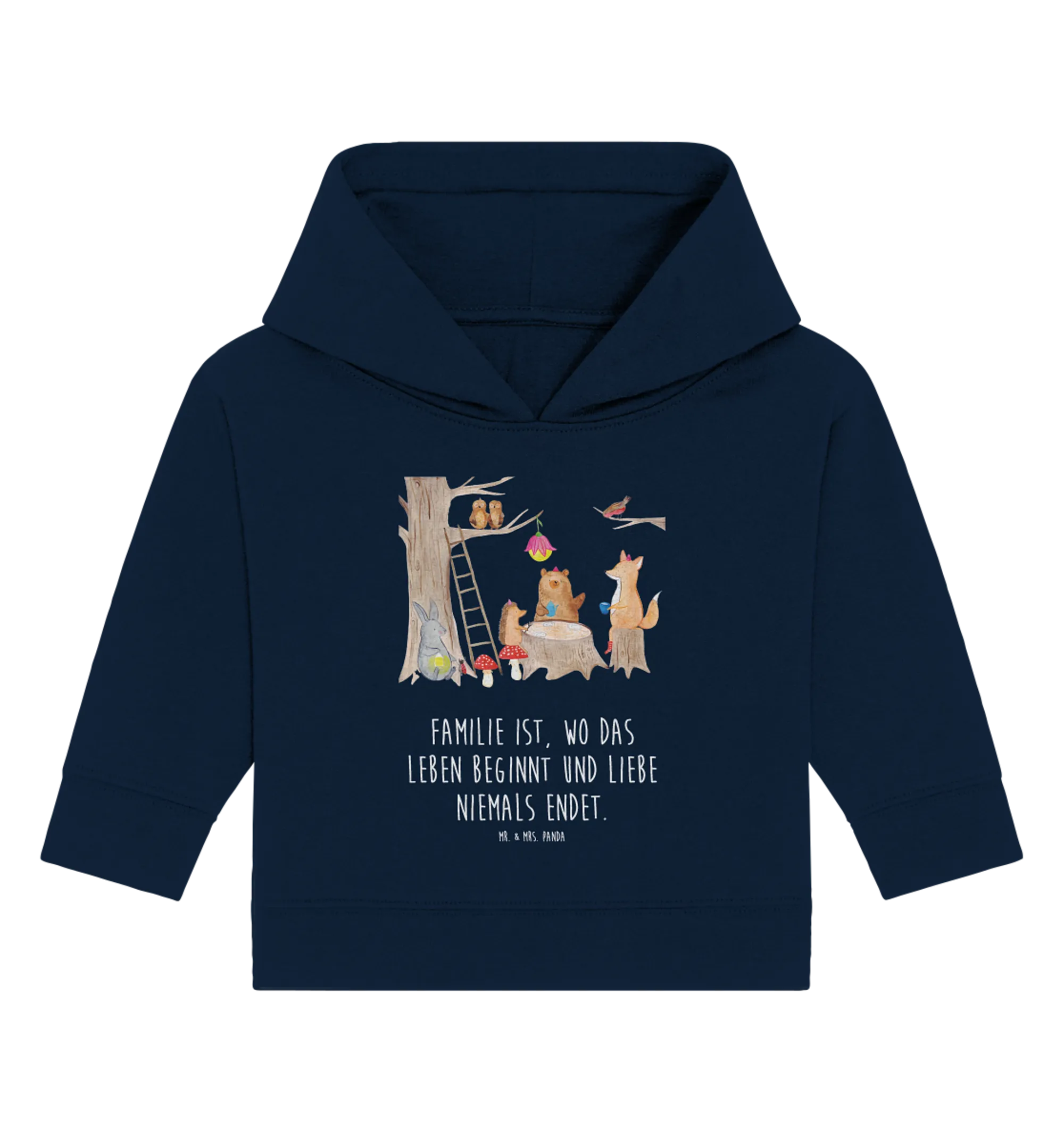 Organic Baby Hoodie forest animals picnic - 12. - 18. Monat - with saying - French Navy