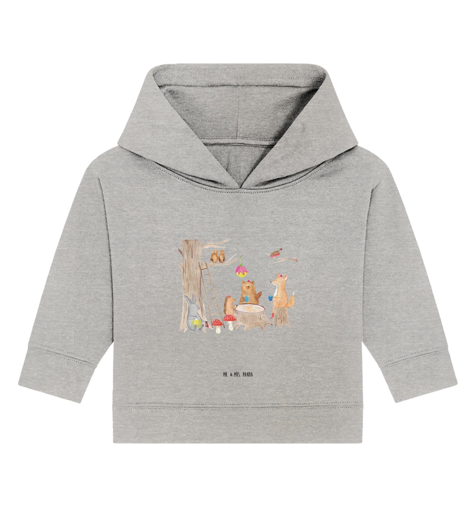 Introducing the charming Organic Baby Hoodie featuring our delightful "Forest Animals Picnic" motif from the beloved Small World collection by Mr. & Mrs. Panda! This hoodie is not just a piece of clothing; it’s a cozy embrace for your little one, designed to inspire joy and imagination. Imagine your baby wrapped in this eco-friendly, organic cotton hoodie, adorned with hand-drawn illustrations of cute forest friends like playful foxes, curious hares, and cheerful squirrels, all coming together for a magical picnic in the woods. The design instantly creates a happy mood, making every wear feel like an adventure in a whimsical little world!