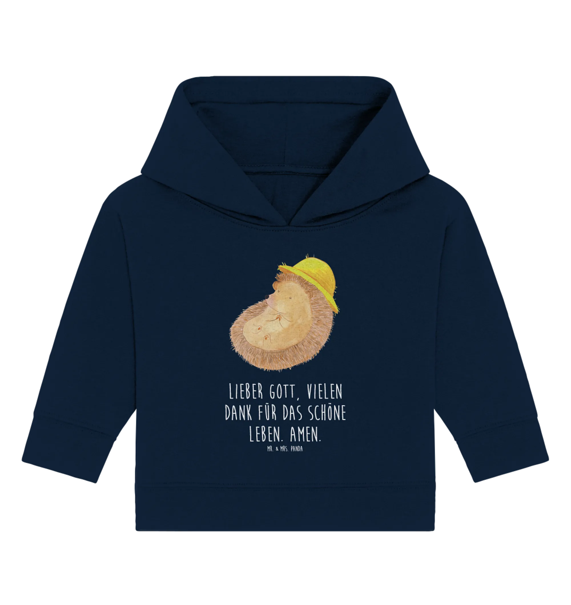 Organic Baby Hoodie Hedgehog Pray - 12. - 18. Monat - with saying - French Navy