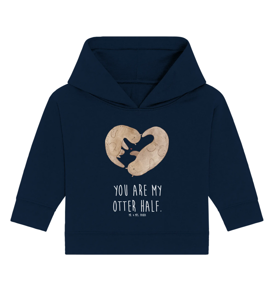Organic Baby Hoodie otter Heart - 12. - 18. Monat - with saying - French Navy