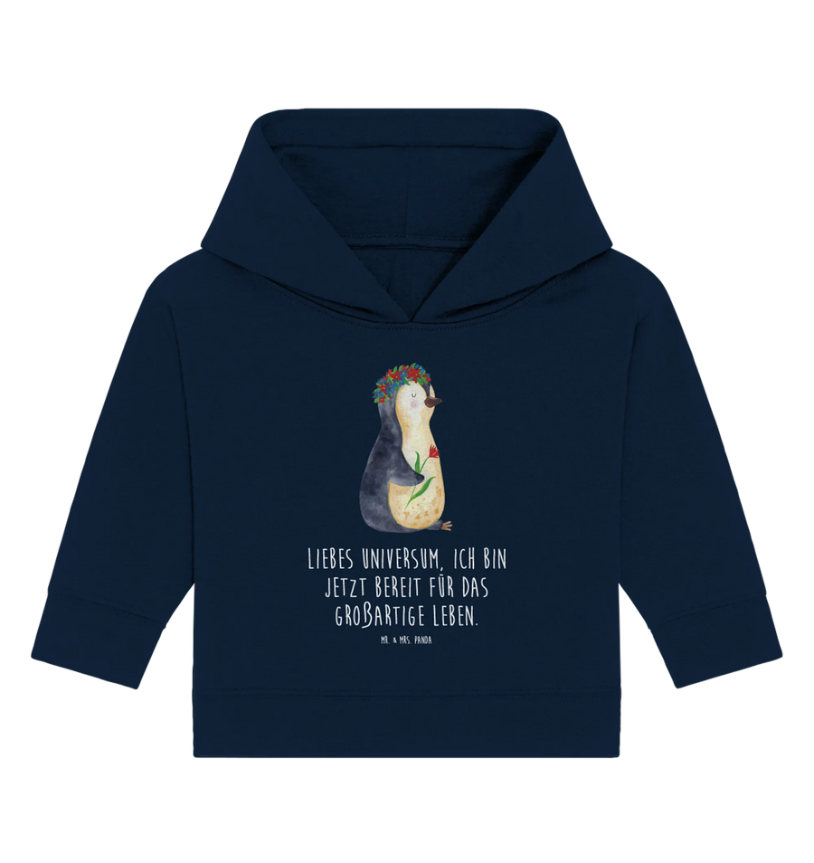 Organic Baby Hoodie Penguin Flower - 12. - 18. Monat - with saying - French Navy
