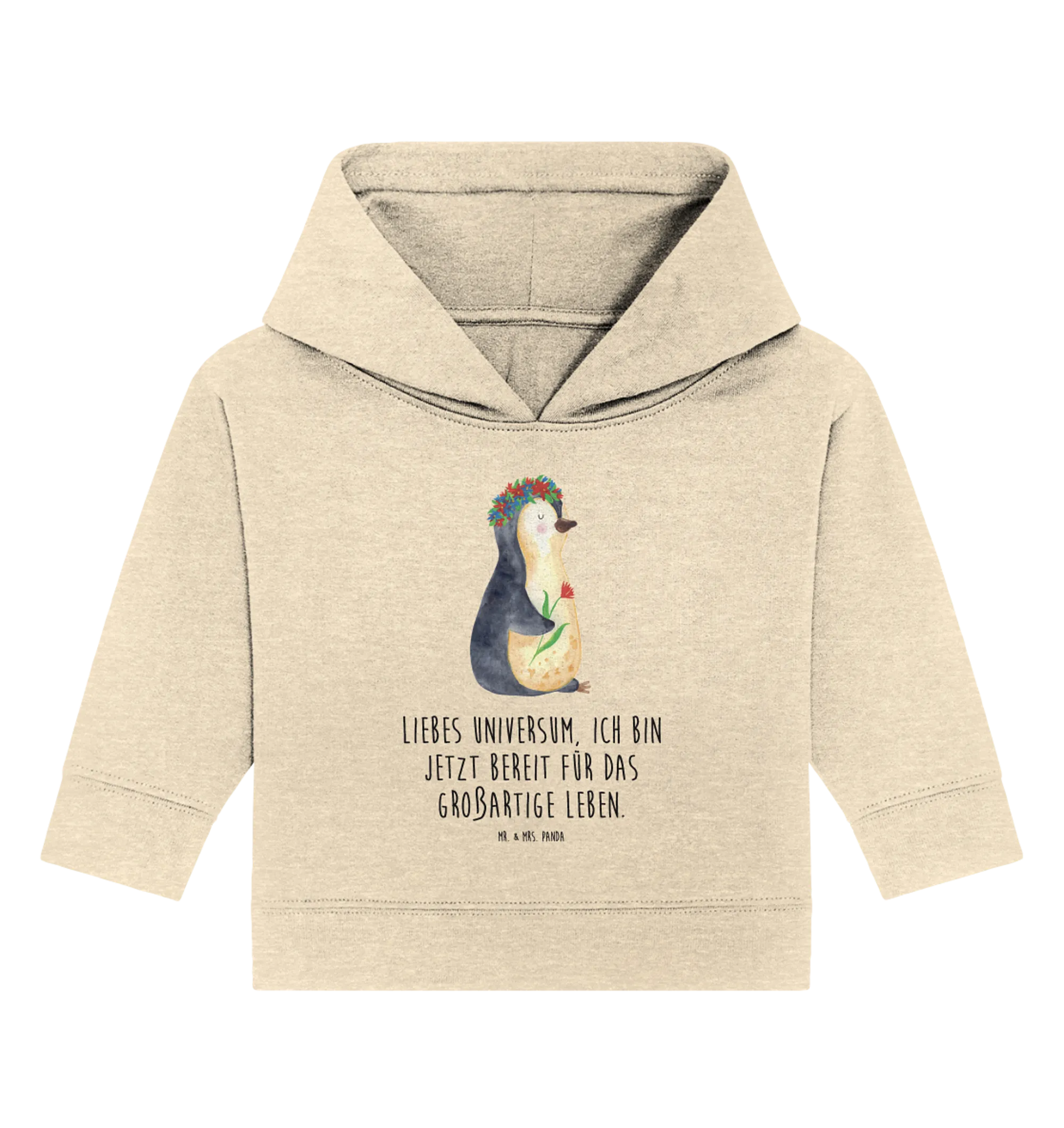 If you're searching for the perfect gift that combines cuteness, comfort, and a touch of motivation for your little one, look no further than our Organic Baby Hoodie featuring the delightful Penguin flowerwreath! This adorable hoodie is not just a piece of clothing—it's a memento that embodies the joys of childhood and the hopes for a bright future. Hand-drawn with love by the talented Mrs. & Mrs. Panda, this charming motif captures an enchanting penguin wearing a lovely flower crown and holding a colorful flower in its flipper. Images of the North Pole and winter come alive, bringing a sense of whimsy to this fashionable piece.