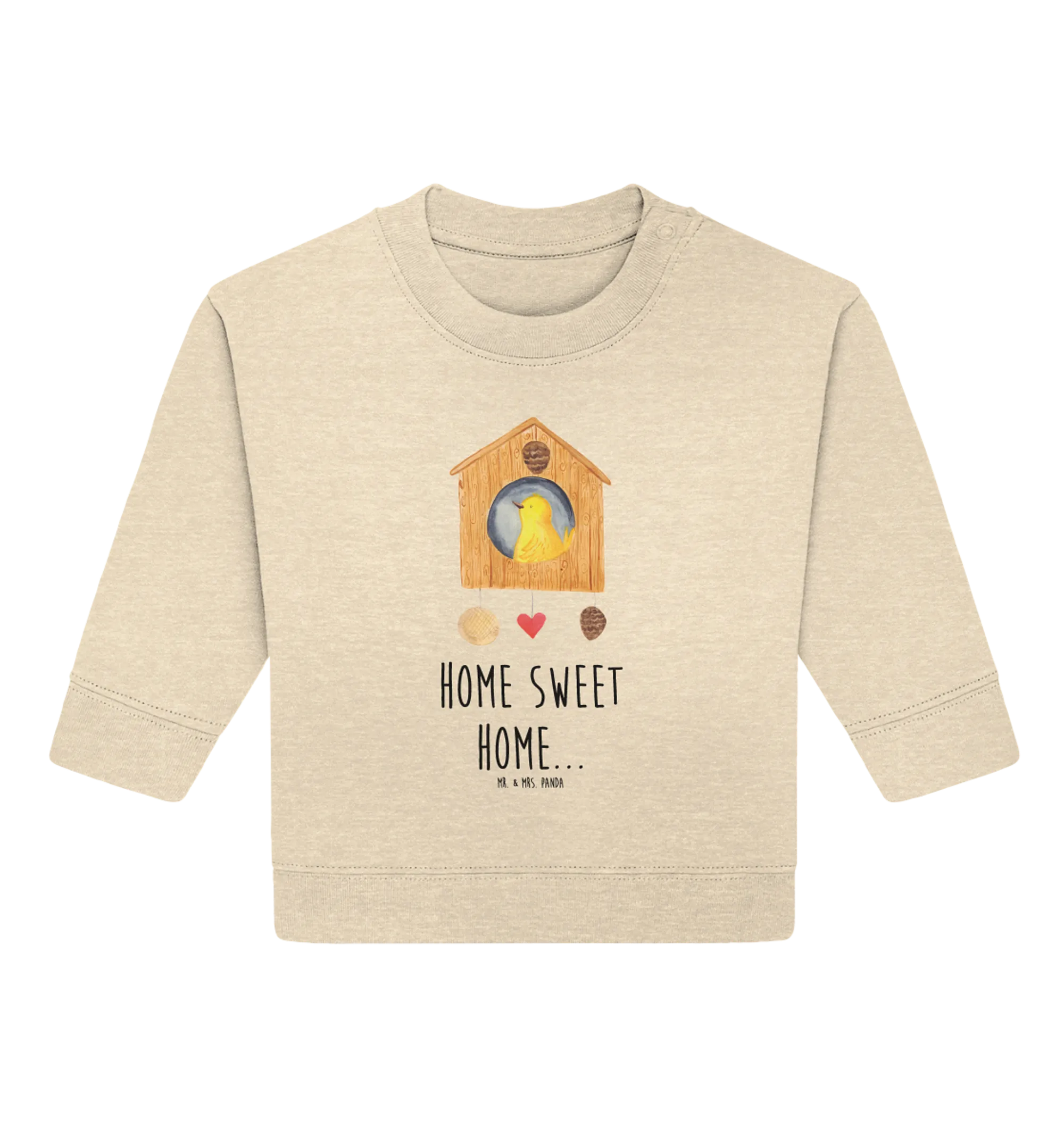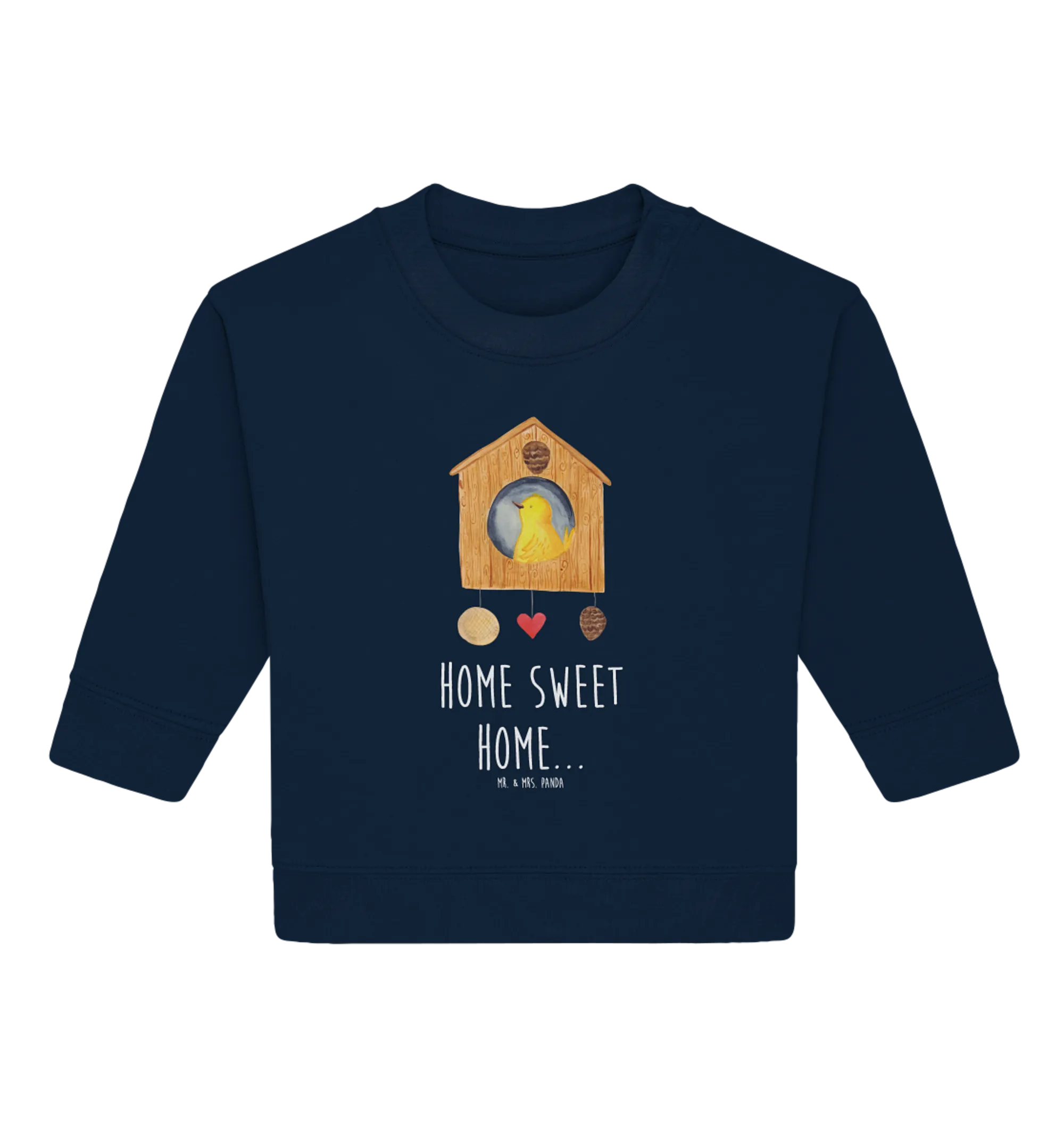 Das Motiv zeigt einen gelben Vogel, der zufrieden in seinem kleinen Vogelhaus sitzt. Es strahlt Wärme und Geborgenheit aus und erinnert daran, wie wichtig ein behagliches Zuhause ist – ein absolutes Must-have für die Kleinsten! Die Kombination aus dem Spruch "Home sweet home..." und dem süßen Vogelmotiv macht diesen Pullover zu einem ganz besonderen Kleidungsstück.