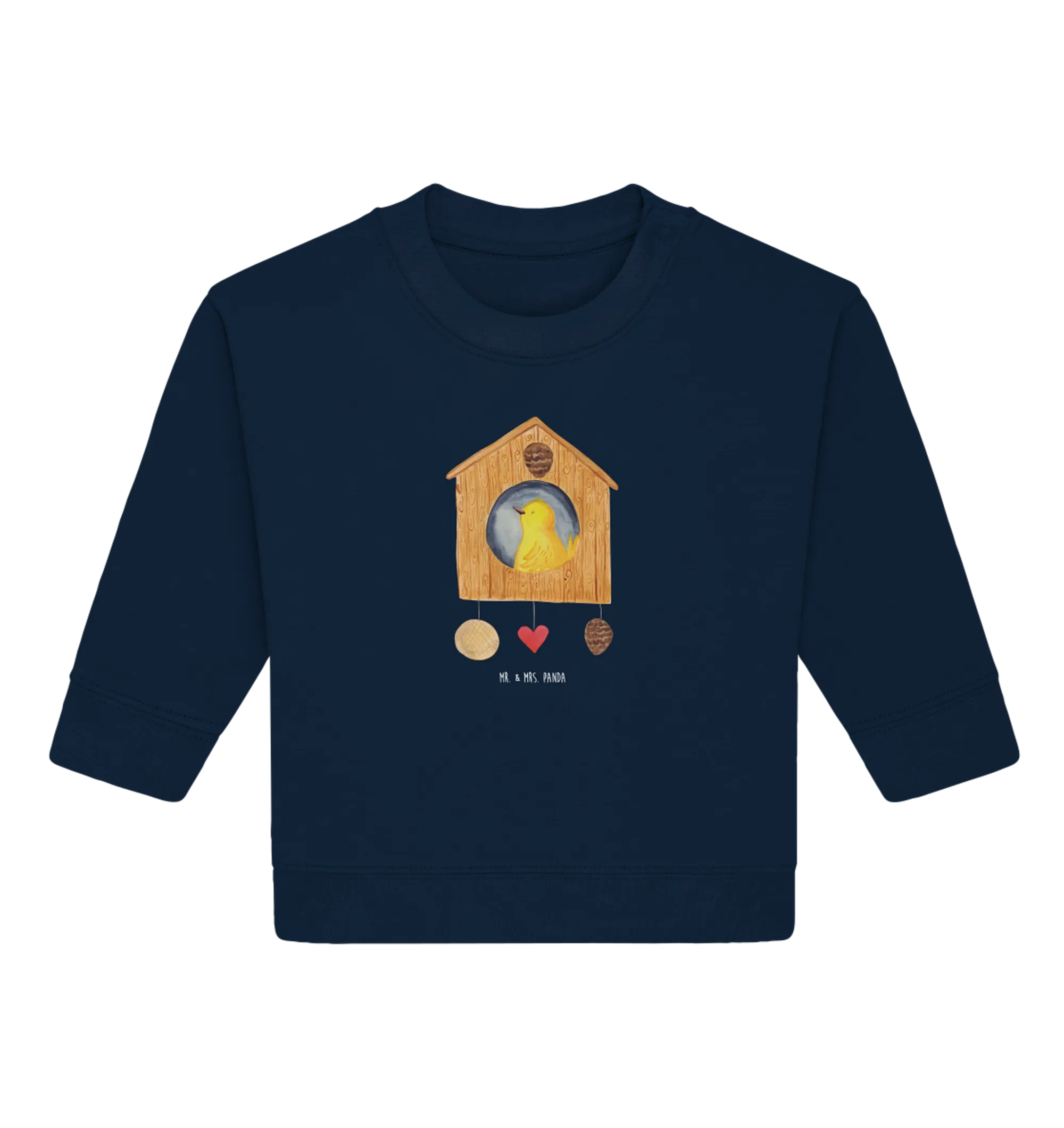 Entdecke das perfekte Geschenk für die Kleinsten! Der Organic Baby Pullover mit dem süßen Motiv "Vogelhaus sweet Home" aus der beliebten Small World Kollektion von Mr. & Mrs. Panda ist mehr als nur ein Kleidungsstück – er bringt Freude, gemalte Liebe und eine warme Botschaft direkt ins Herz Deines Zuhauses. Der bezaubernde gelbe Vogel, der glücklich in seinem kleinen Vogelhaus sitzt, strahlt pure Zufriedenheit aus und zaubert sicherlich jedem ein Lächeln ins Gesicht.