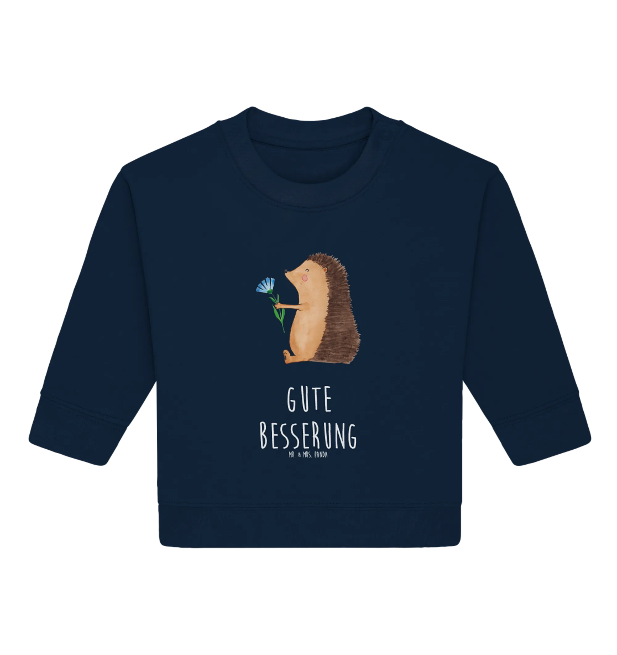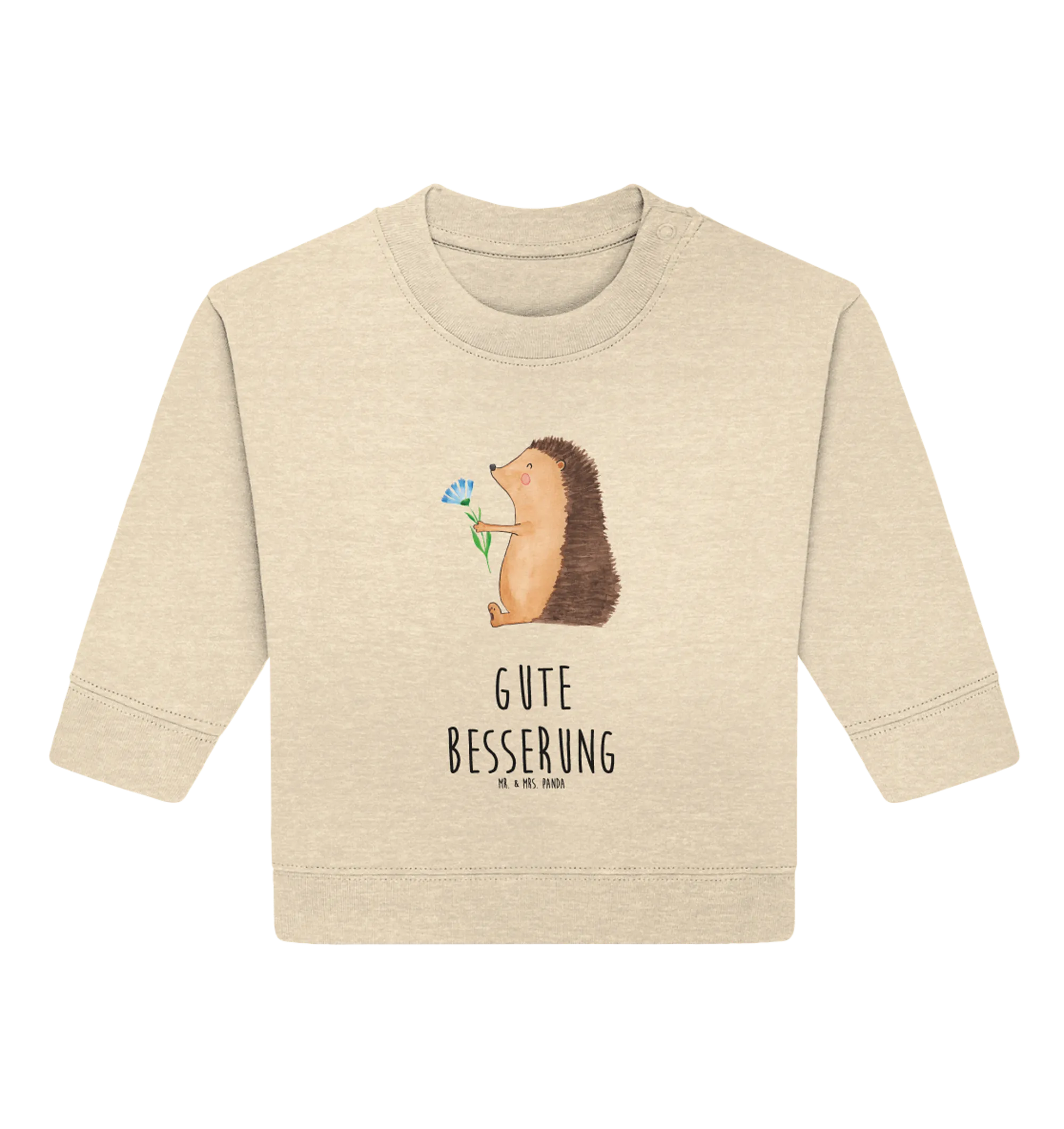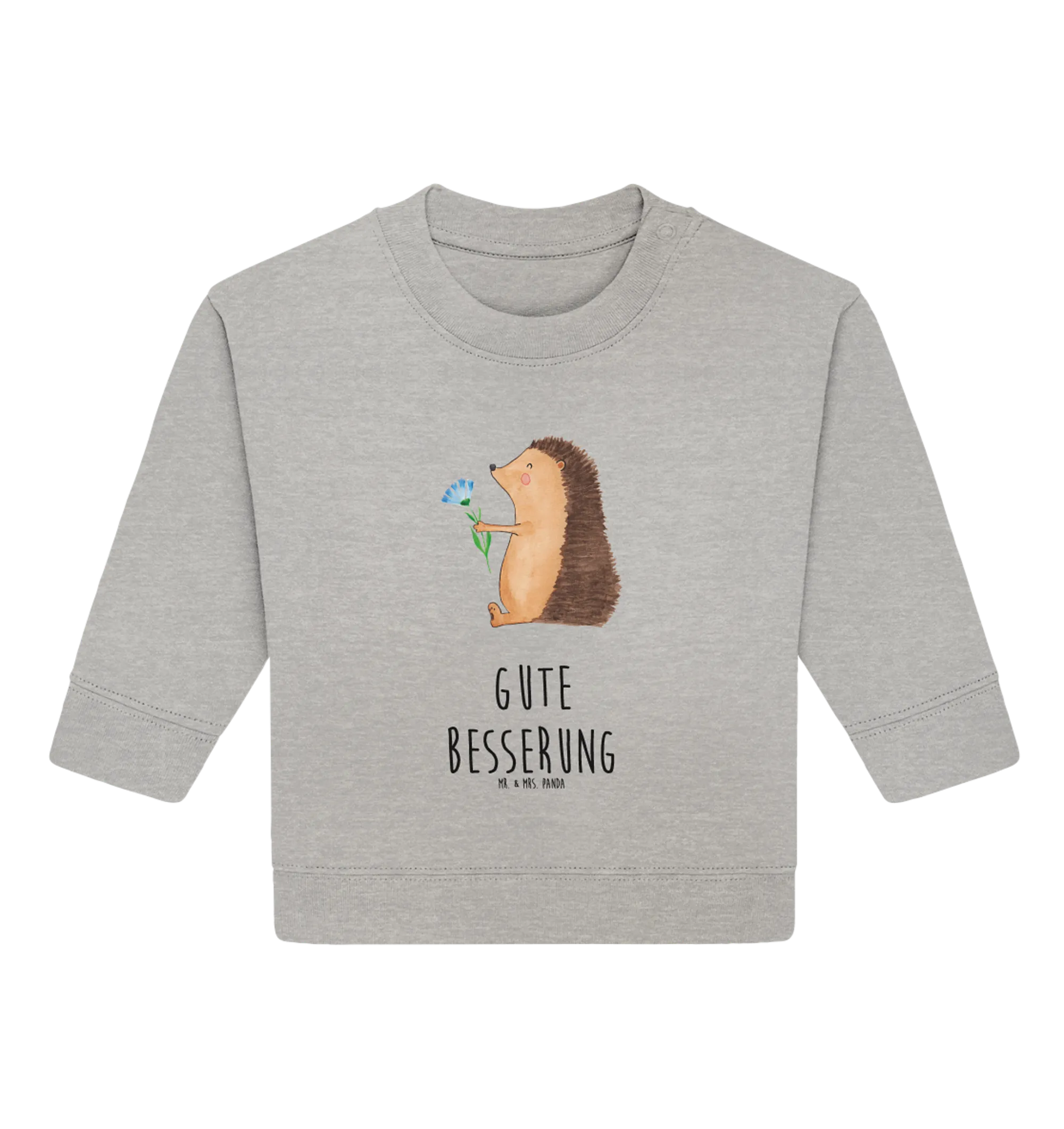 Der Organic Baby Pullover "Igel mit Blume" aus der charmanten Small World Kollektion von Mr. & Mrs. Panda ist nicht nur ein tolles Kleidungsstück für die Kleinsten, sondern auch ein liebevolles Geschenk für einen ganz besonderen Anlass! Mit dem süßen Igel, der eine bunte Blume in der Hand hält, zaubert dieser Pullover jedem Baby ein Lächeln ins Gesicht und bringt gute Laune, besonders in schwierigen Zeiten. Wenn dein kleiner Liebling krank ist, kann dieser Pullover mit dem Spruch "Gute Besserung" eine wundervolle Genesungsbotschaft sein und Trost spenden.