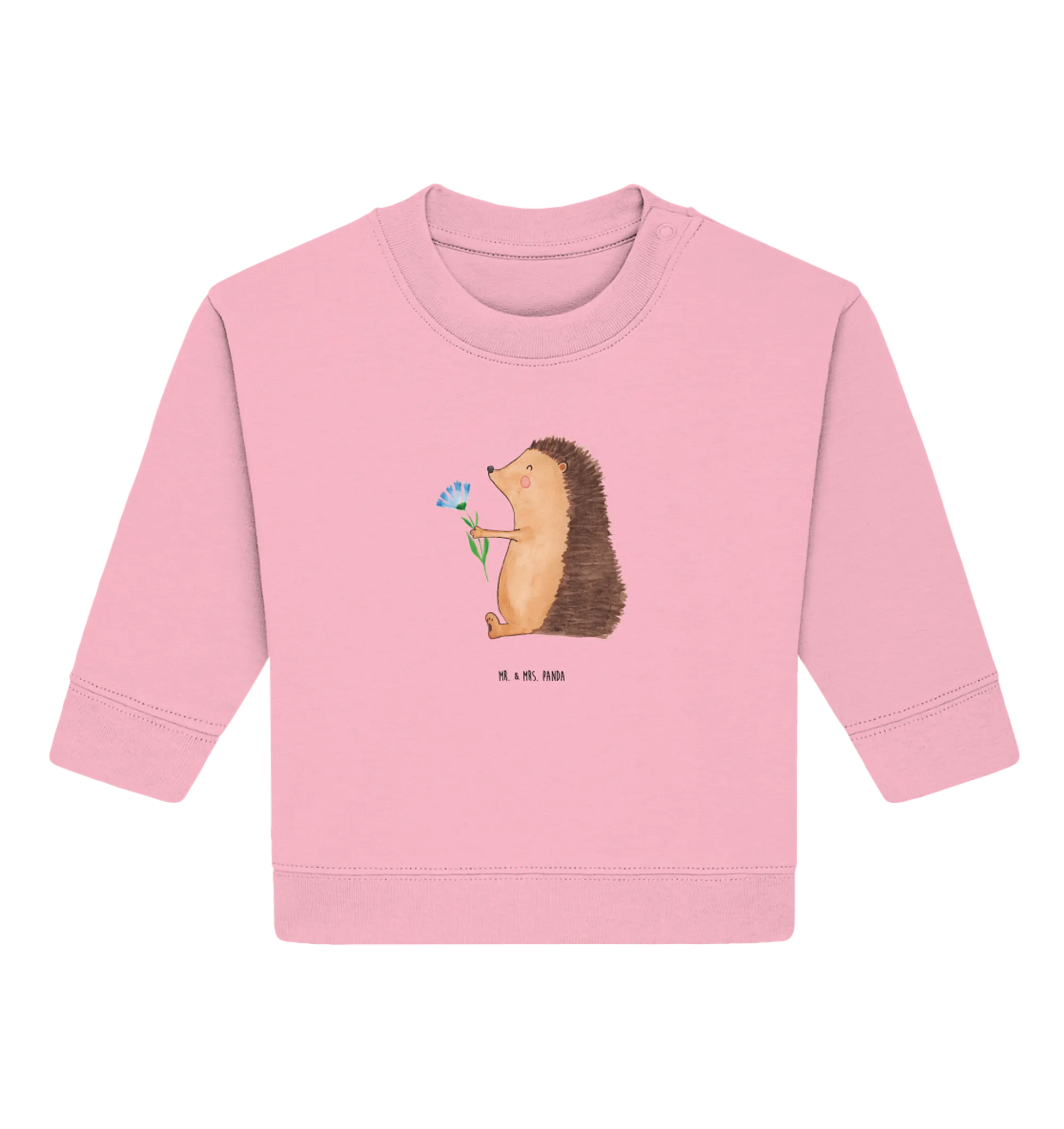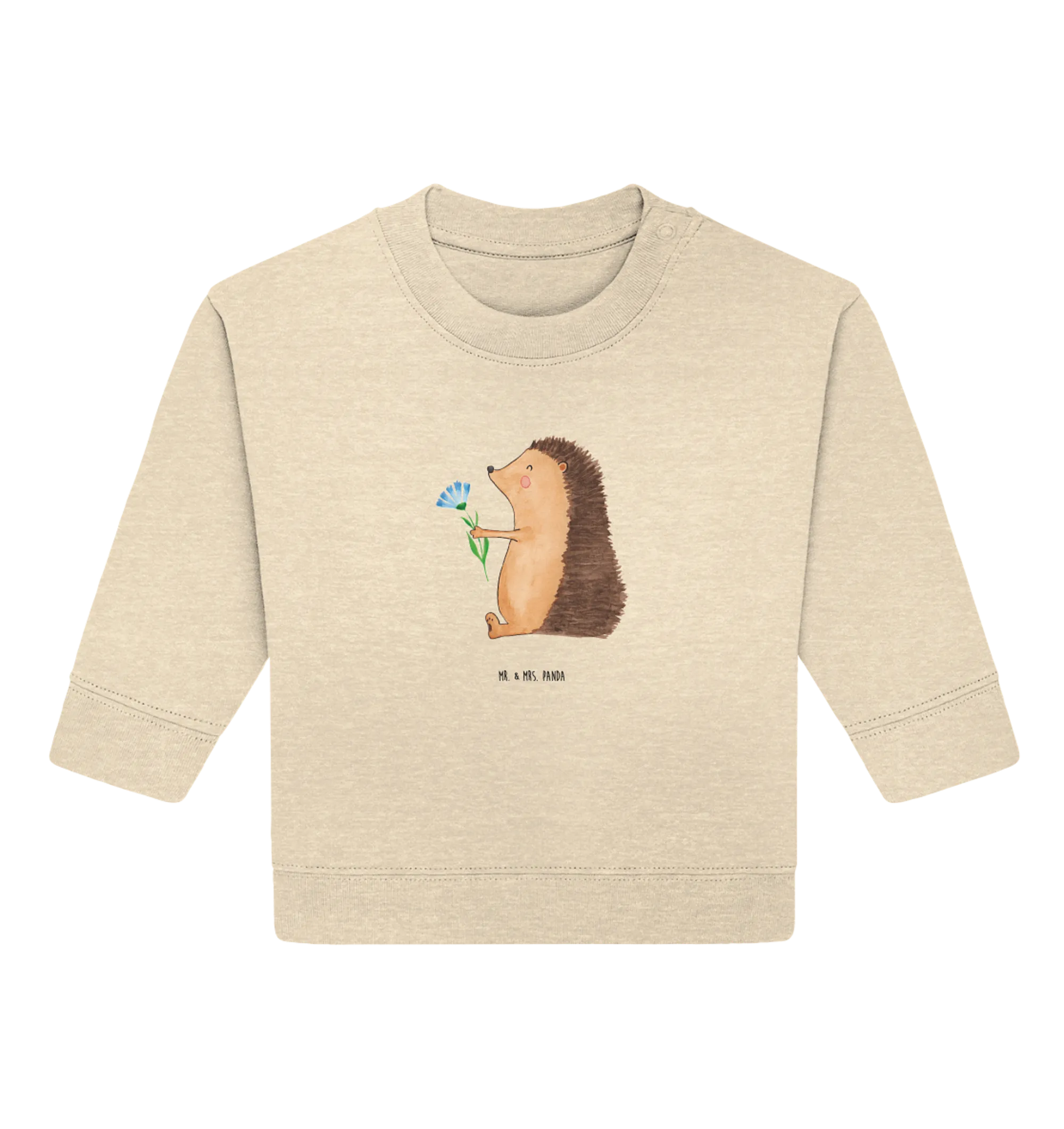 Are you looking for a special gift that brings a smile to a little one’s face? The Organic Baby Pullover featuring our adorable Hedgehog with Flower from the enchanting Small World collection is the perfect solution! Designed by Mr. & Mrs. Panda, this lovely pullover embodies cuteness and comfort, making it a delightful addition to any baby’s wardrobe.