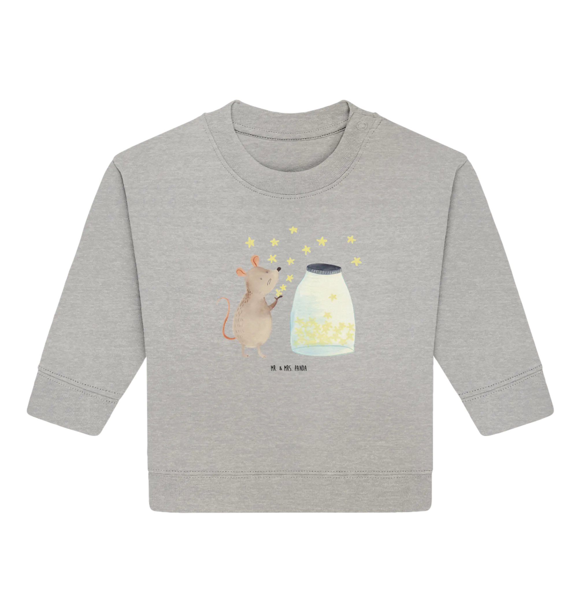 Introducing the Organic Baby Pullover with an adorable mouse and dreamy stars motif from the enchanting Small World collection by Mr. & Mrs. Panda!