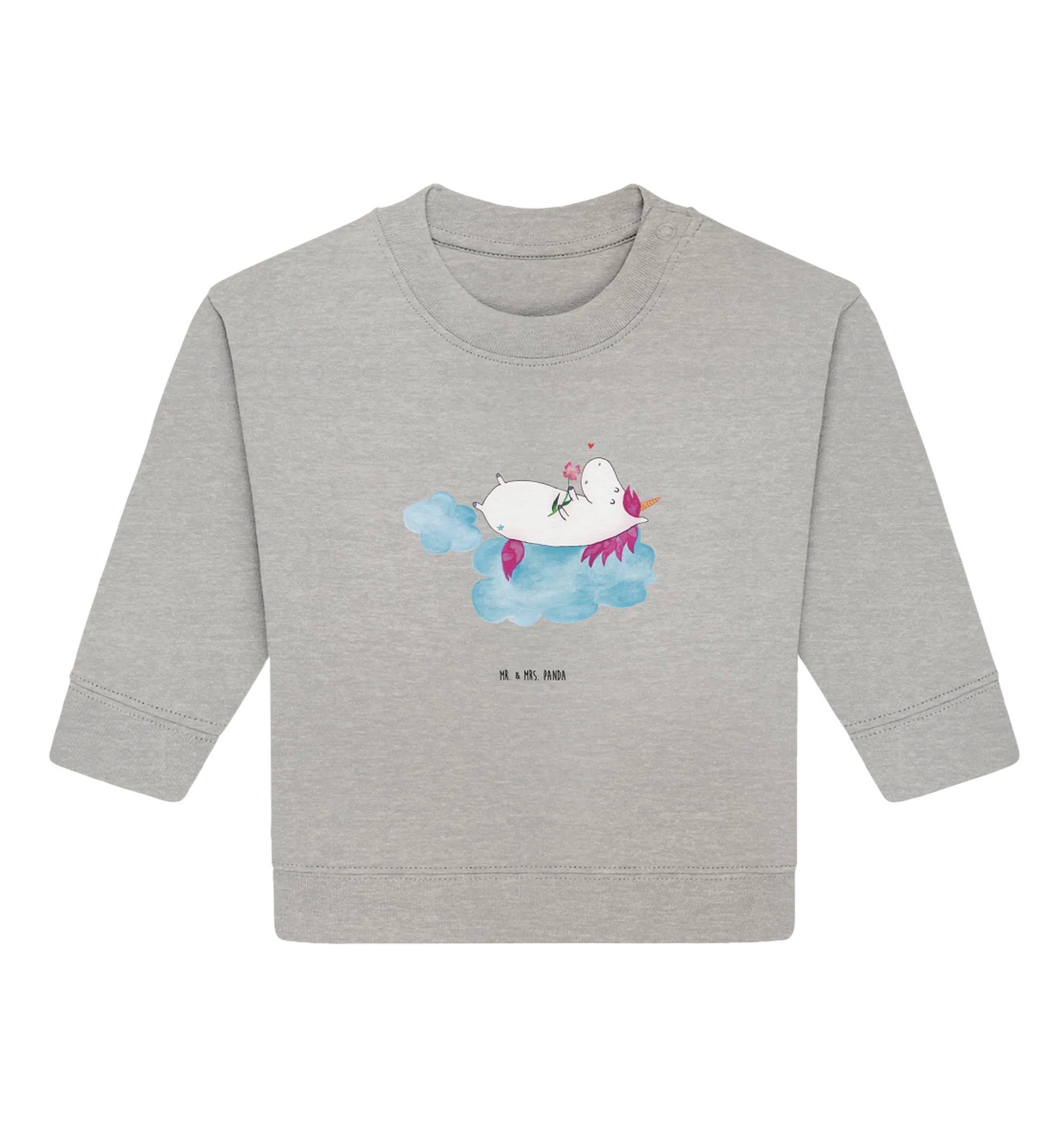 Introducing the Organic Baby Pullover Unicorn Lovecloud from the whimsical Unicorn - Collection by Mr. & Mrs. Panda! This adorable pullover is not just a piece of clothing but a delightful experience for your little one. Imagine your baby snuggled in soft, organic cotton, adorned with a charming motif of a unicorn sitting blissfully on a cloud, radiating love and happiness. Each pullover is crafted with care, featuring breathable fabric that ensures comfort for your tiny human while they explore the world around them.