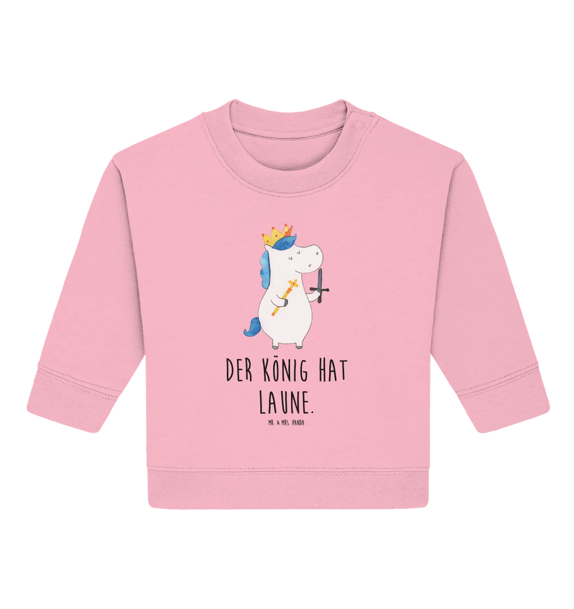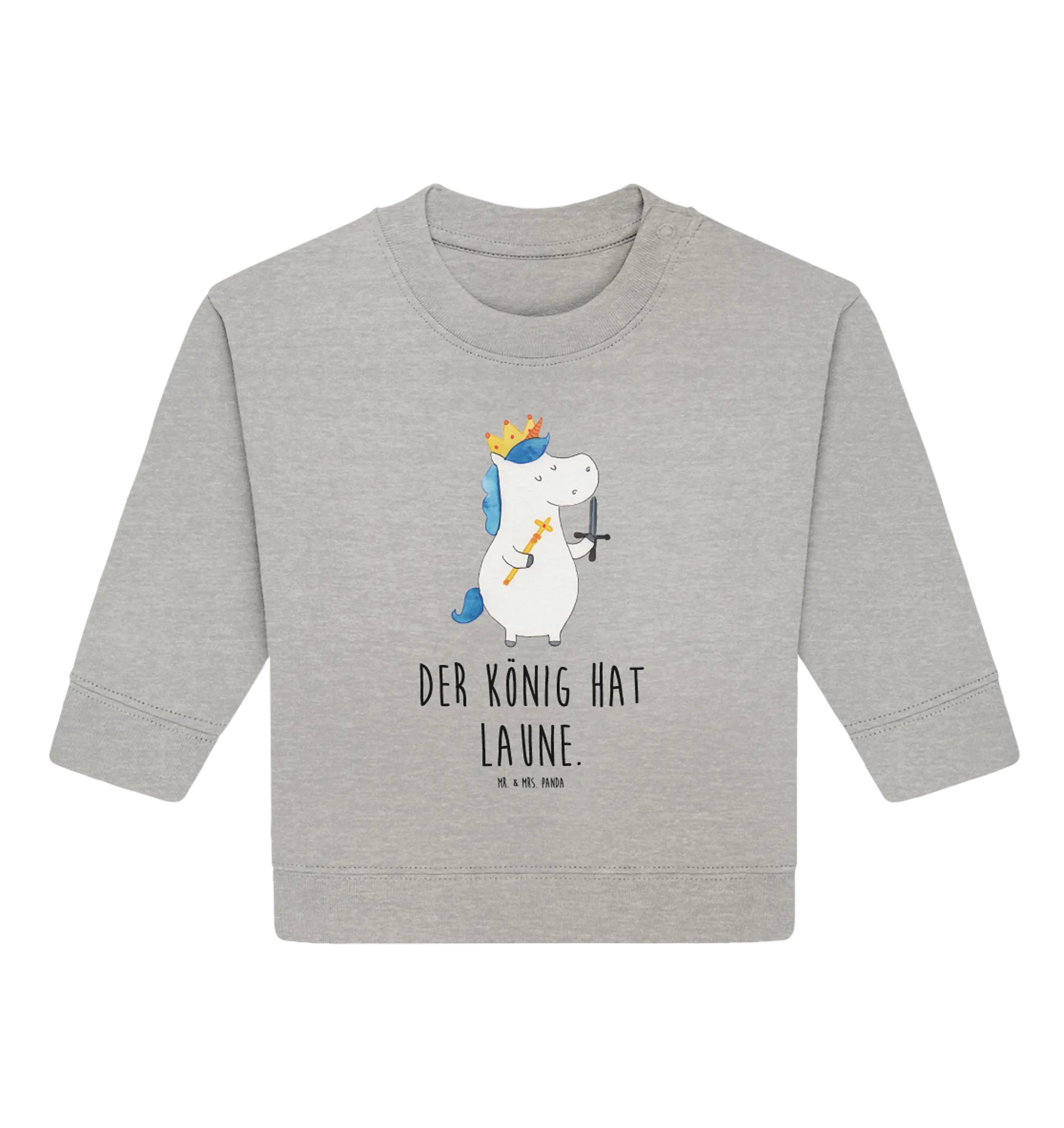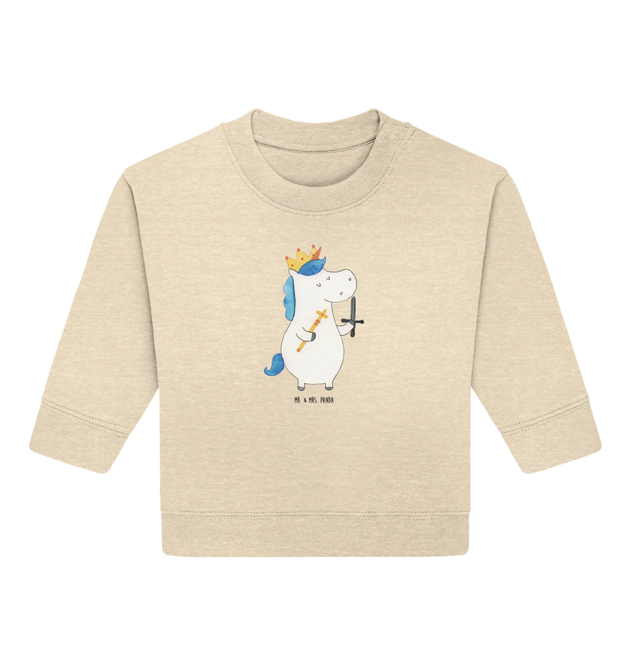 Introducing the adorable Organic Baby Pullover featuring the magical Unicorn King with sword from our exclusive Unicorn - Collection! This charming piece is crafted with love by Mr. & Mrs. Panda, where every motif is a hand-drawn masterpiece, bringing a sprinkle of enchantment to your little one's wardrobe. Imagine a sweet unicorn, adorned with a shiny crown and wielding a valiant sword, captivating the hearts of both children and parents alike!