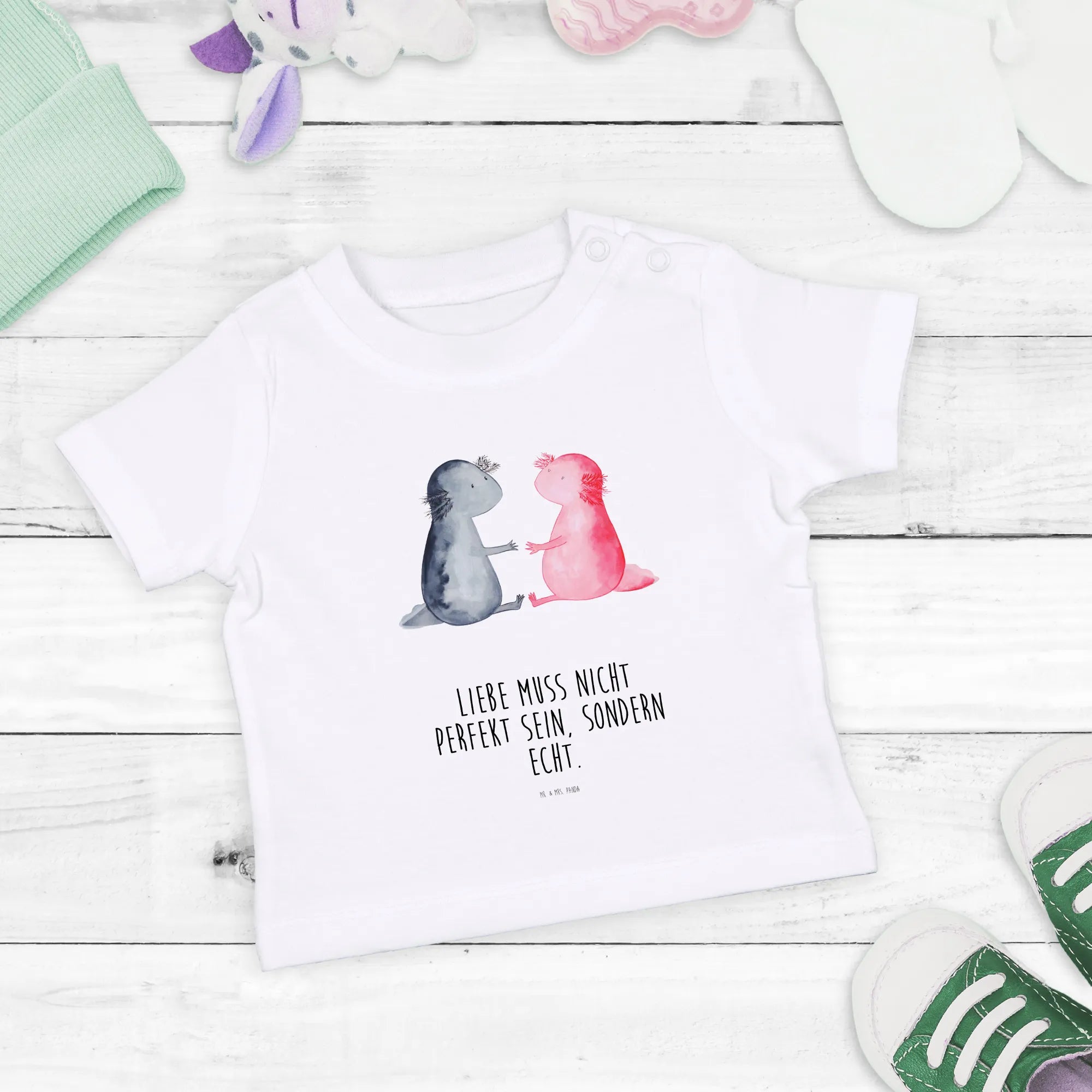 Are you searching for the cutest gift for the little one in your life? Then look no further than our adorable Organic Baby Shirt featuring an enchanting Axolotl in love! This delightful Tee showcases two hand-drawn Axolotls, sweetly holding hands, a representation of friendship and love that is simply unique! Designed with love by Mrs. Panda in her signature "panda style", this shirt is not just a piece of clothing—it's a celebration of love!