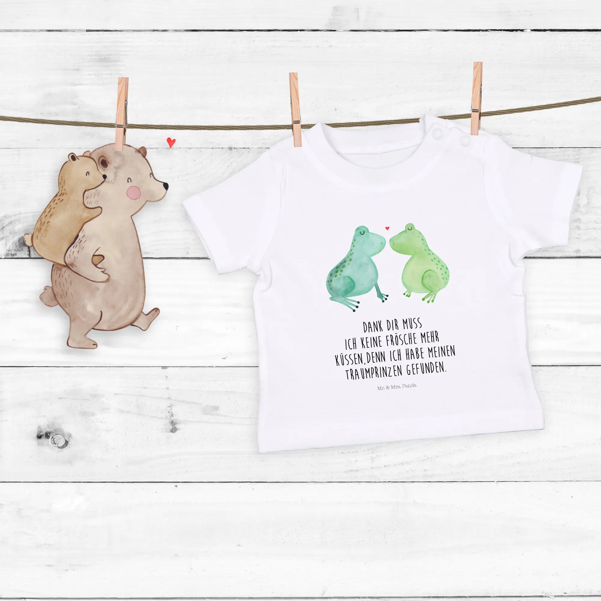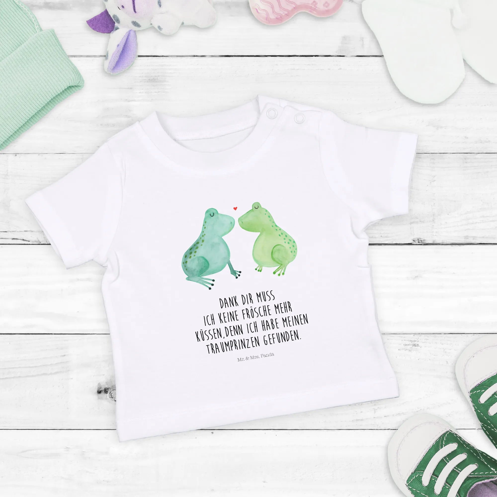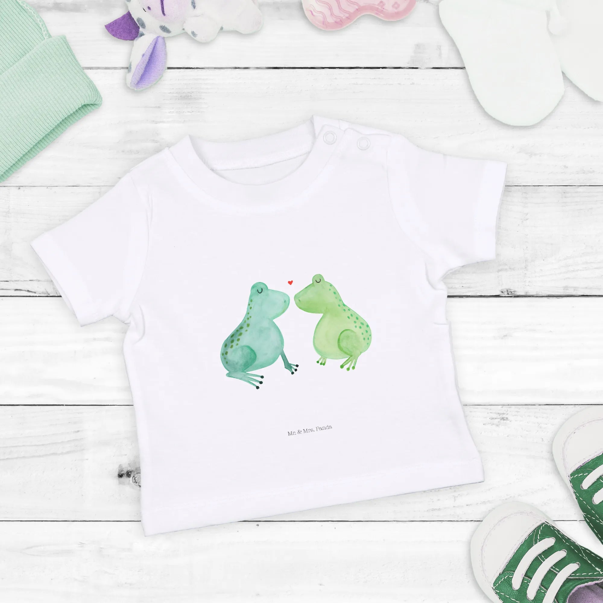 Introducing the Organic Baby Shirt "Frogs in Love" from the Love collection by Mr. & Mrs. Panda! This delightful shirt is the perfect gift for your little ones, capturing the essence of love and affection while ensuring comfort and style. Designed for babies aged 6 to 12 months, this charming shirt is made from 100% organic cotton, making it soft on the skin and safe for your baby.
