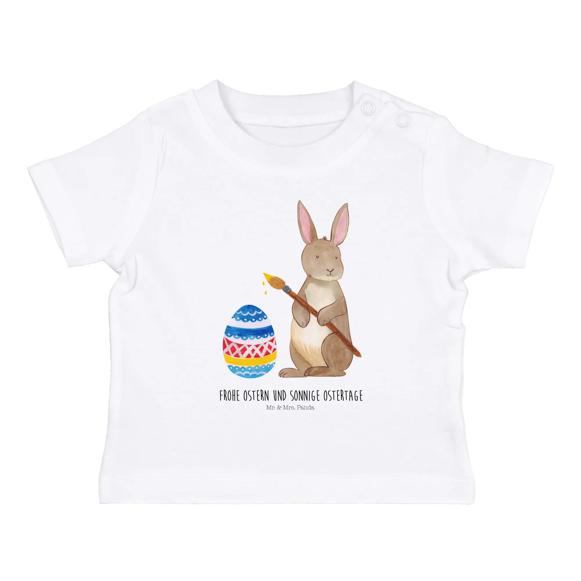 Organic Baby Shirt Hare painting eggs - 6. - 12. Monat - with saying