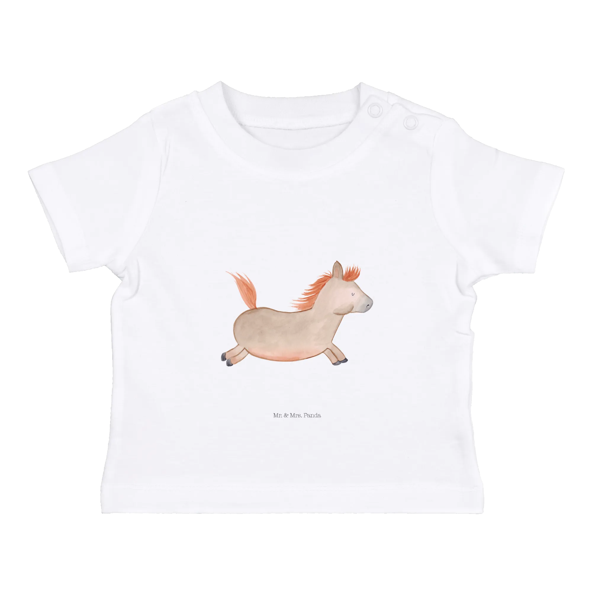 Crafted from 100% organic cotton, this baby T-Shirt ensures that your little one enjoys unmatched comfort and softness against their delicate skin. It’s an ideal choice for babies aged 12 to 18 months. The cheerful design showcases a lively horse leaping in joy, embodying the carefree spirit of farm animals and the simple pleasures of country life. Children will love it - who wouldn’t be excited to wear such a fun print?