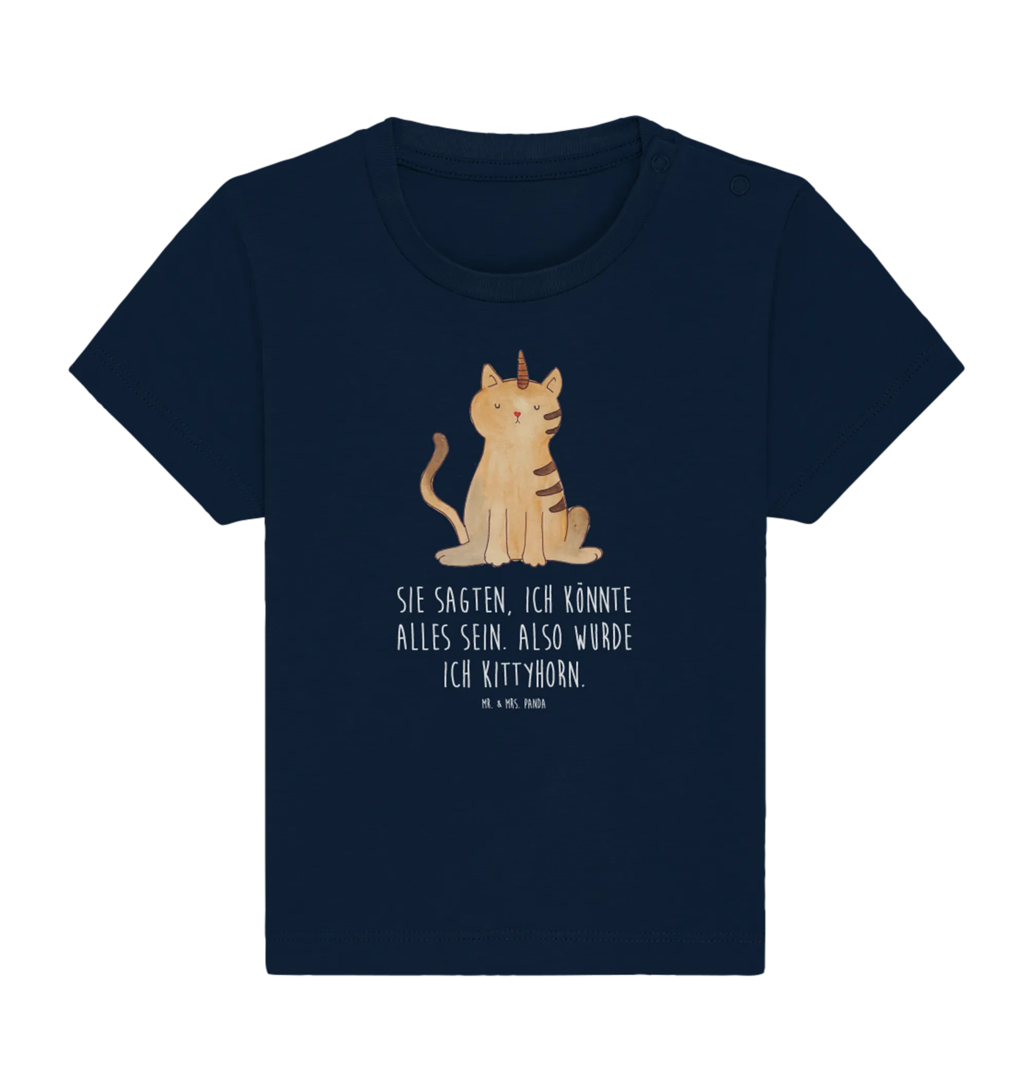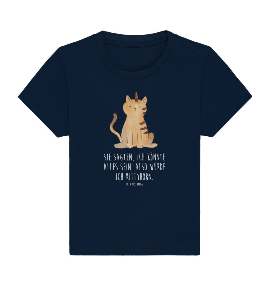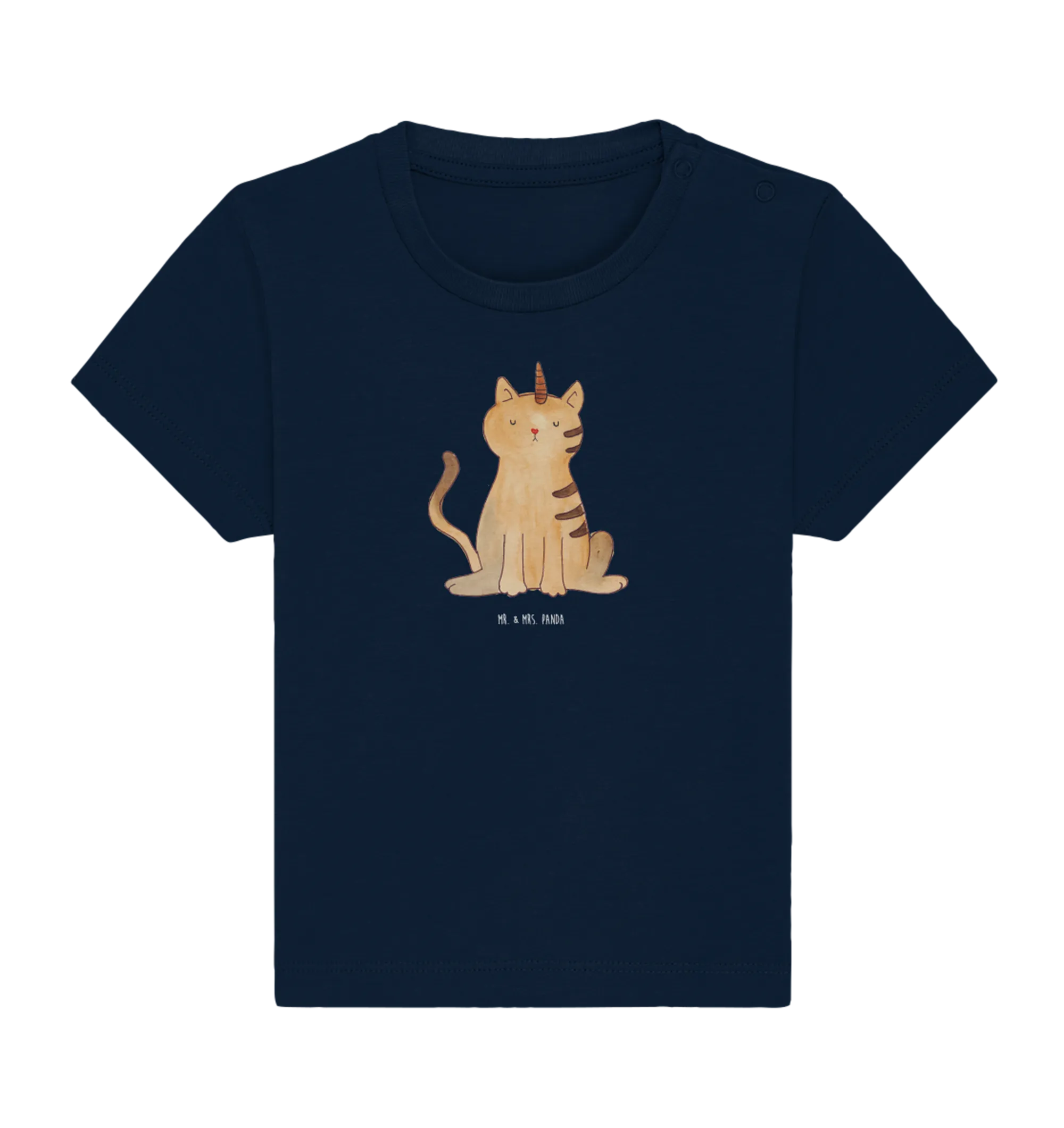 Organic Baby Shirt unicorn Cat - 12. - 18. Monat - with saying - French Navy