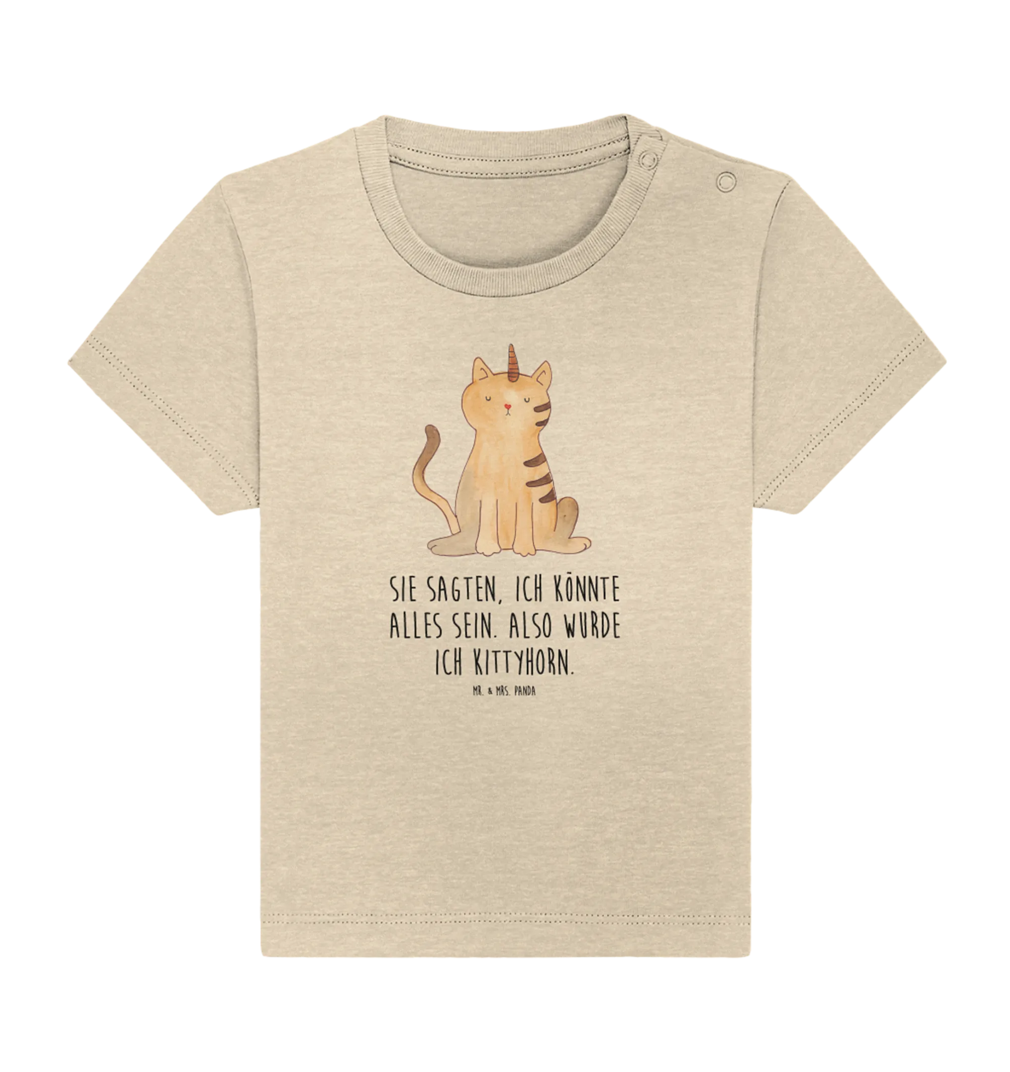 In addition to its adorable design, the Mr. & Mrs. Panda Organic Baby Shirt supports the idea that every child can be anything they imagine—as symbolized by the slogan, "Sie sagten, ich könnte alles sein. Also wurde ich Kittyhorn." It inspires creativity and the belief that anything is possible.