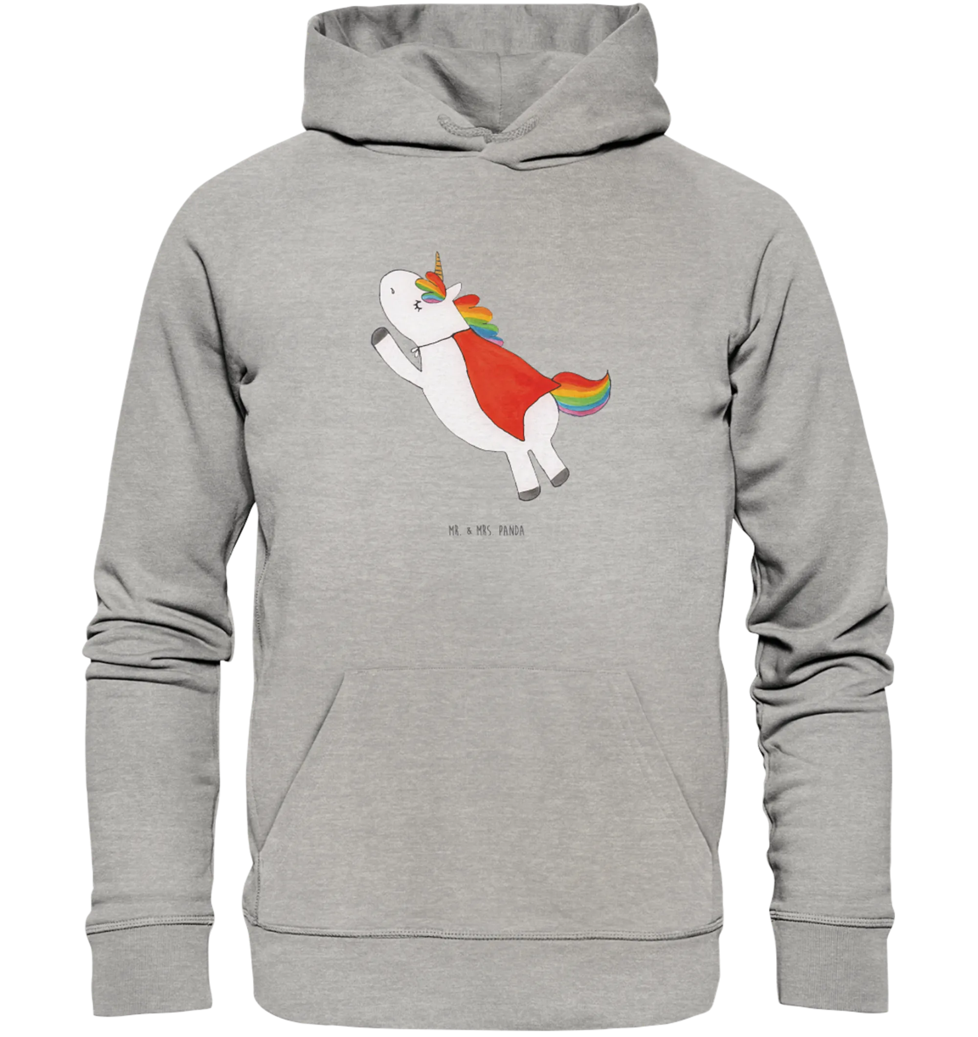 Introducing the enchanting Organic Hoodie Unicorn Superhero from Mr. & Mrs. Panda's beloved Unicorn - Collection! This delightful hoodie is more than just a cozy clothing item; it's a statement piece designed for anyone who believes in the magic of unicorns and the power of superheroes. Made from a sumptuous blend of 85% organic cotton and 15% recycled polyester, this hoodie boasts a luxurious, soft fleece inside that makes it a perfect companion for chilly days or casual outings with friends.