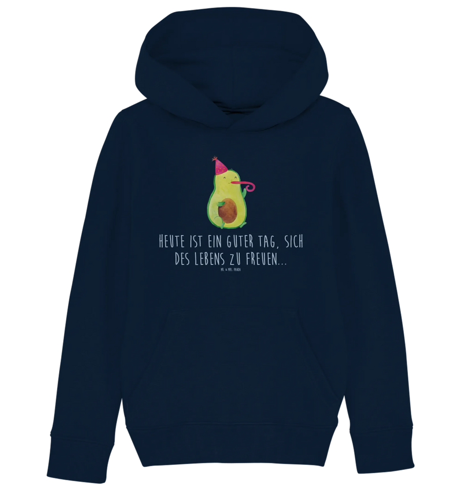 With its vibrant French navy color and lovable avocado design—a sweet little avocado wearing a party hat and blowing a party horn—this hoodie embodies joy, optimism, and fun, making it an ideal garment for birthdays, festive gatherings, or everyday playtime adventures.