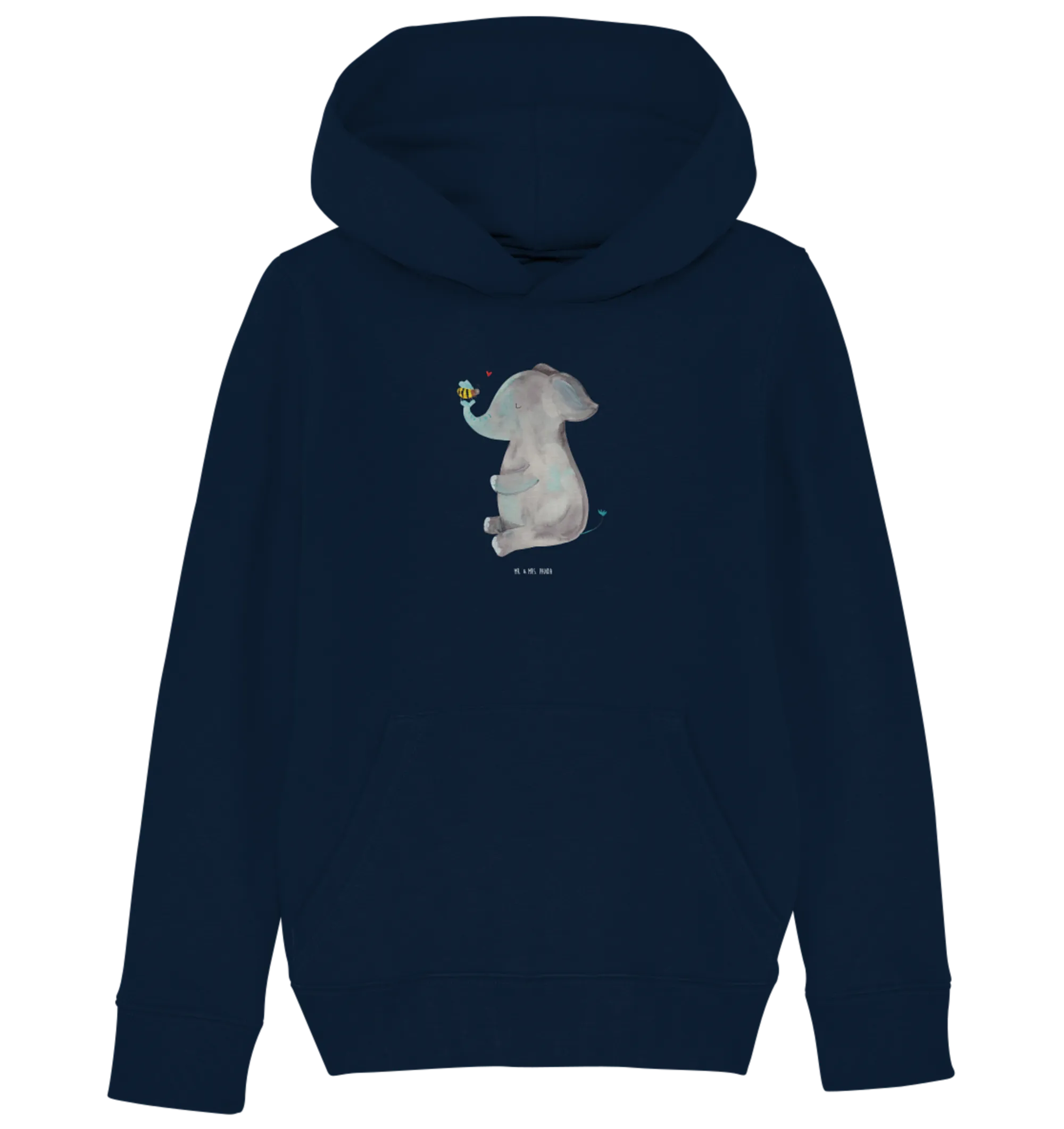 Mr. & Mrs. Panda's Organic Kids Hoodie is not only a special piece of clothing; it’s a reminder of love and friendship. The elephant gently holding a tiny bee on its trunk beautifully illustrates the bond present in nature and our lives.