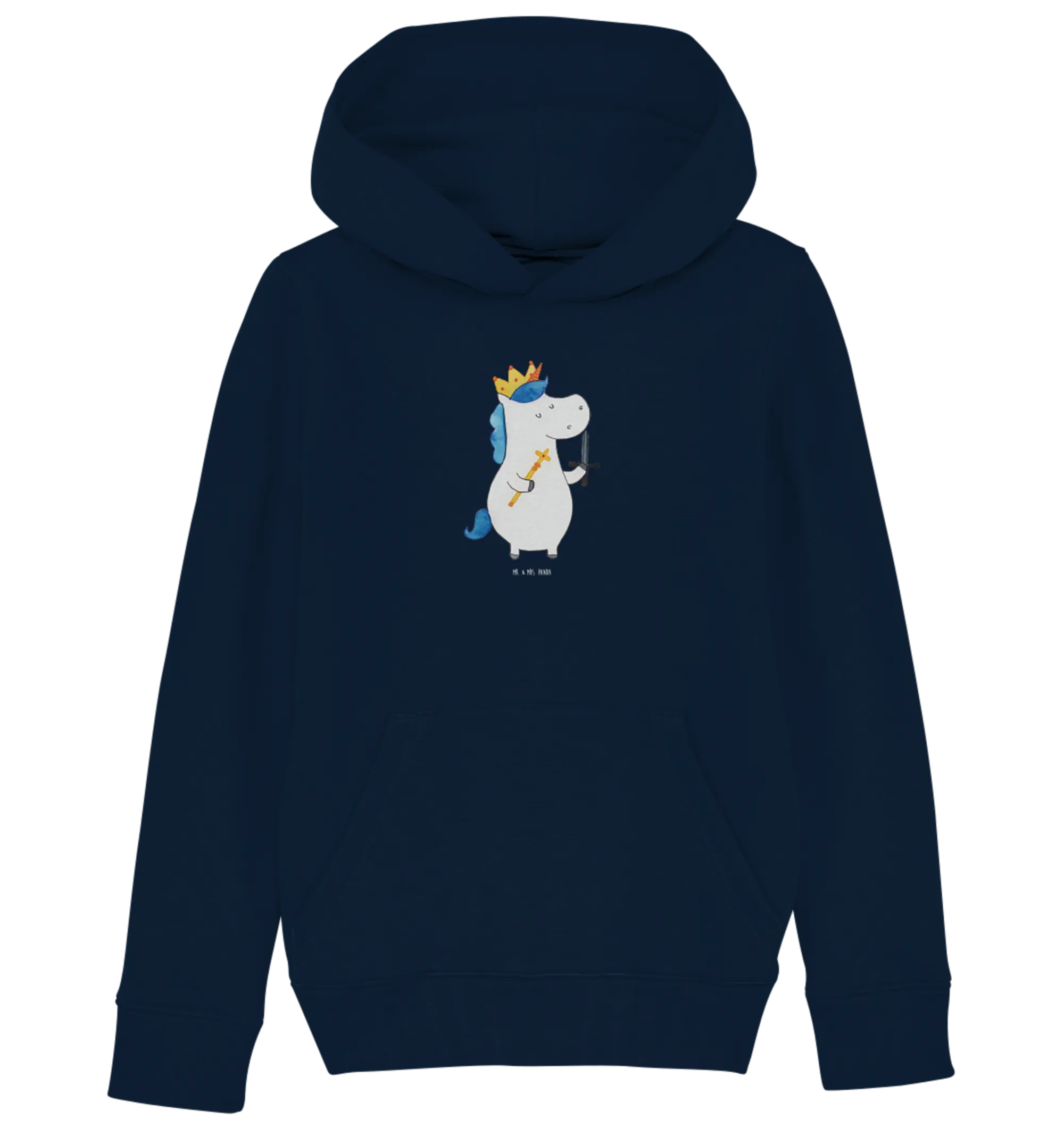 Organic Kids Hoodie unicorn king with sword - 12-14 years (152/164) - with saying - French Navy
