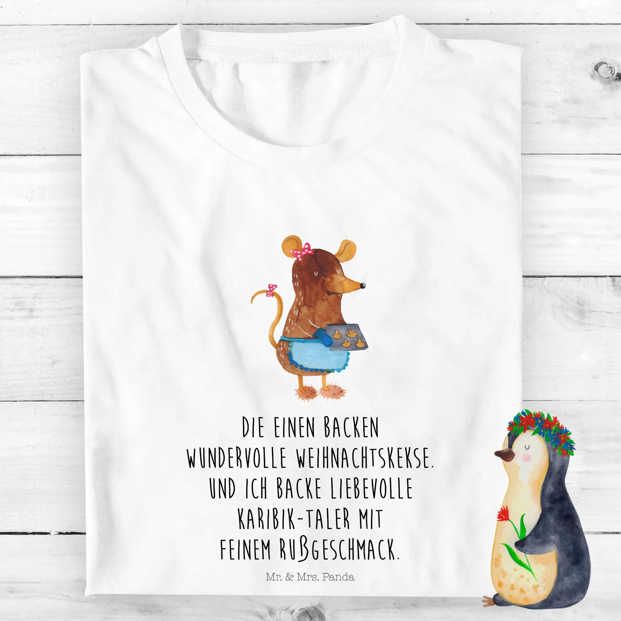 Visualize a cozy winter kitchen where a delightful mouse is making her magic with Christmas cookies. This charming little creature is crafting not just sweets but also warm memories as she blends flavors and spreads joy. The saying, 'Die einen backen wundervolle Weihnachtskekse. Und ich backe liebevolle Karibik-Taler mit feinem Rußgeschmack,' beautifully reflects the whimsy in each bake. Everyone can join in on this baking adventure, creating not just cookies, but a holiday filled with laughter, love, and a sprinkle of delightful chaos that only the season can bring.