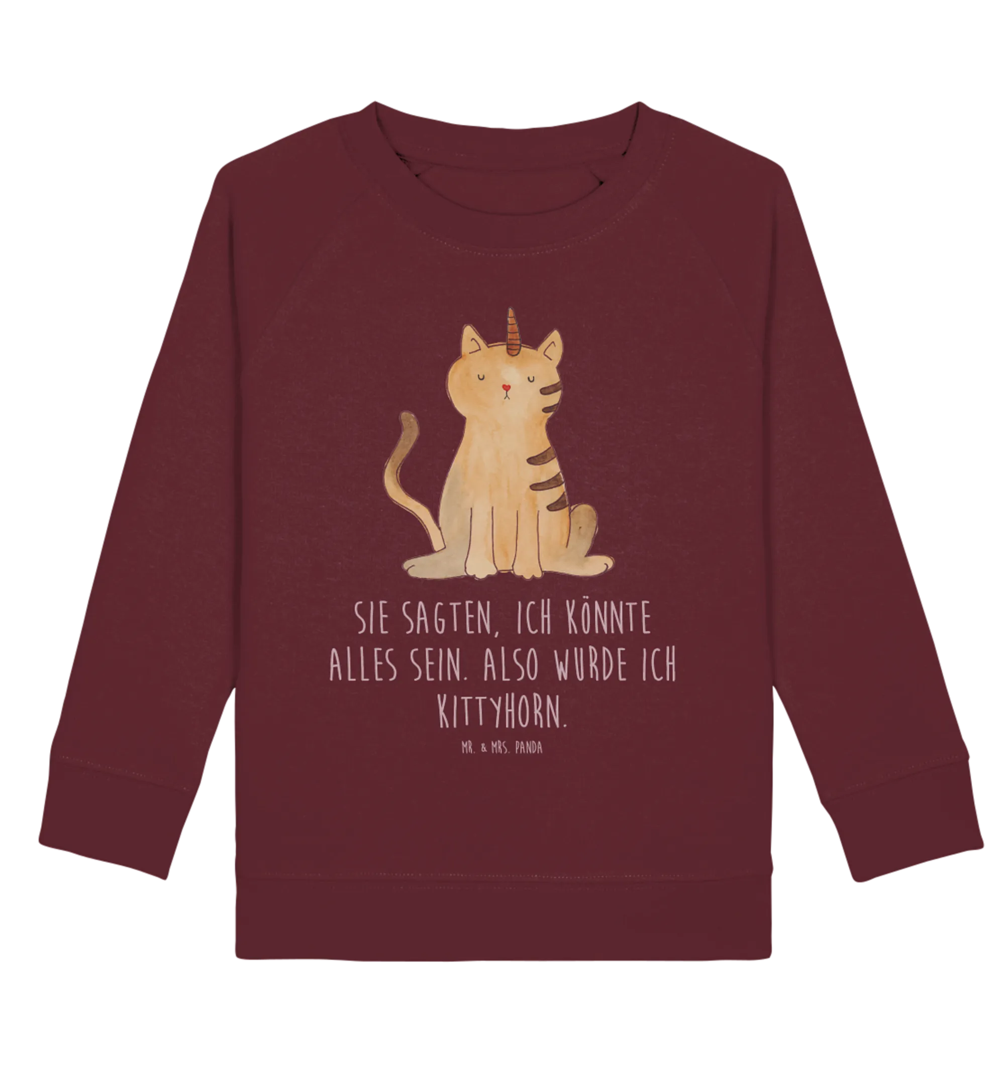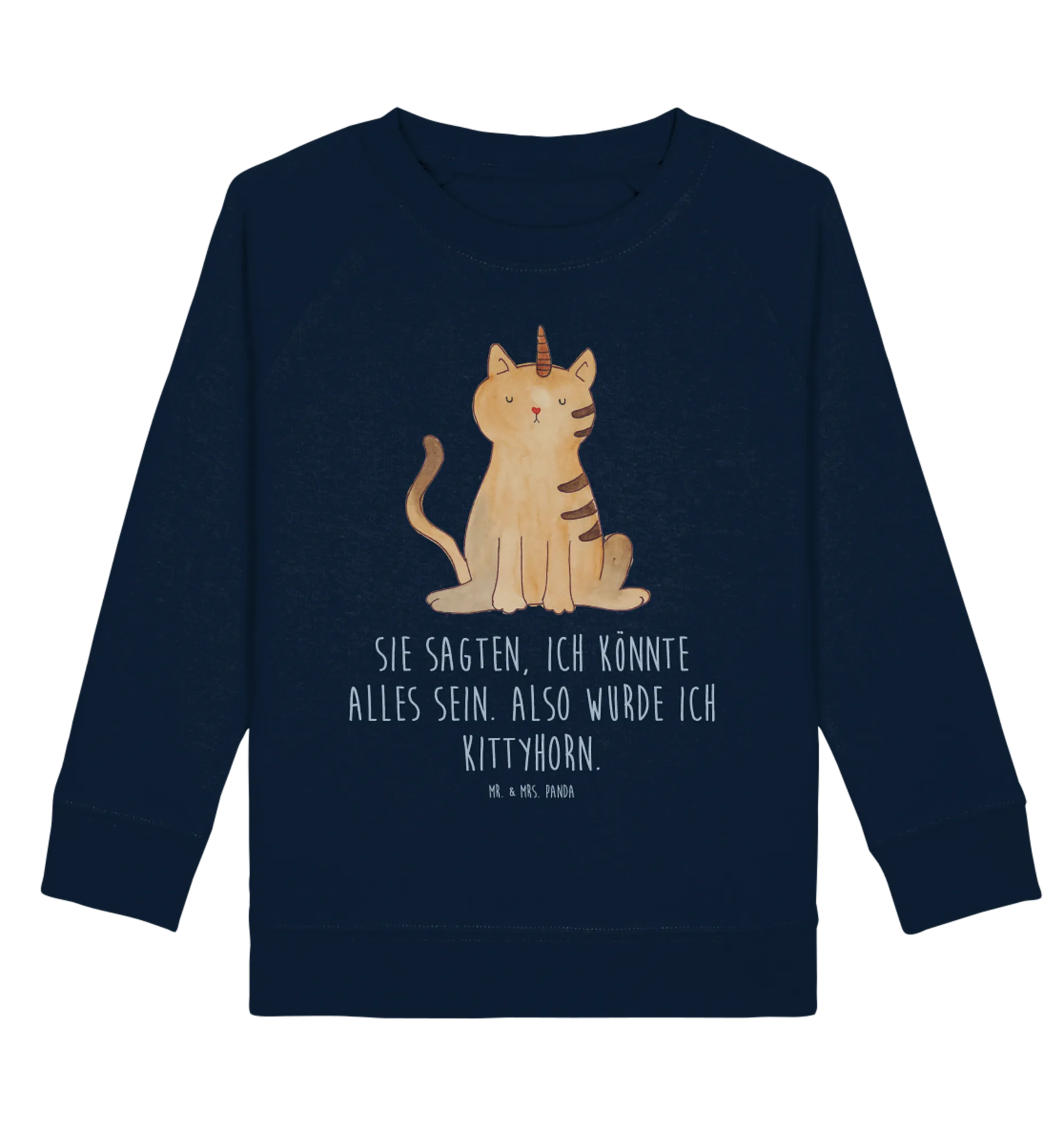Entdecke den zauberhaften Organic Kinder Pullover mit dem süßen Einhorn Katze Motiv aus der Einhorn - Kollektion von Mr. & Mrs. Panda! Dieser Pullover ist nicht nur absolut gemütlich, sondern auch ein echter Hingucker. Das bezaubernde Kittyhorn – eine zauberhafte Kombination aus Einhorn und Katze – bringt alle Kinderaugen zum Strahlen!