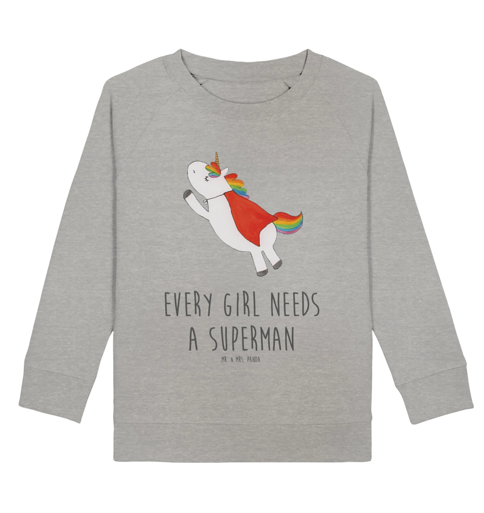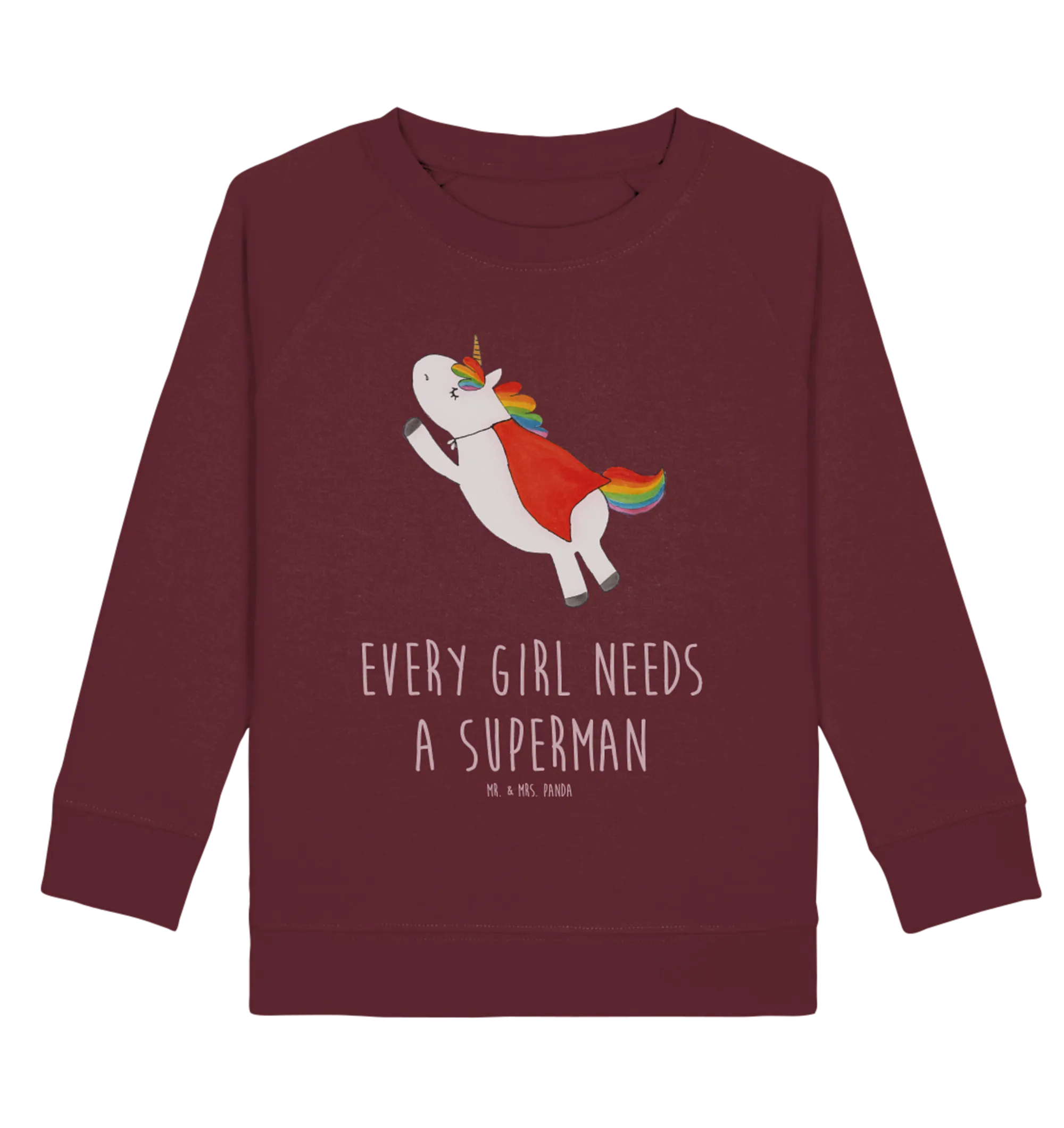 Die herzlichen Designs und liebevoll handgezeichneten Motive von Mrs. Panda bringen die Augen von kleinen Einhorn-Fans zum Strahlen. Der Pullover mit dem süßen Einhorn, das stolz als 'Superheld' auftritt, vermittelt den wichtigen Slogan, dass jedes Mädchen einen Superhelden braucht. Ob für den Alltag, einen Geburtstag oder als süßes Geschenk zur Einschulung – dieser Pullover ist einfach perfekt!