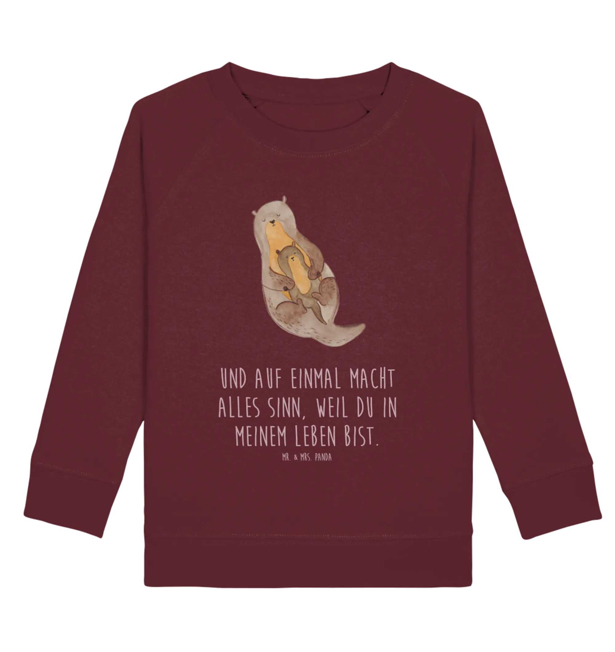 Schließe die Augen und stell dir vor, wie du mit deinem Kind gemütlich kuschelst. Unser Organic Kinder Pullover »Otter mit Kind« aus der Otter - Kollektion von Mr. & Mrs. Panda fängt genau dieses Gefühl ein. Der liebevolle Seeotter hält sein Junges auf dem Bauch, begleitet von dem herzlichen Spruch „Und auf einmal macht alles Sinn, weil du in meinem Leben bist.“