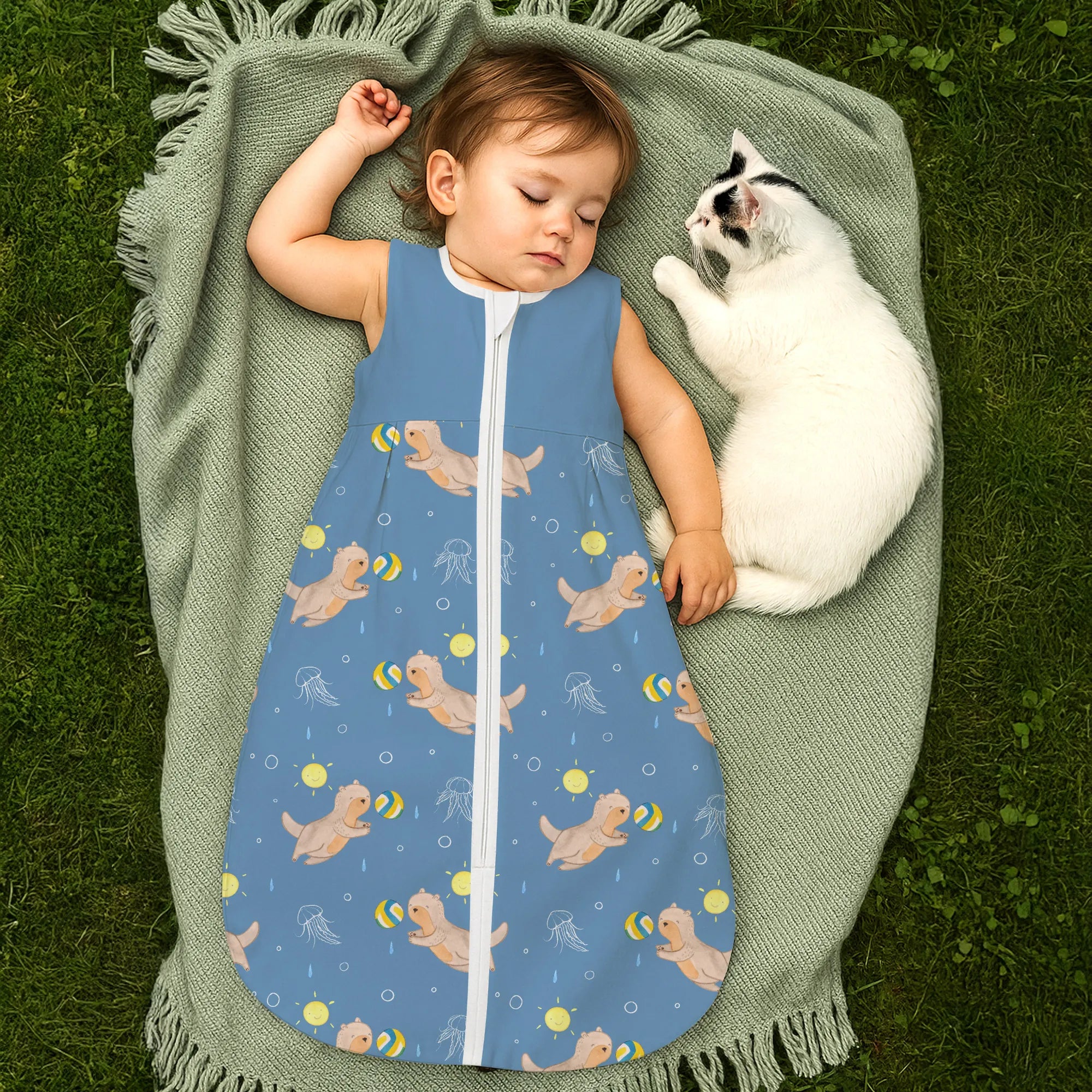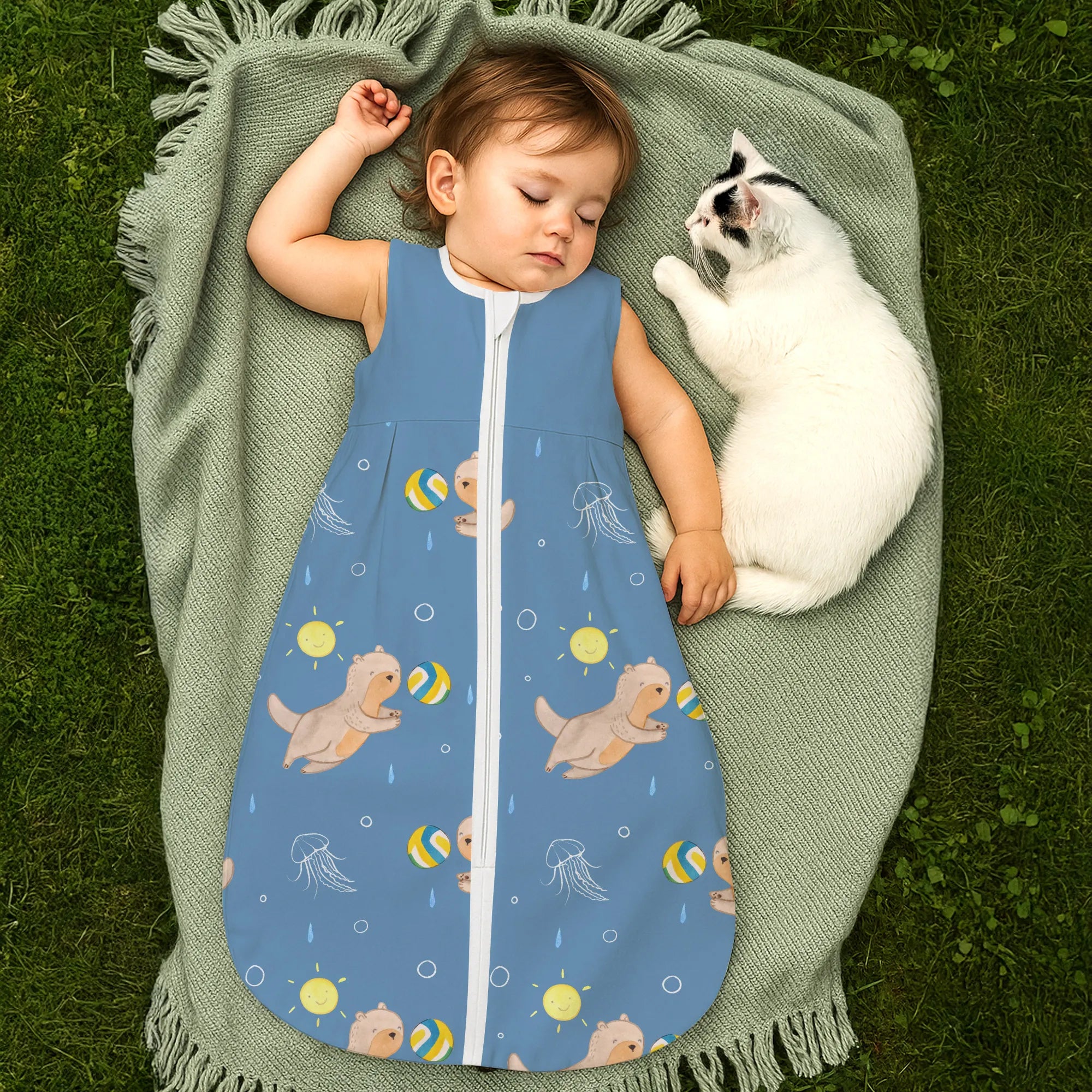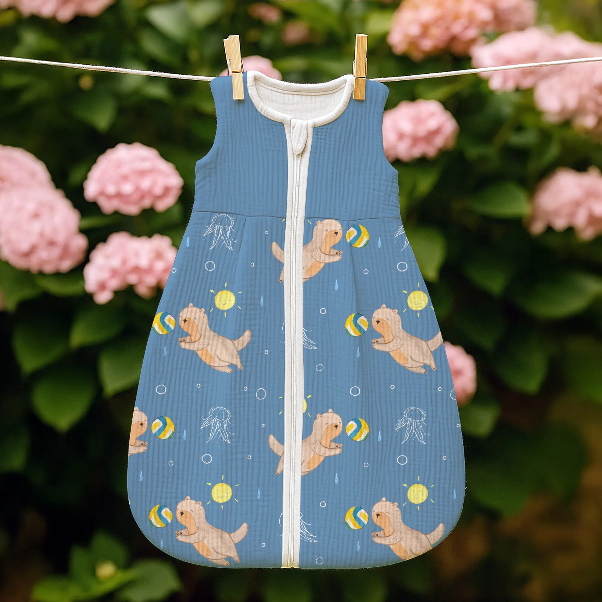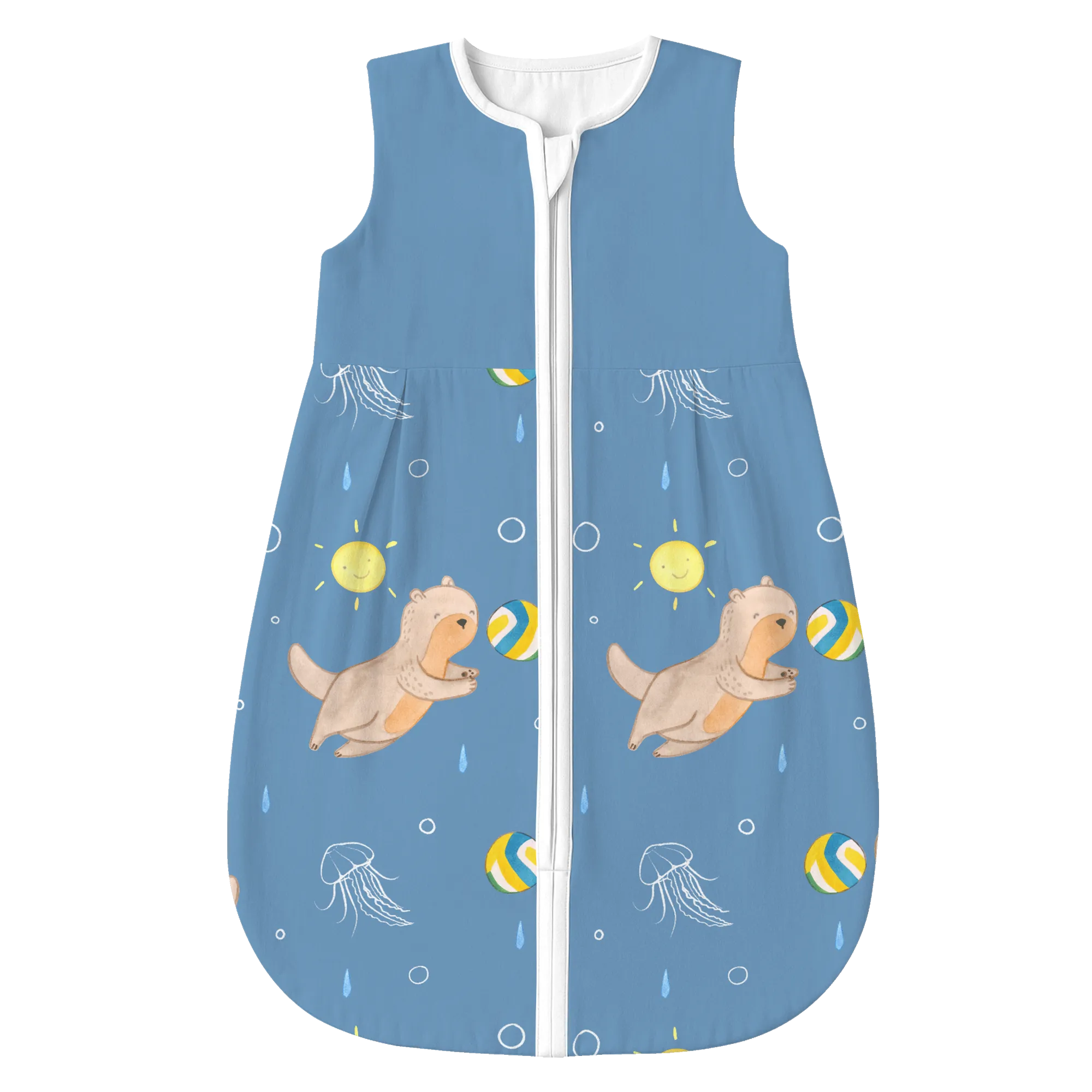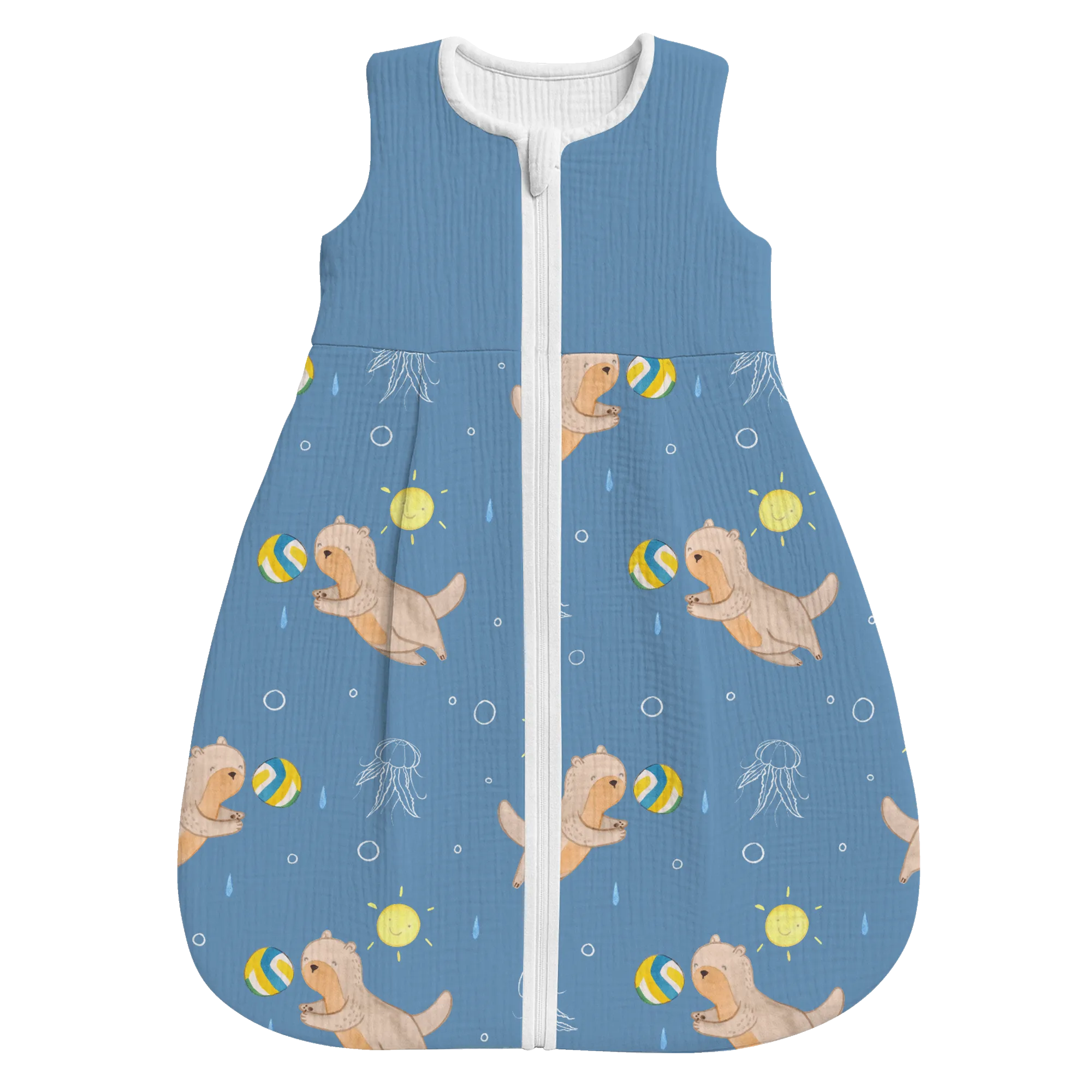 The baby sleeping bag from Mr. & Mrs. Panda combines charming design with maximum comfort. As a baby sleeping bag, it is printed with cute motifs and sayings from Mr. & Mrs. Panda and delights with very bright colors. The soft, breathable fabric ensures a high level of wearing comfort and a pleasant fit that makes dressing and undressing easier. A practical zipper allows quick diaper changes, while the fine binding at the neckline, sleeves and leg openings is gentle on the skin. Depending on the variant, it is available in different materials, including skin-friendly cotton, and comes in many sizes — please refer to the size chart. Not customizable and handmade for you. Easy care: machine washable at a maximum of 30 °C; gentle detergents recommended.