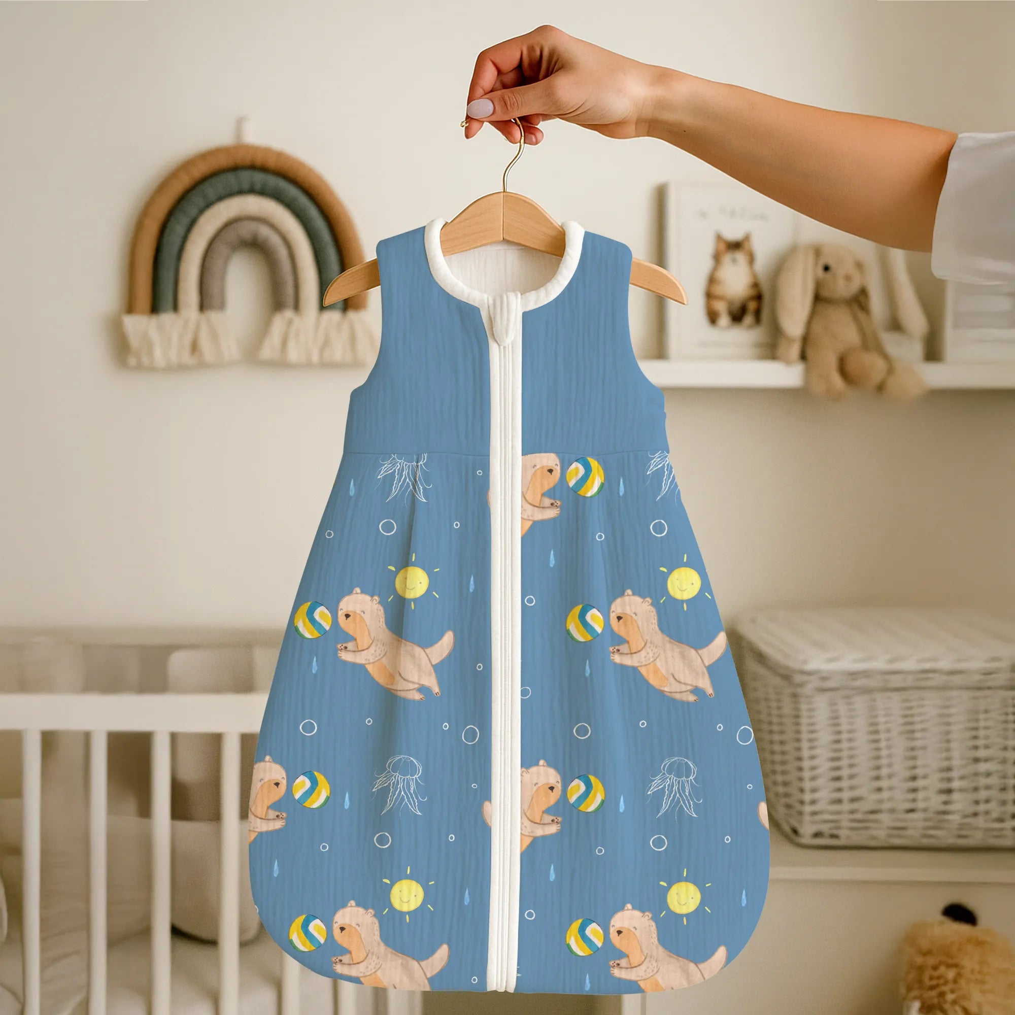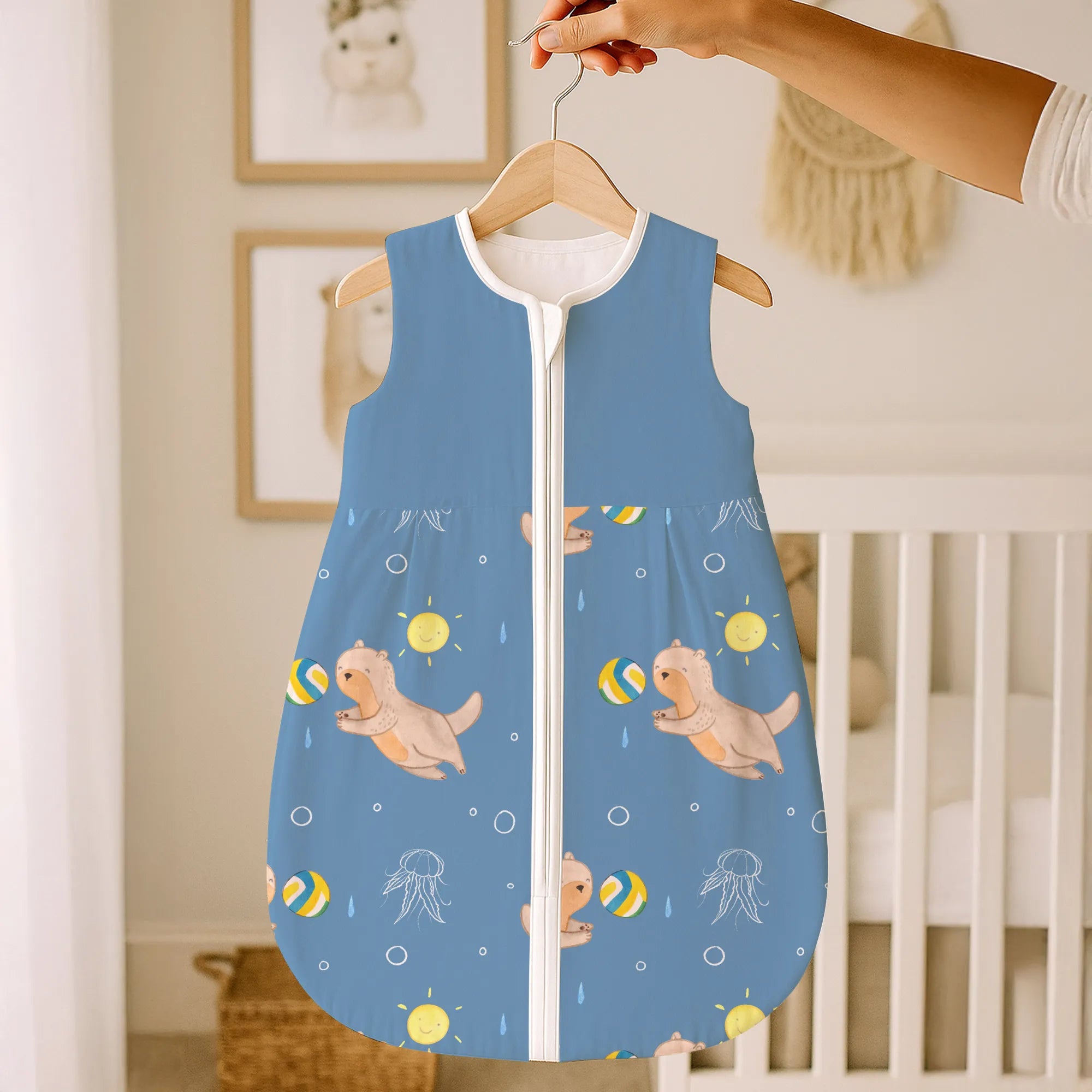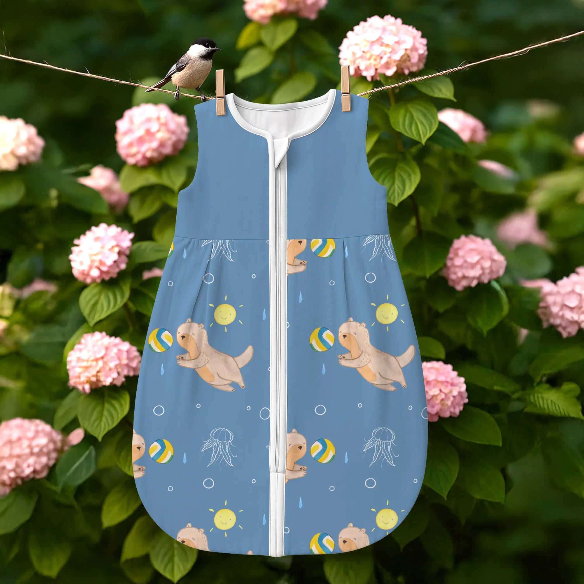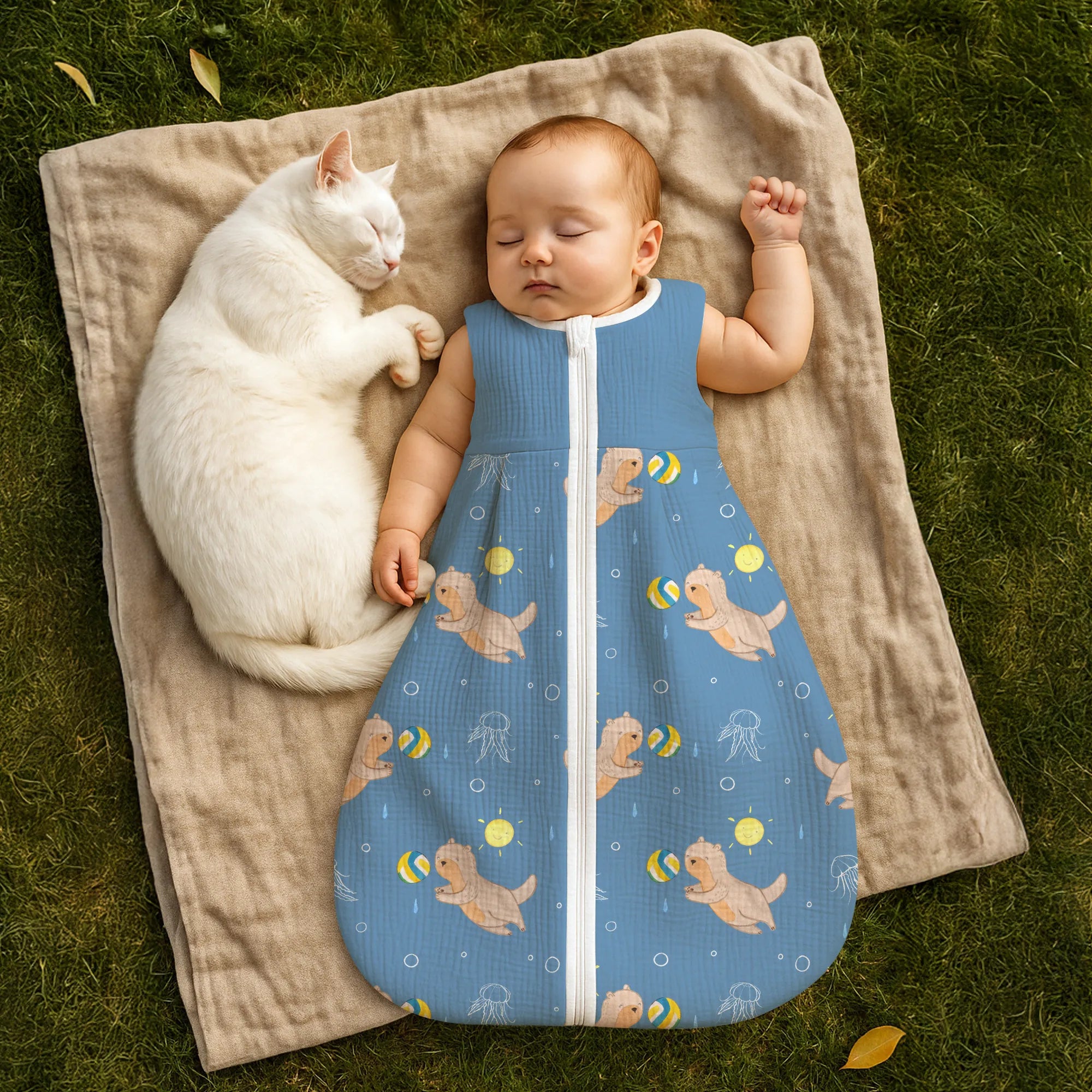 The baby sleeping bag from Mr. & Mrs. Panda combines charming design with maximum comfort. As a baby sleeping bag, it is printed with cute motifs and sayings from Mr. & Mrs. Panda and delights with very bright colors. The soft, breathable fabric ensures a high level of wearing comfort and a pleasant fit that makes dressing and undressing easier. A practical zipper allows quick diaper changes, while the fine binding at the neckline, sleeves and leg openings is gentle on the skin. Depending on the variant, it is available in different materials, including skin-friendly cotton, and comes in many sizes — please refer to the size chart. Not customizable and handmade for you. Easy care: machine washable at a maximum of 30 °C; gentle detergents recommended.