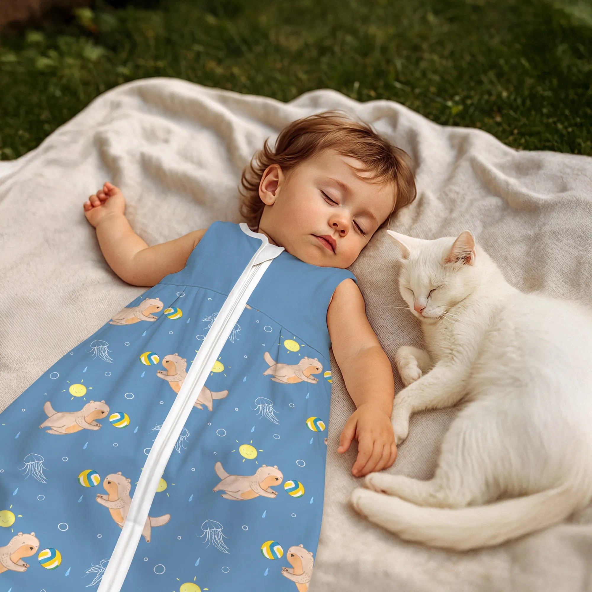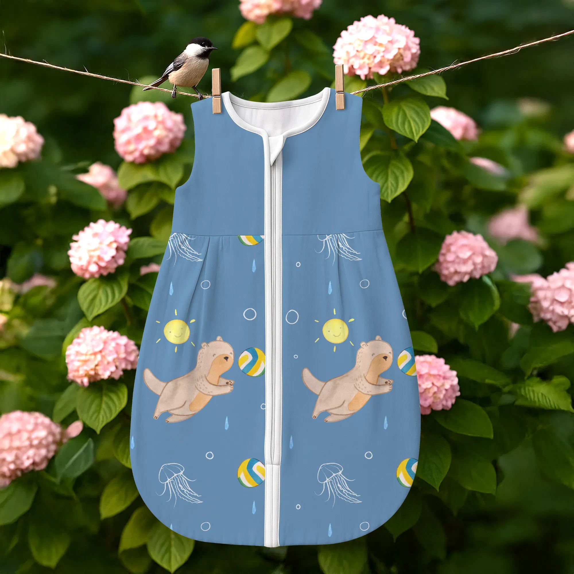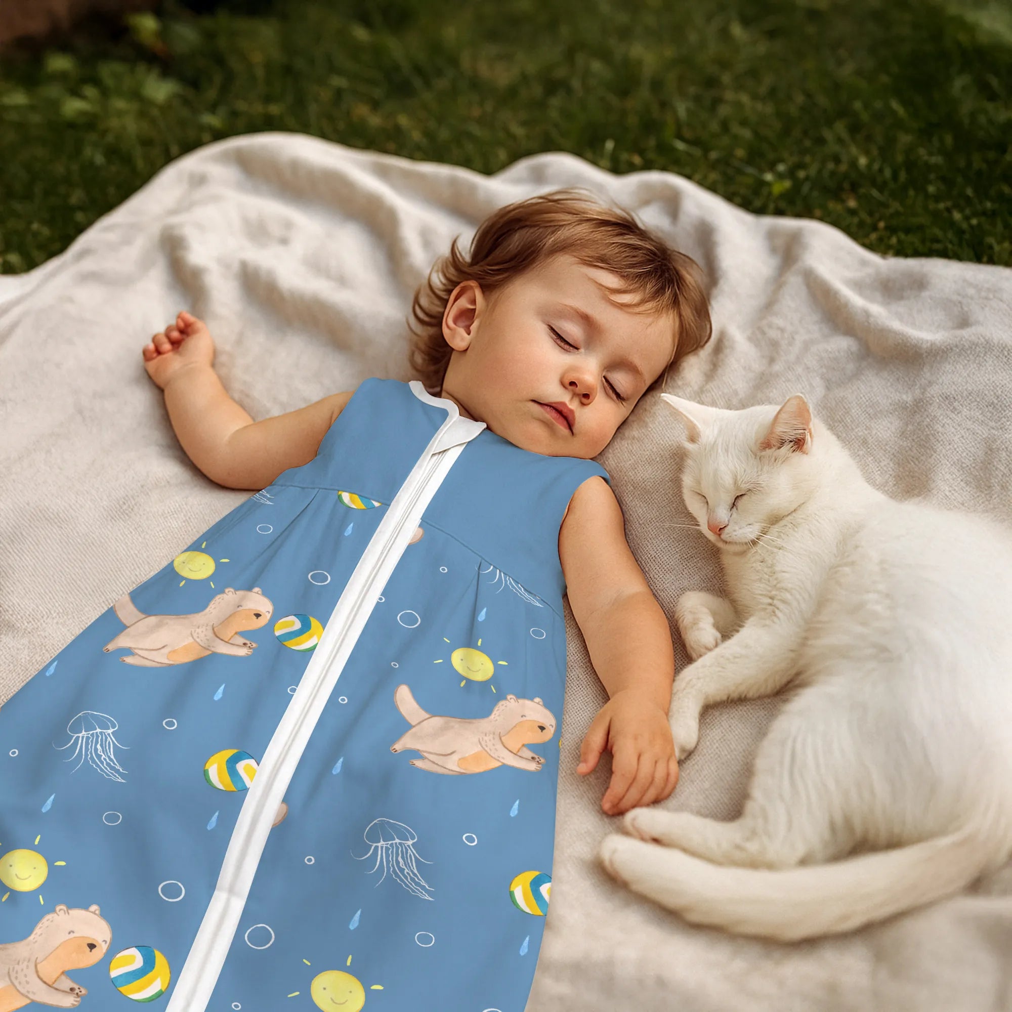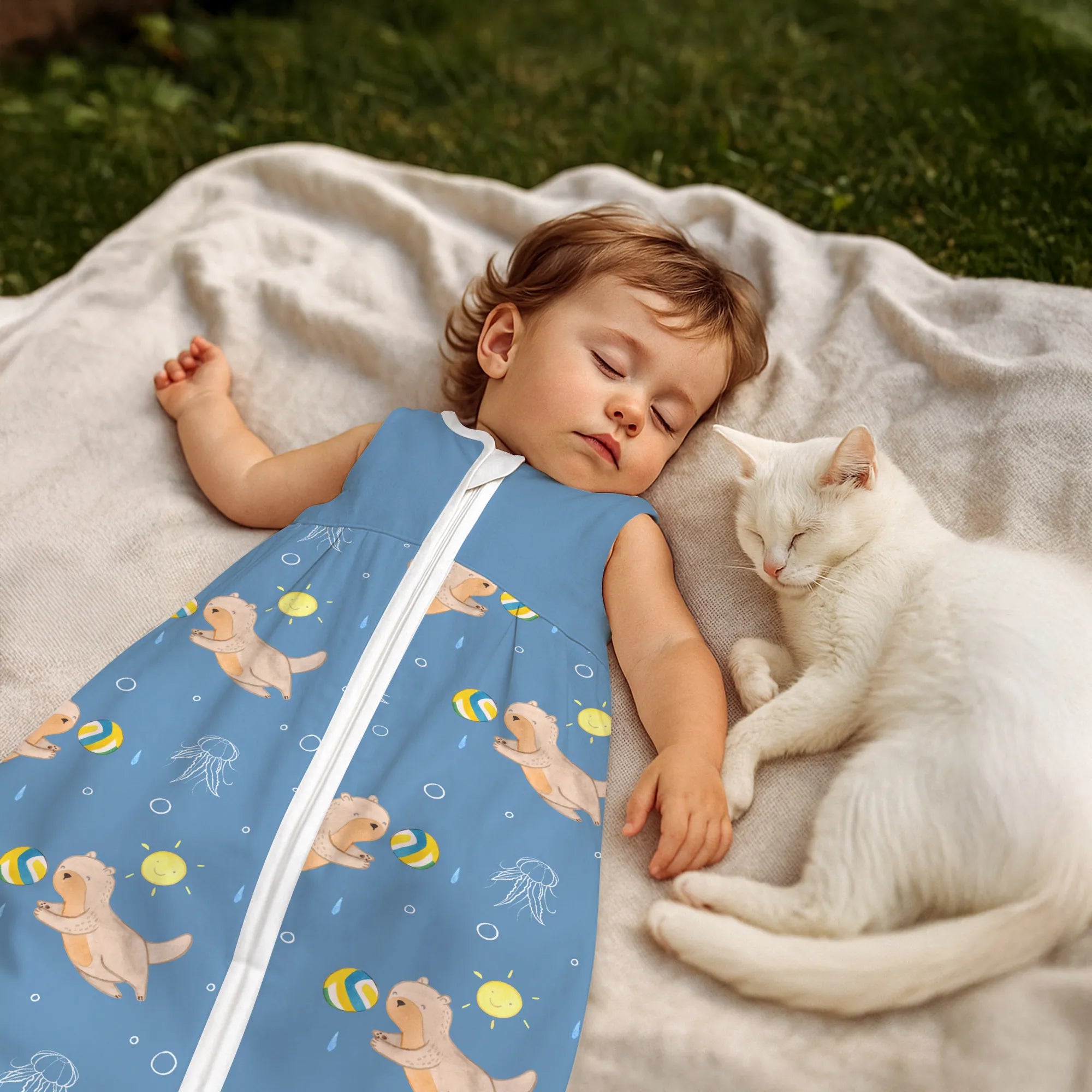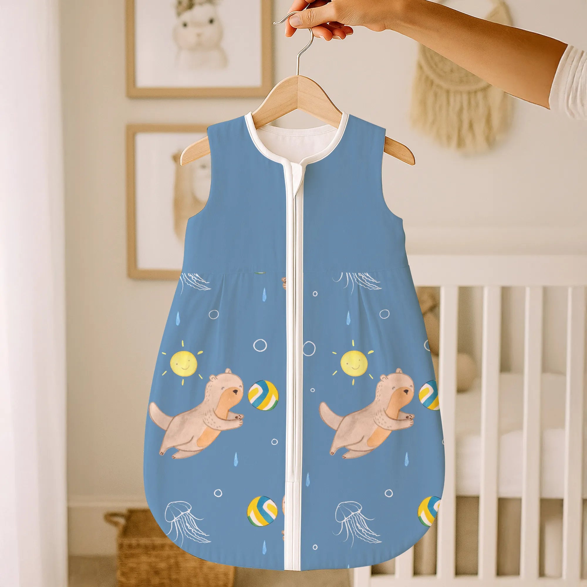 The baby sleeping bag from Mr. & Mrs. Panda combines charming design with maximum comfort. As a baby sleeping bag, it is printed with cute motifs and sayings from Mr. & Mrs. Panda and delights with very bright colors. The soft, breathable fabric ensures a high level of wearing comfort and a pleasant fit that makes dressing and undressing easier. A practical zipper allows quick diaper changes, while the fine binding at the neckline, sleeves and leg openings is gentle on the skin. Depending on the variant, it is available in different materials, including skin-friendly cotton, and comes in many sizes — please refer to the size chart. Not customizable and handmade for you. Easy care: machine washable at a maximum of 30 °C; gentle detergents recommended.