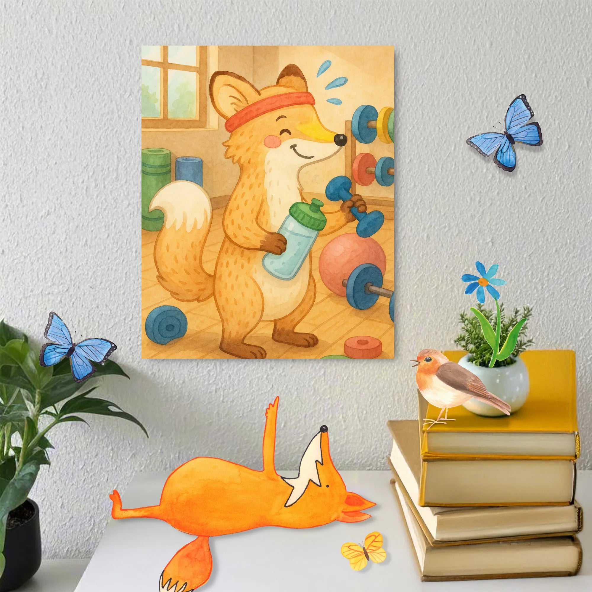 Here’s our adorable fox, setting the perfect example of what being fit is all about! With a dumbbell in one hand and a water bottle in the other, he’s sweating it out like a pro. He's not just a cute mascot; he's your personal cheerleader reminding you that working out is a celebration of movement and health. From weight training to playful exercises, he illustrates how fun it can be to embrace fitness in all aspects of life, whether that's at home or your local gym. Every drop of sweat symbolizes a goal achieved and a step forward in your journey. So, let this charming little fox encourage you to pick up those weights, join a sports club, or simply enjoy a living room workout. Fitness is not just about the destination; it's about enjoying every step along the way, and this fox is here to remind you of that!