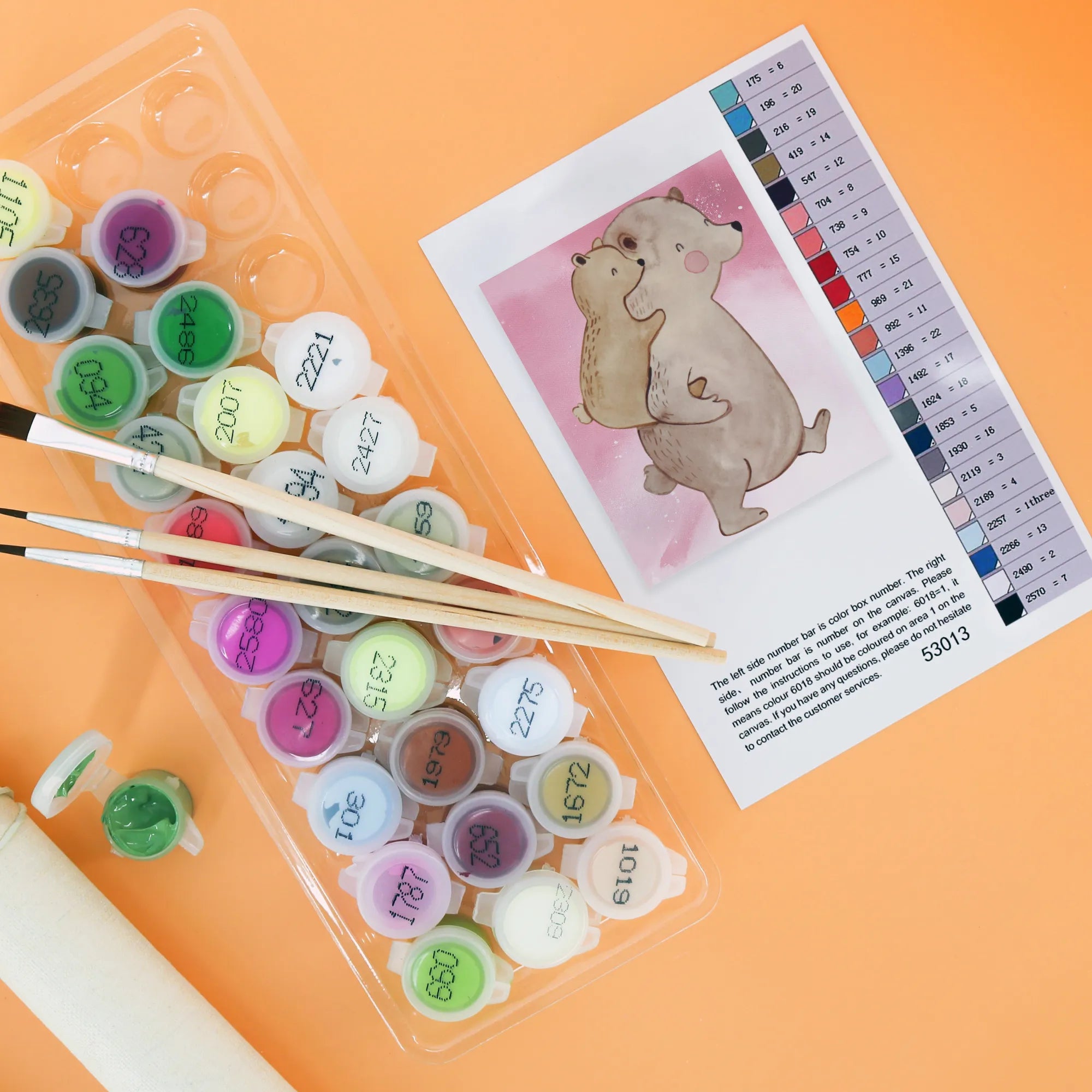 The Papa Bear Paint by Numbers set measures a delightful 40 x 50 cm, making it a perfect size for framing, allowing it to be a beautiful home decor piece once completed. Included in this set are high-quality acrylic paints that ensure perfect vibrancy and longevity, along with three durable brushes for a smooth painting experience. Suitable for all levels, this kit offers 24 vibrant colors, ideal for beginners and those still gaining experience in the painting world.