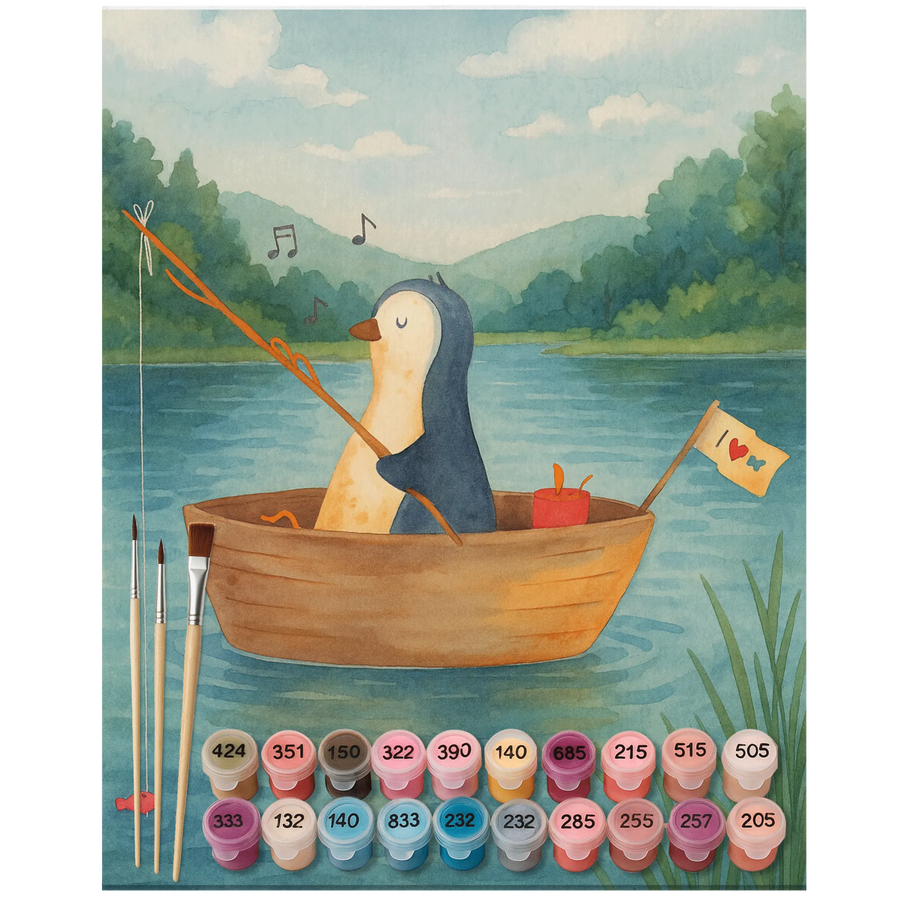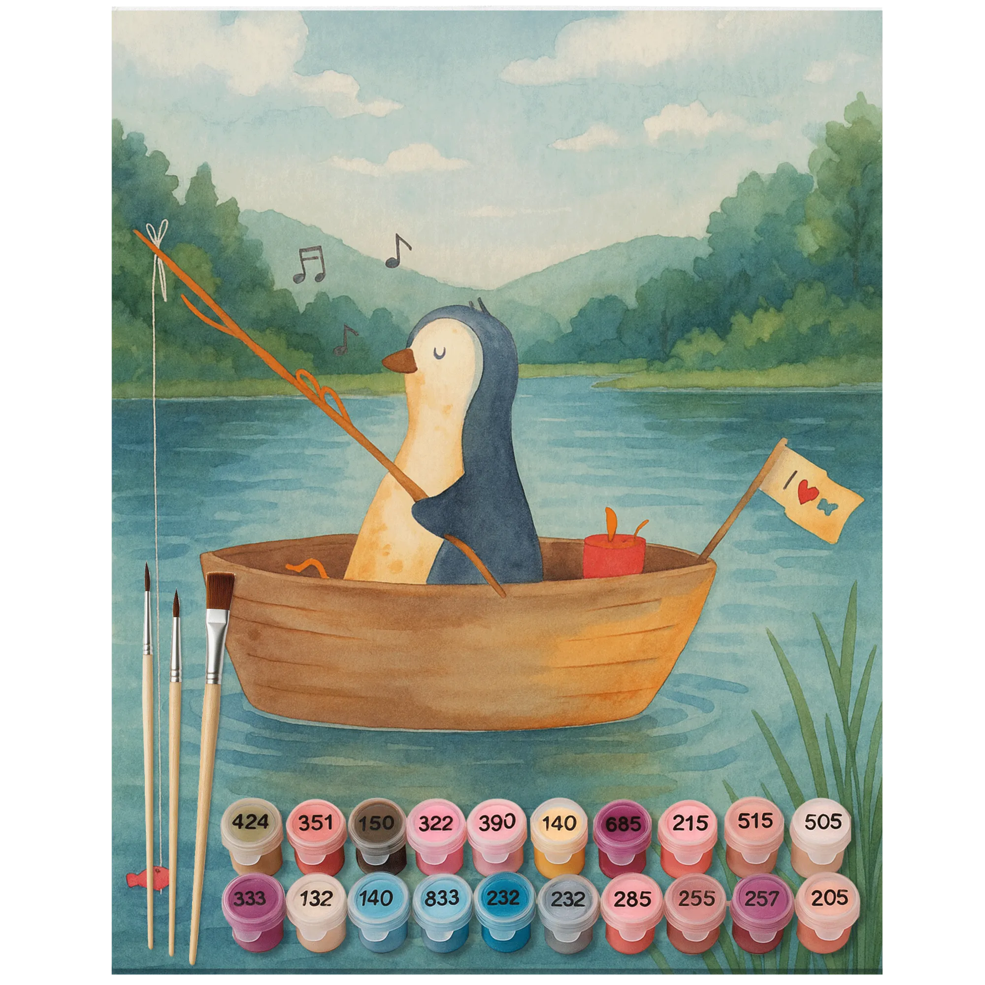 Paint by Numbers Penguin fishing boat Design - Ohne Rahmen - 24 Farben (Standard)