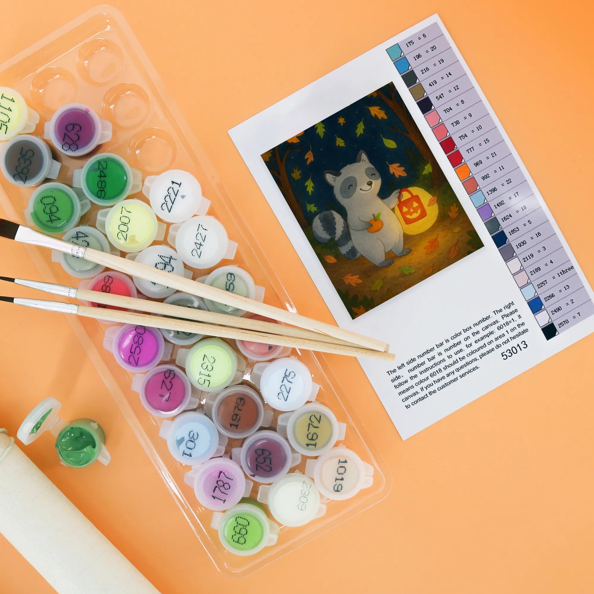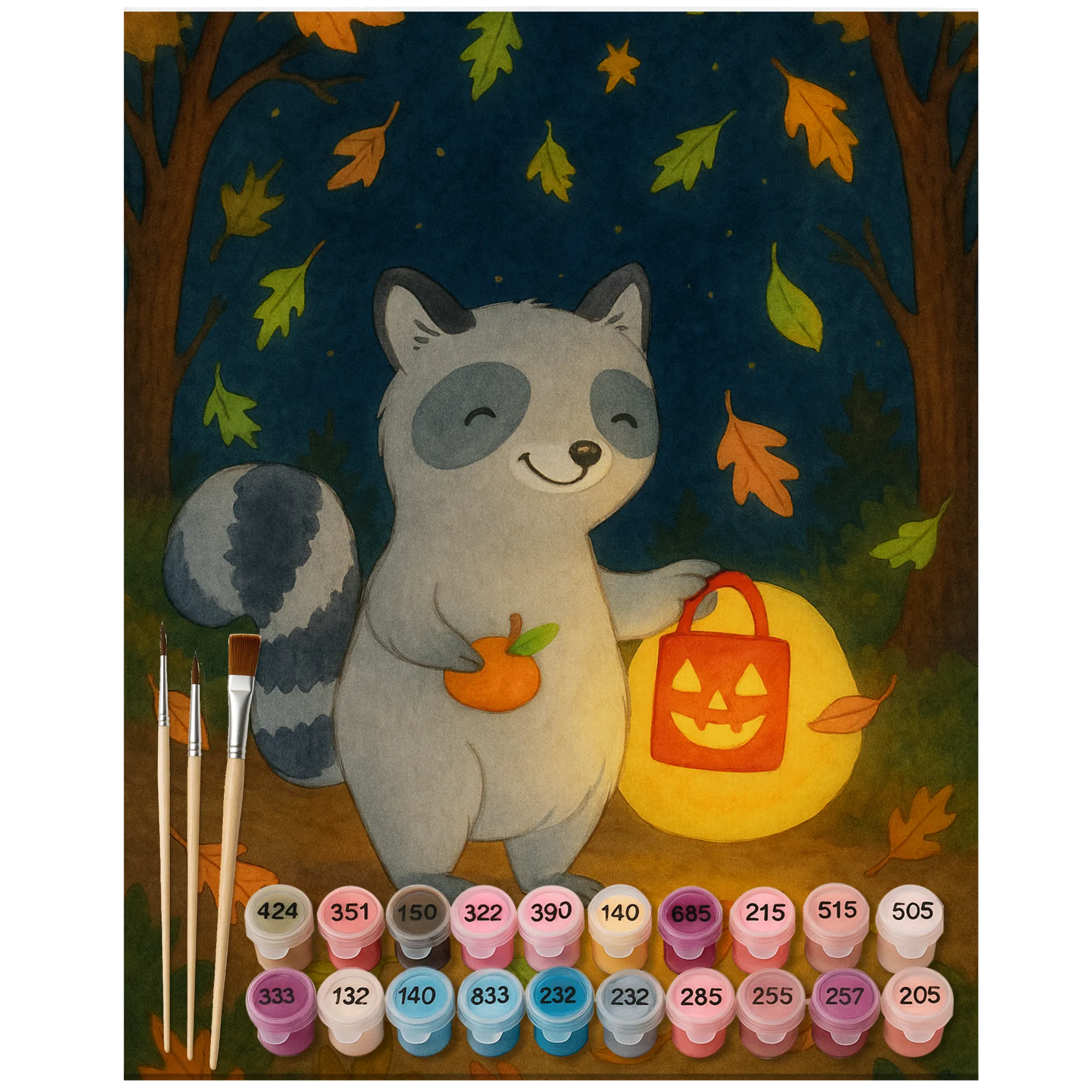 Paint by Numbers Raccoon Lantern Design Ausmalbild, Malen, DIY, Kunstwerk, Kreativität, Baseln, Malen nach Zahlen, Künstler, Bastelidee, Halloween, Deko, Martinssingen, Dekoration, Geschenke, Schenken, Süßes sonst gibt's saures, Waschbär, Halloween Deko, Laterne, Trick or Treat, Herbst