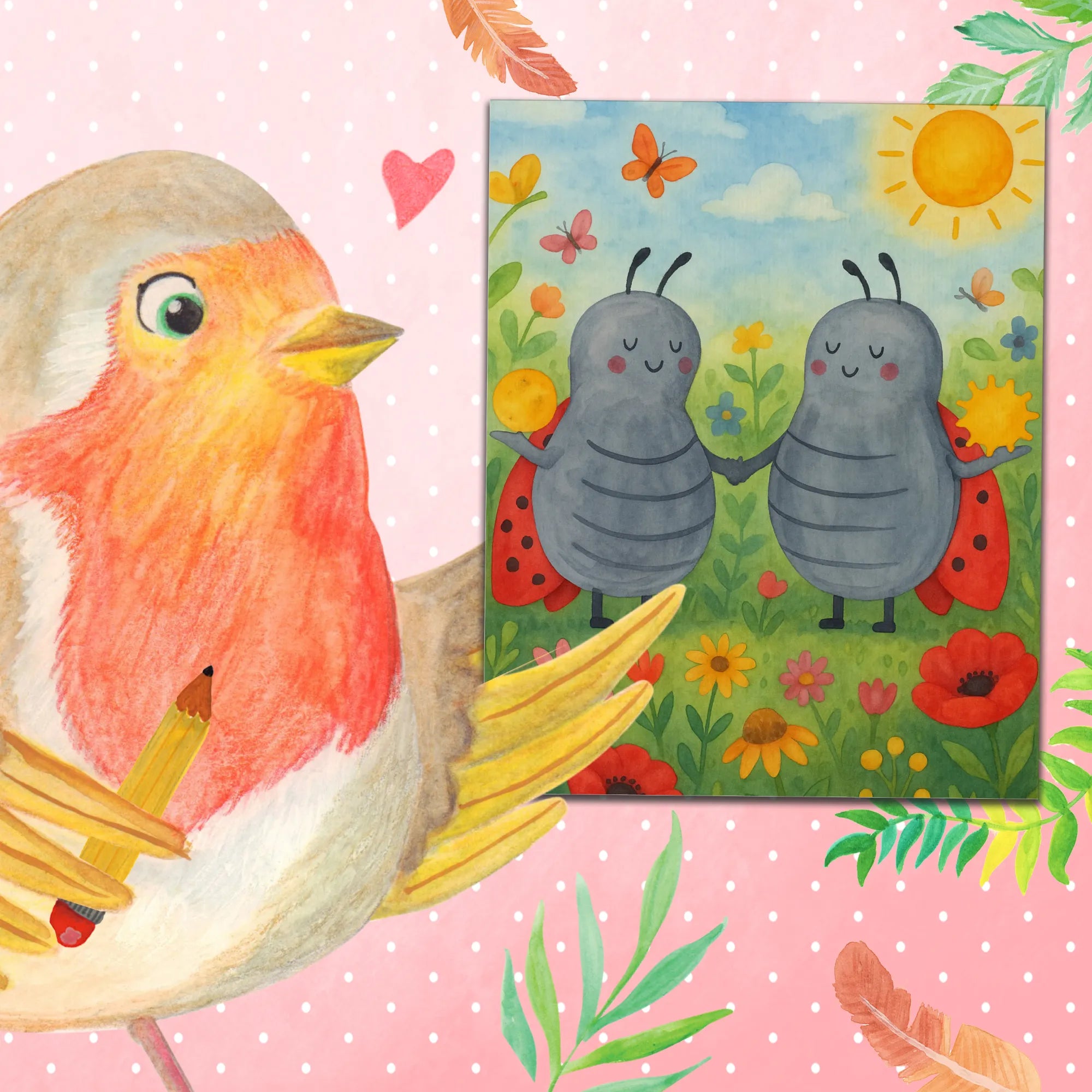 Playful Twin Ladybird Design Perfect for Gemini Birthdays - Share the Love!
