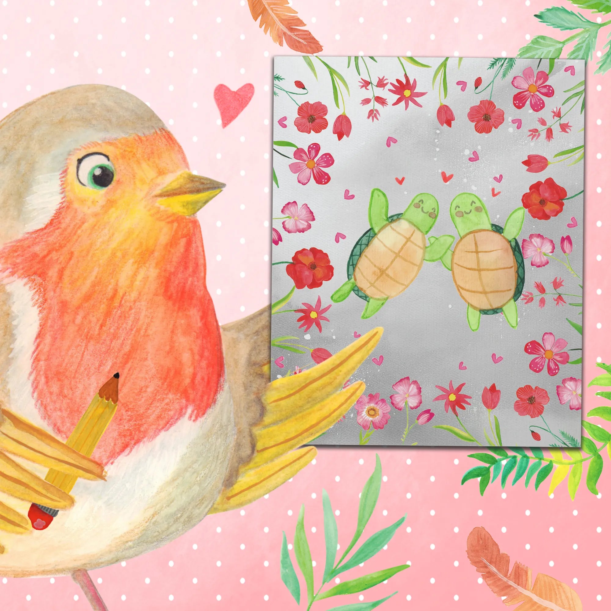 Introducing our delightful turtle duo! This enchanting motif is a celebration of love and connection. Imagine two adorable turtles gazing at one another with joyful eyes, surrounded by playful red hearts. This scene is a beautiful representation of the affection we share with our loved ones. Perfect for Valentine's Day, this motif makes a thoughtful gift for women, whether it's for an anniversary, wedding, or just a little surprise for your girlfriend or boyfriend. The warmth and tenderness conveyed by these turtles remind us that love thrives in simplicity. It's a touching gift token that will surely bring a smile to your partner’s face, making it a cherished piece for years to come. Celebrate your love story with this turtle pair that encapsulates the heart of true companionship!
