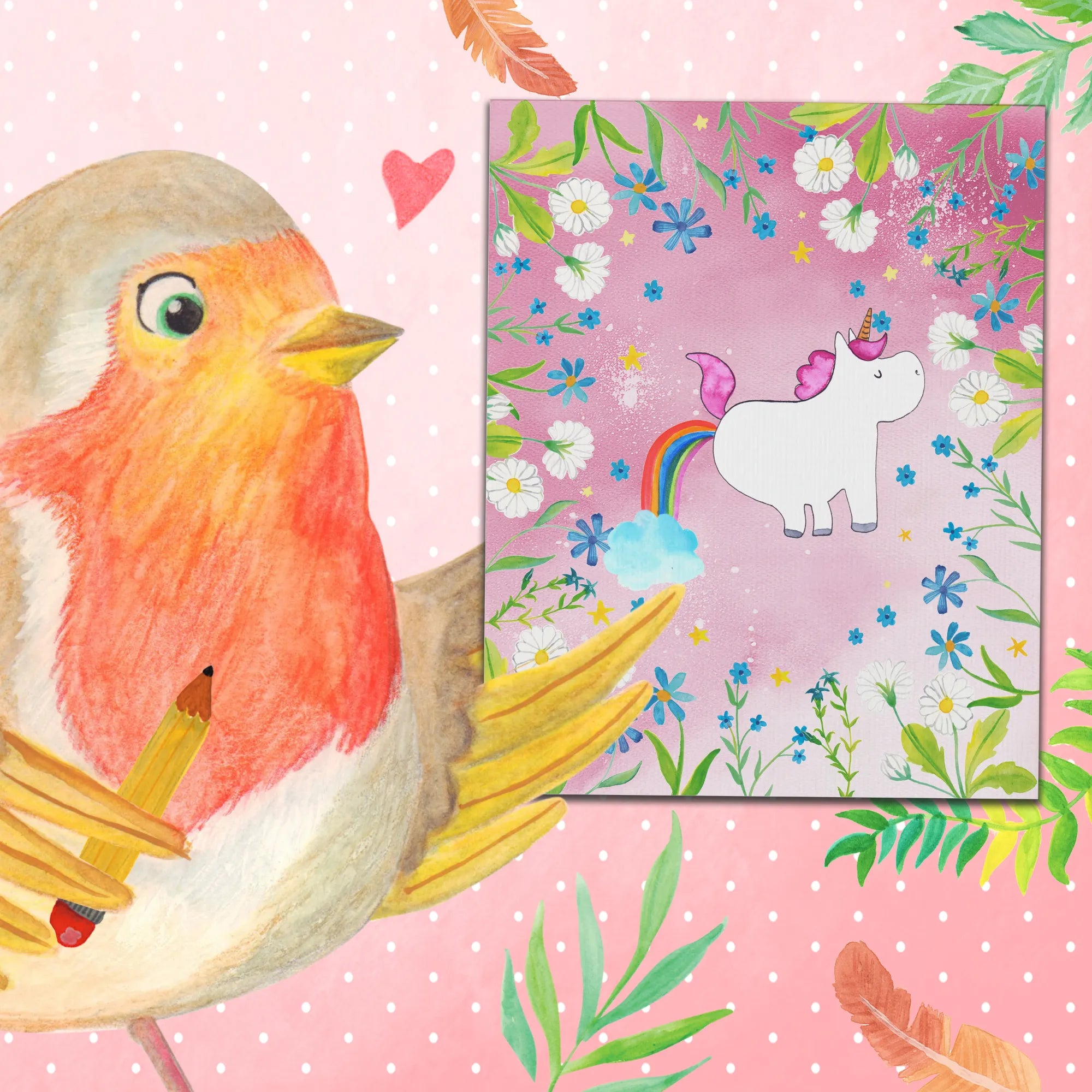 Das Einhorn schwirrt fröhlich über einen bunten Regenbogen und bringt mit seinem Glitzerstrahl Freude und Heiterkeit. Die witzige Darstellung des Einhorns, das mit einem Pups den Regenbogen kreiert, spricht nicht nur Kinder, sondern auch Erwachsene an. Es ist eine humorvolle Art, die Realität des Erwachsenseins aufzulockern und sich wieder wie ein Kind zu fühlen – denn wer möchte nicht einmal im Leben wie ein Einhorn sein?
