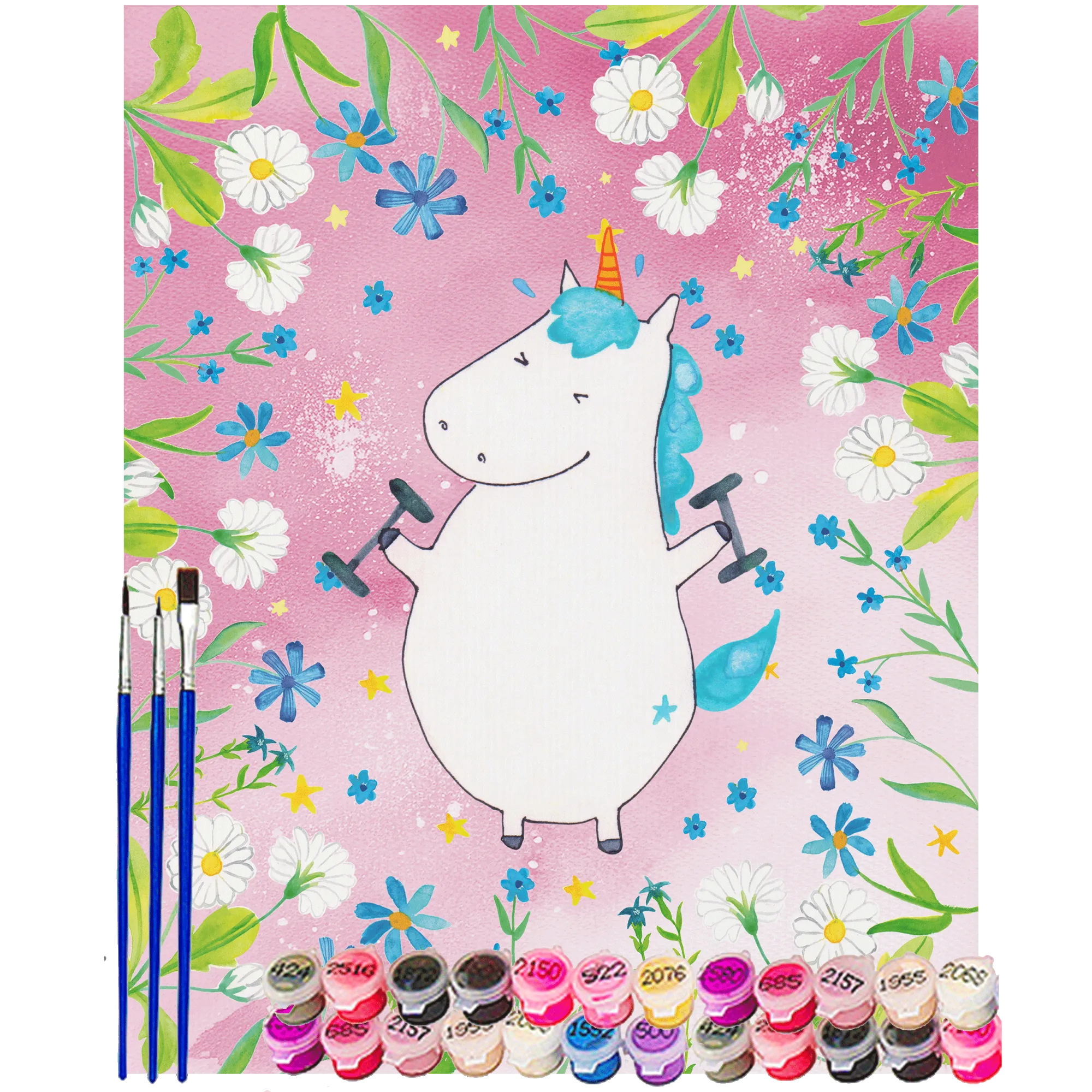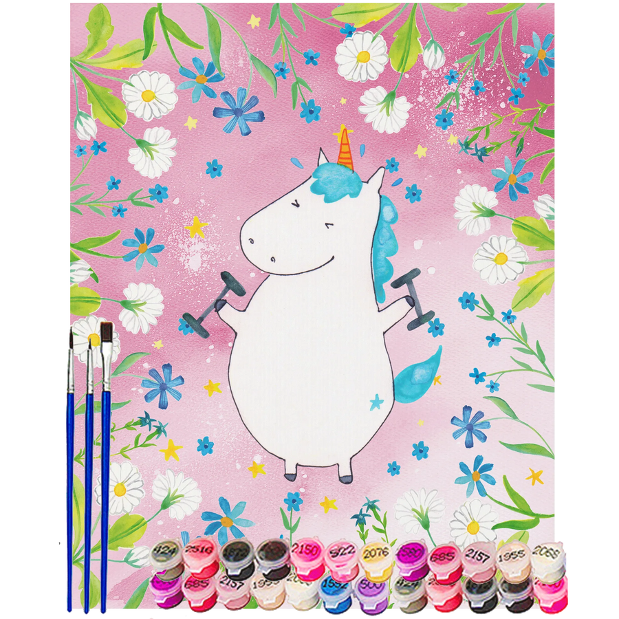 Malen nach Zahlen ist der perfekte Weg, um in die kreative Welt der Farben einzutauchen! Mit dem besonderen Motiv "Einhorn Fitness" aus der zauberhaften Einhorn-Kollektion von Mr. & Mrs. Panda bekommst Du nicht nur ein wunderschönes Kunstwerk, sondern auch eine kleine Motivation für Deine Fitness-Reise! Das süße Einhorn, das mit seinen Hanteln trainiert, bringt Dich zum Lächeln – und das, während Du Deine eigene Fitnessgeschichte malst.