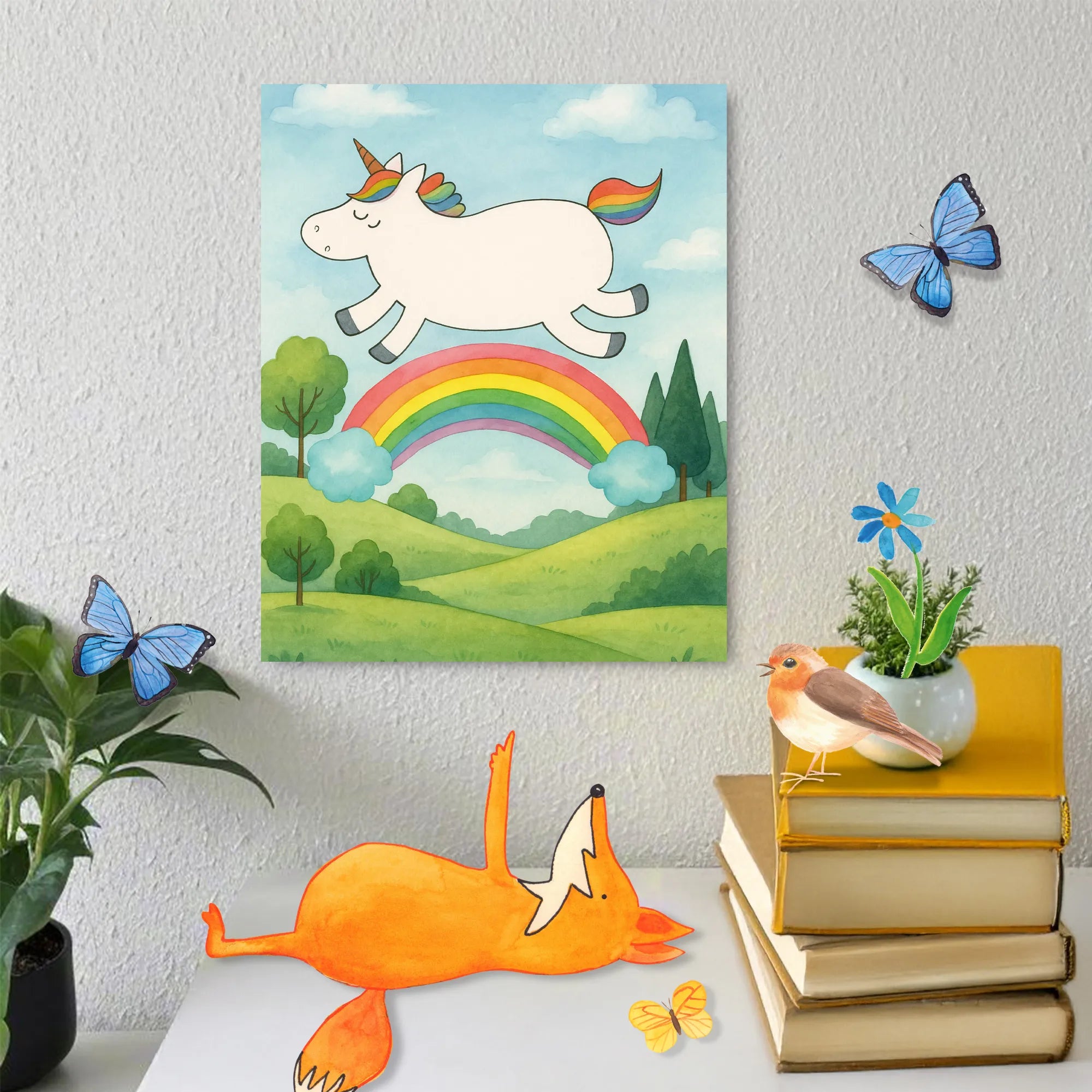 Lass dich von einem märchenhaften Einhorn verzaubern, das voller Energie über einen strahlenden Regenbogen flitzt! Dieses besondere Geschöpf stellt uns vor die Wahl: Träumen wir weiter, oder gehen wir den magischen Weg an der Einhornautobahn entlang? Die Glitzerpartikel, die es hinterlässt, sind nicht nur hübsch anzusehen, sie erwecken die Träume in uns zum Leben. Der Regenbogen symbolisiert all die Erlebnisse, die wir in der Kindheit gesammelt haben, und schenkt uns den Mut, auch als Erwachsene wieder mutig und fantasievoll zu träumen. Lass uns die Einhornpower singen und die Farbenpracht des Lebens genießen. Jedes Mal, wenn das Einhorn über den Regenbogen springt, gibt es uns einen kleinen Schubs, um darüber nachzudenken, wie wir mit Freude und Abenteuerlust in die Welt hinausgehen können. Wenn wir uns auf die Reise begeben, werden wir für alles, was kommt, bereit sein! Verliere den Glauben an die Magie nicht, denn sie wartet nur darauf, von uns entdeckt zu werden.