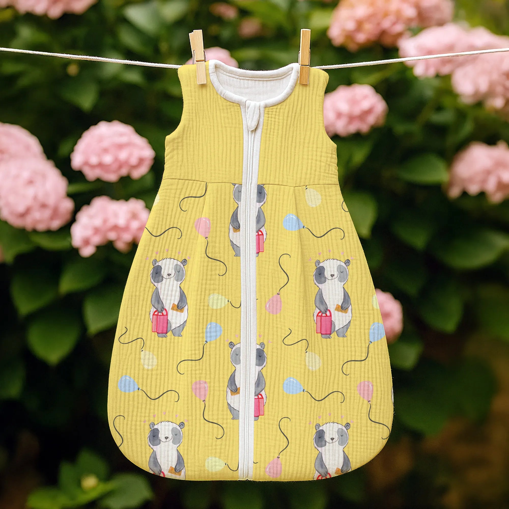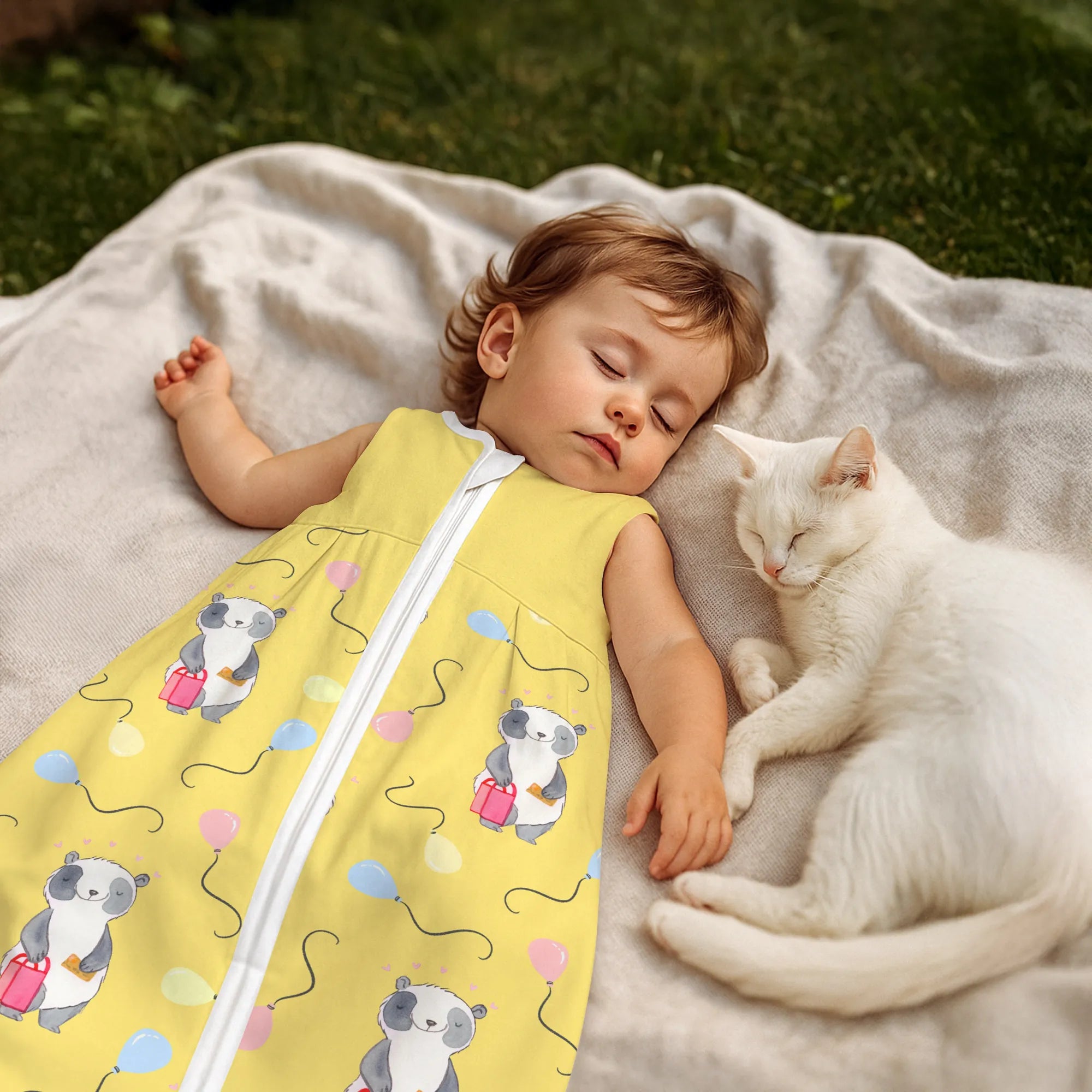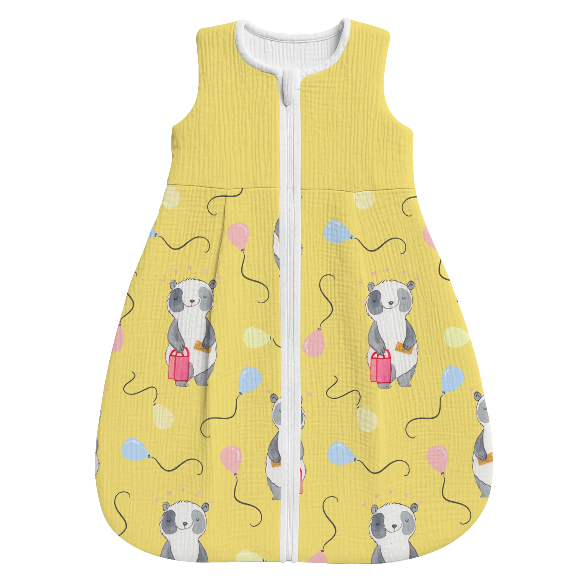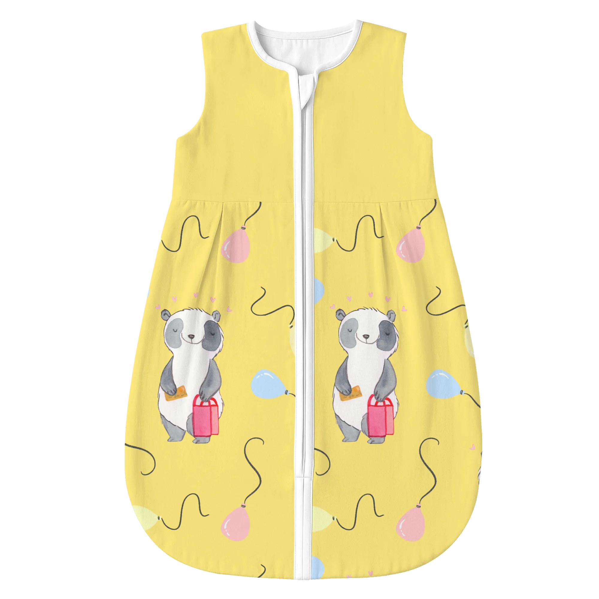 The baby sleeping bag from Mr. & Mrs. Panda combines charming design with maximum comfort. As a baby sleeping bag, it is printed with cute motifs and sayings from Mr. & Mrs. Panda and delights with very bright colors. The soft, breathable fabric ensures a high level of wearing comfort and a pleasant fit that makes dressing and undressing easier. A practical zipper allows quick diaper changes, while the fine binding at the neckline, sleeves and leg openings is gentle on the skin. Depending on the variant, it is available in different materials, including skin-friendly cotton, and comes in many sizes — please refer to the size chart. Not customizable and handmade for you. Easy care: machine washable at a maximum of 30 °C; gentle detergents recommended.