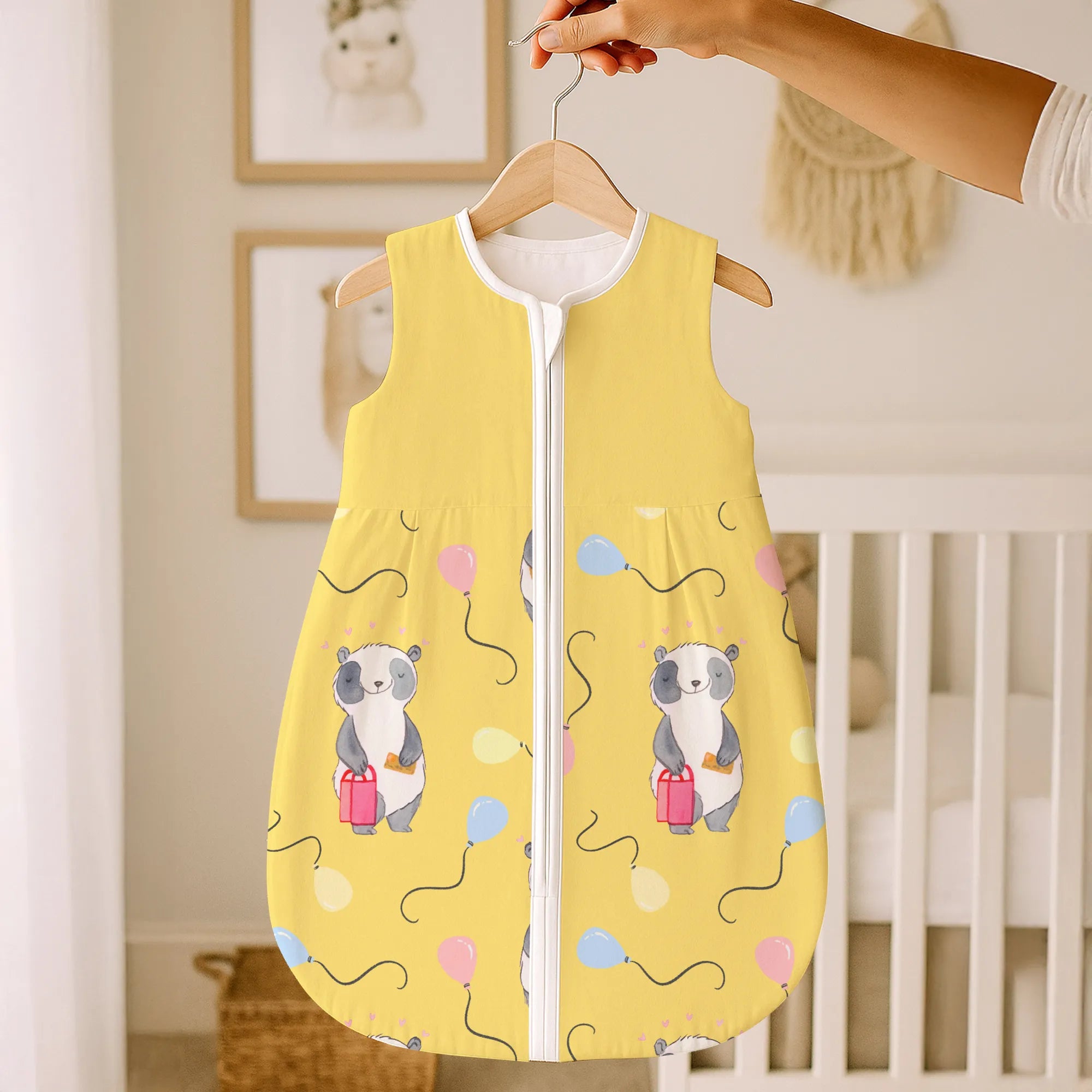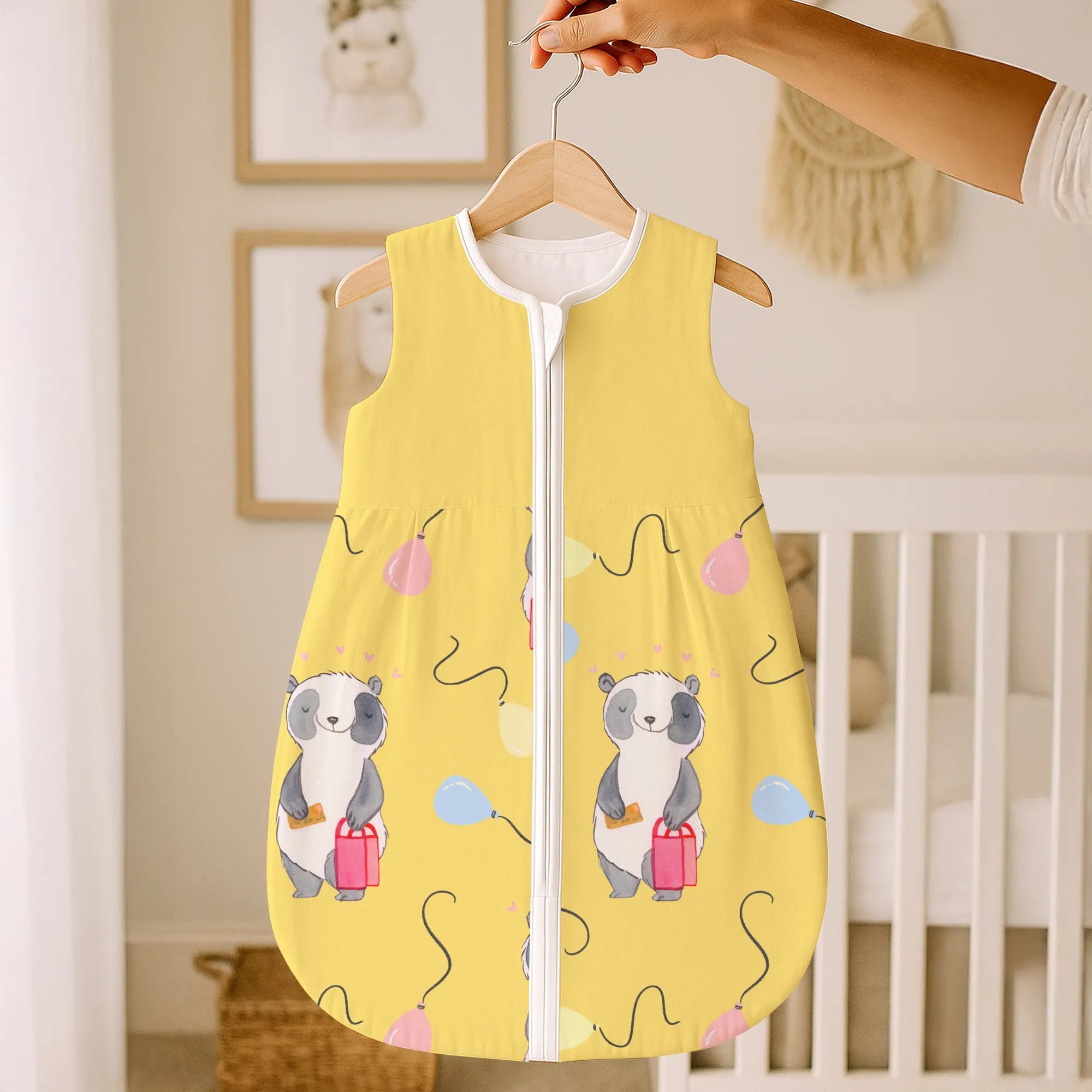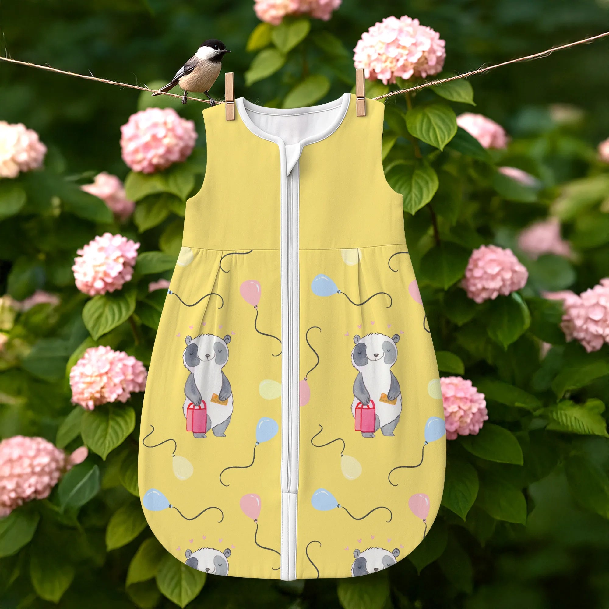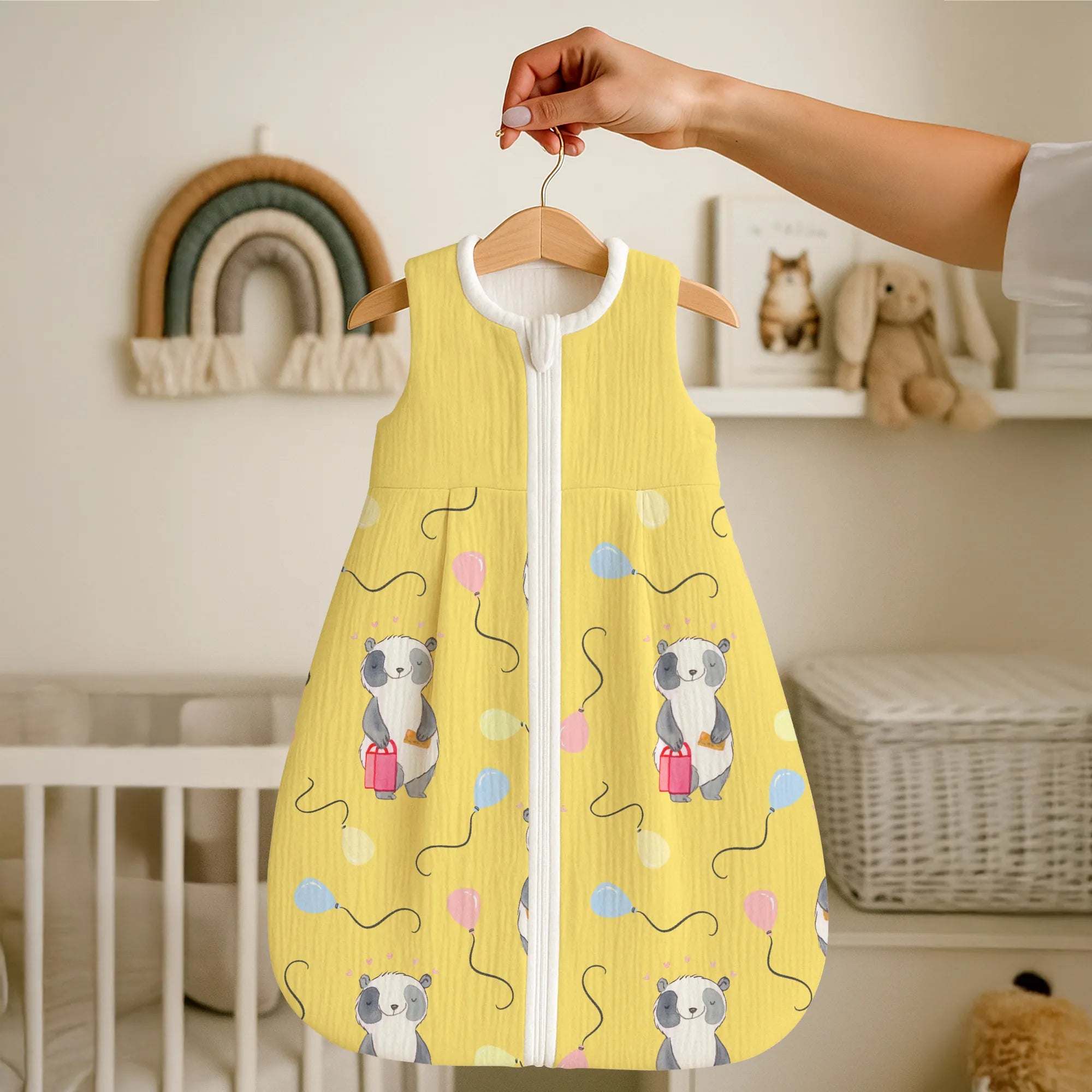 The baby sleeping bag from Mr. & Mrs. Panda combines charming design with maximum comfort. As a baby sleeping bag, it is printed with cute motifs and sayings from Mr. & Mrs. Panda and delights with very bright colors. The soft, breathable fabric ensures a high level of wearing comfort and a pleasant fit that makes dressing and undressing easier. A practical zipper allows quick diaper changes, while the fine binding at the neckline, sleeves and leg openings is gentle on the skin. Depending on the variant, it is available in different materials, including skin-friendly cotton, and comes in many sizes — please refer to the size chart. Not customizable and handmade for you. Easy care: machine washable at a maximum of 30 °C; gentle detergents recommended.