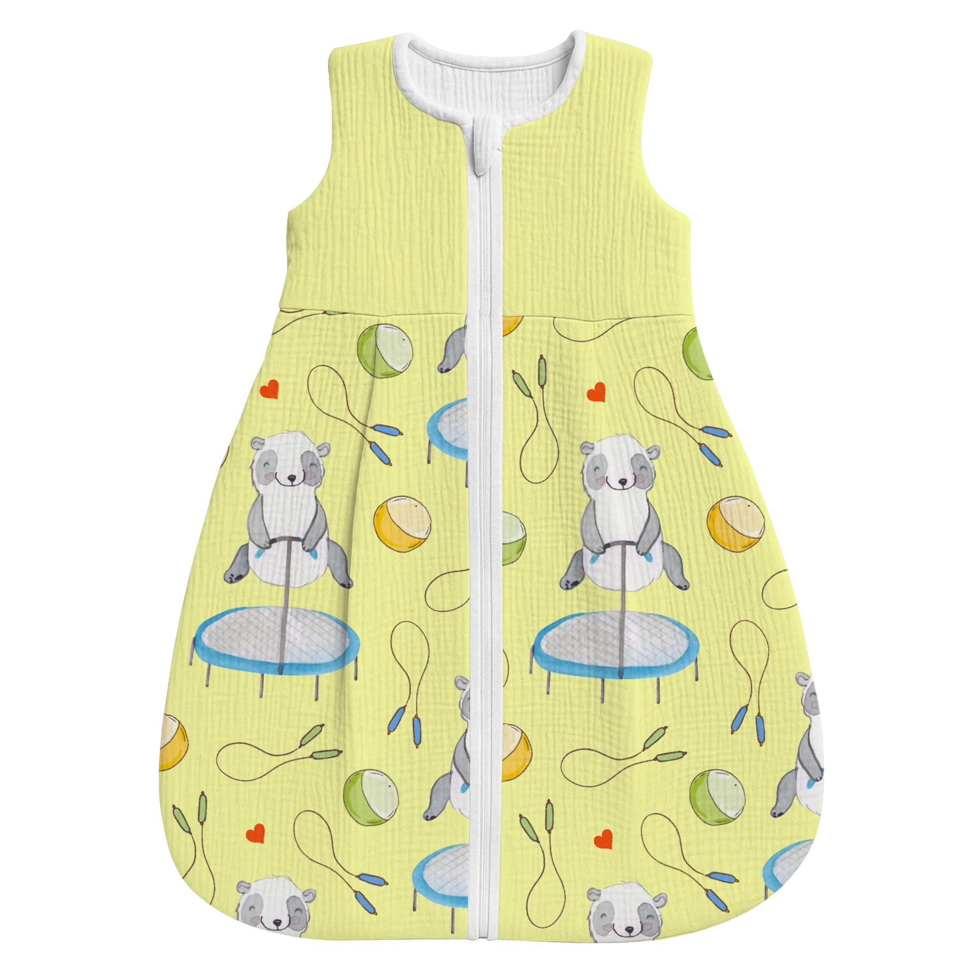 Jedes Produkt wird von Hand für dich angefertigt, was die Liebe zum Detail widerspiegelt. Die leuchtenden Farben des handgemalten Aquarell-Motivs bleiben dauerhaft schön. Ob als Dankeschön, als Auszeichnung für den tapfersten kleinen Sportler oder als Erstausstattung – dieser Schlafsack ist immer ein Volltreffer. Der ecrufarbene Hintergrund passt wunderbar in jedes Kinderzimmer. Gönne deinem Baby diesen hohen Tragekomfort und die Magie unserer handgezeichneten Welt von Mr. & Mrs. Panda. 💖