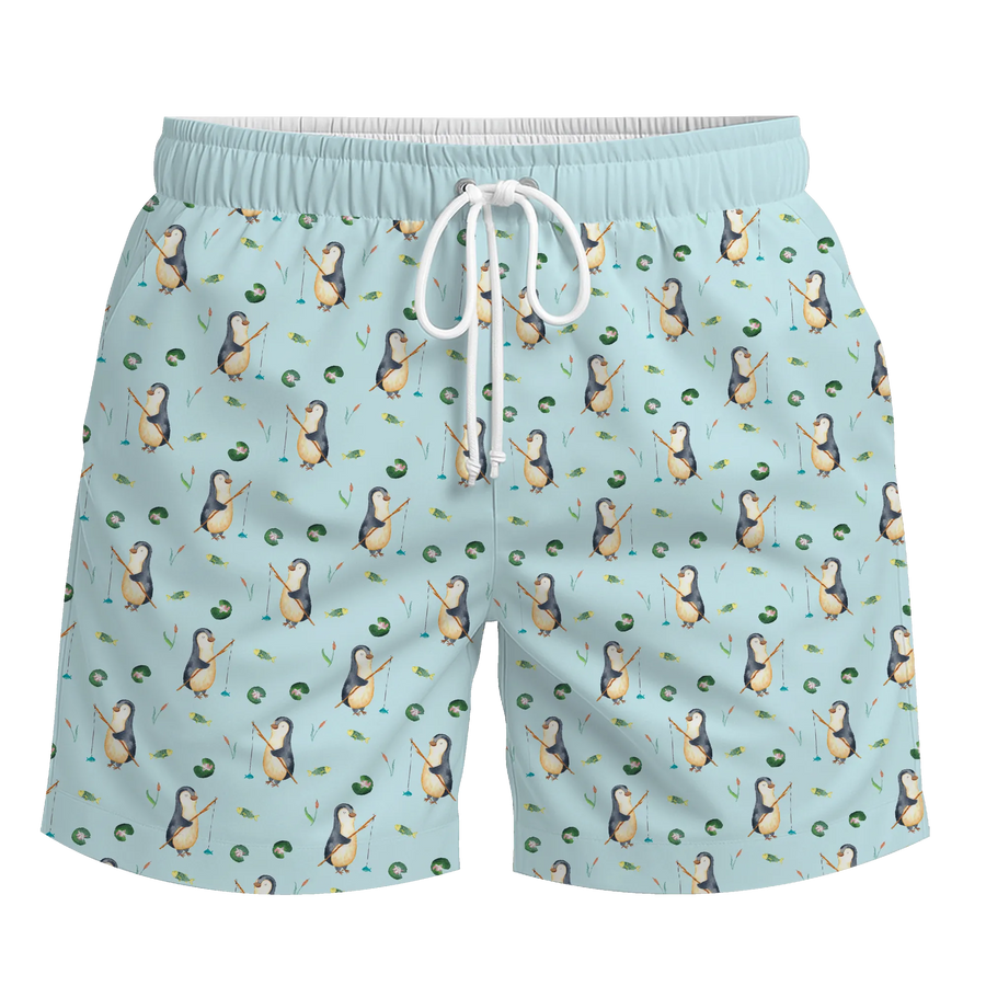 Men's swim shorts from Mr. & Mrs. Panda are your stylish swimwear for the beach, pool, and vacation. Made from 100% high-quality polyester, they stand out with extremely vibrant colors and cute motifs. The ultra quick-drying material, elastic waistband with drawstring, and inner mesh lining provide high wearing comfort and a comfortable fit. Practical side pockets offer space for small items. Durable, shape-retaining, and handmade for you. Available in many sizes—please refer to the size chart. Not customizable. Easy care: machine wash at a maximum of 30 °C, use mild detergents, not suitable for tumble drying, and do not use detergents containing bleach.