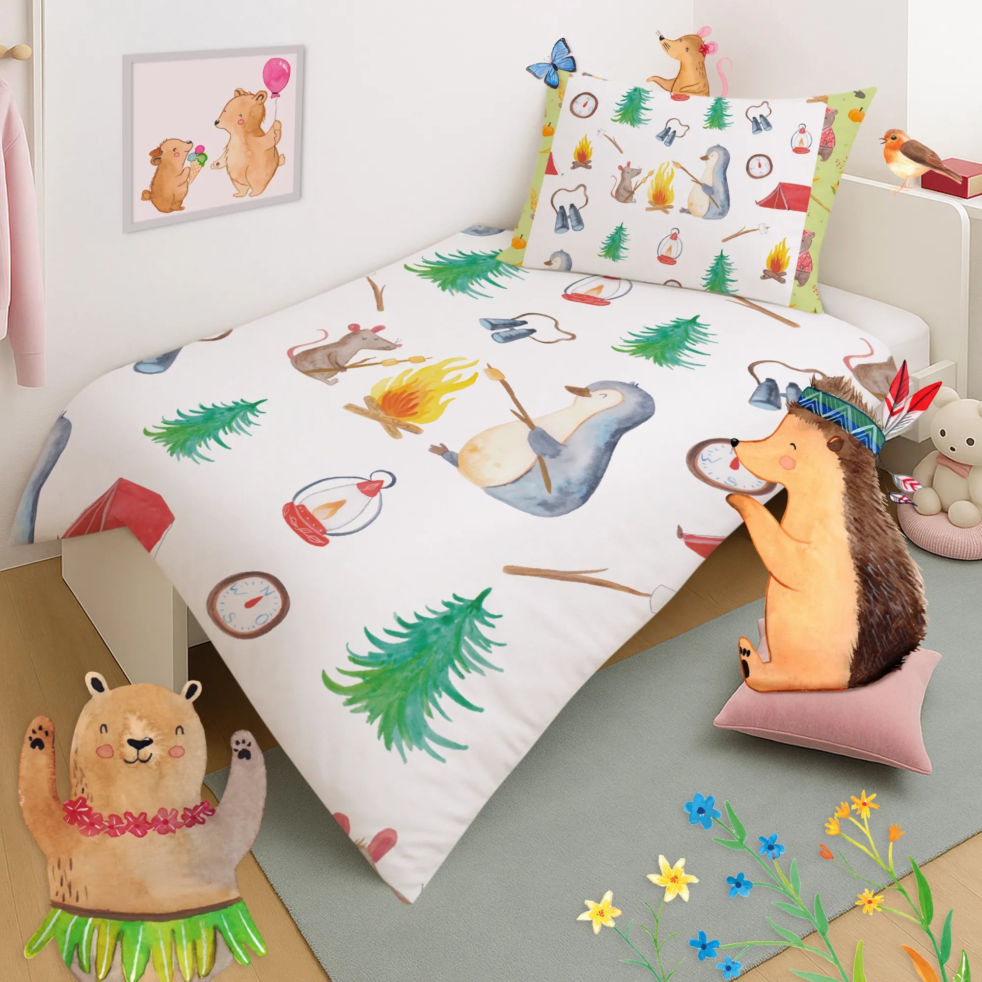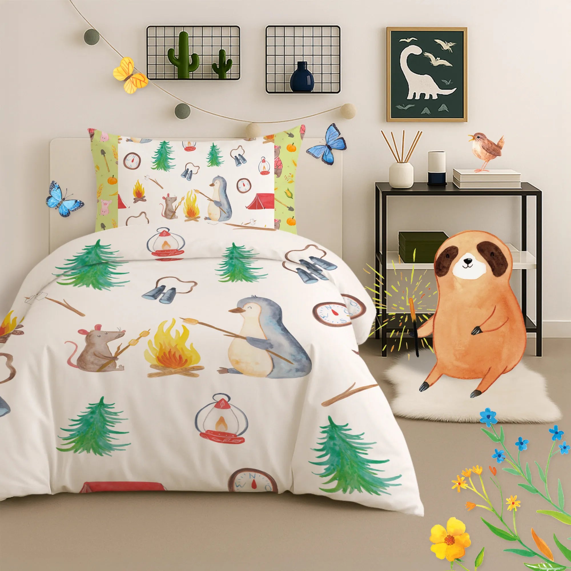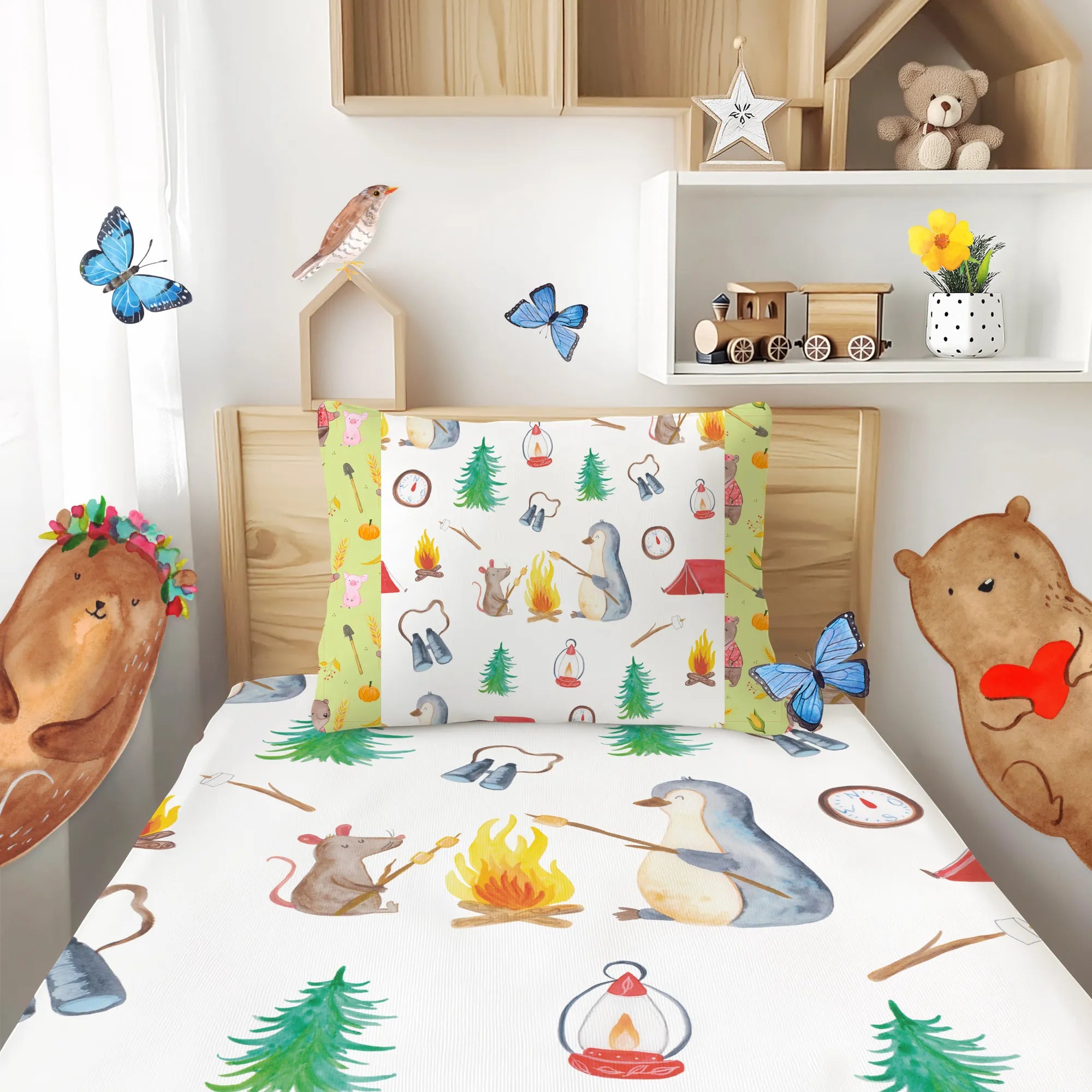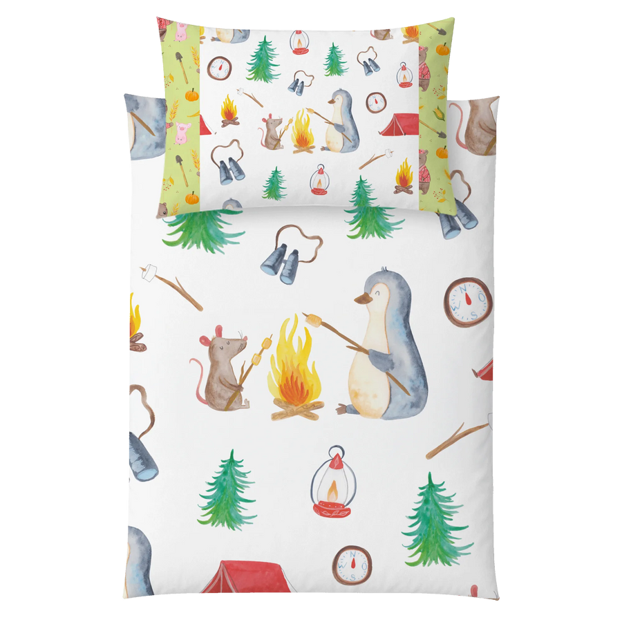 This cozy children’s bedding from Mr. & Mrs. Panda lets little dreamers fall asleep feeling safe and happy. The children’s duvet cover is printed with enchanting motifs and patterns and is made from 100% cotton sateen (130 g/m²) — pleasantly soft, breathable and airy. Special feature: made to order and hand-sewn; not customizable. Perfect for school-aged children and toddlers and a loving gift idea for starting school, for a christening or for a birthday. Care instructions: wash inside out at a maximum of 30°C to keep the colors bright for longer.