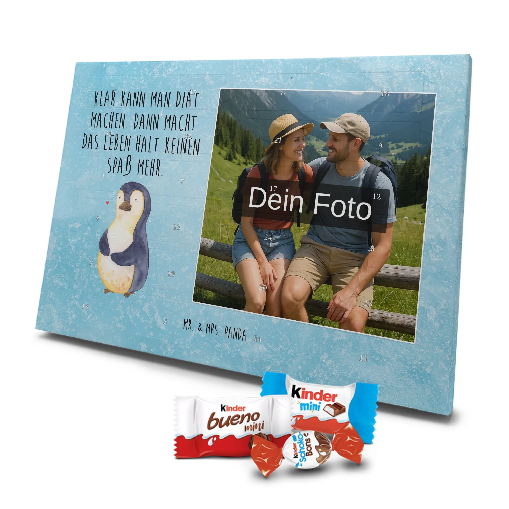 🐼 Personalisierter Schoko Foto Adventskalender mit deinem Foto, Mr. & Mrs. Panda Sprüchen und kinder® Schokolade.