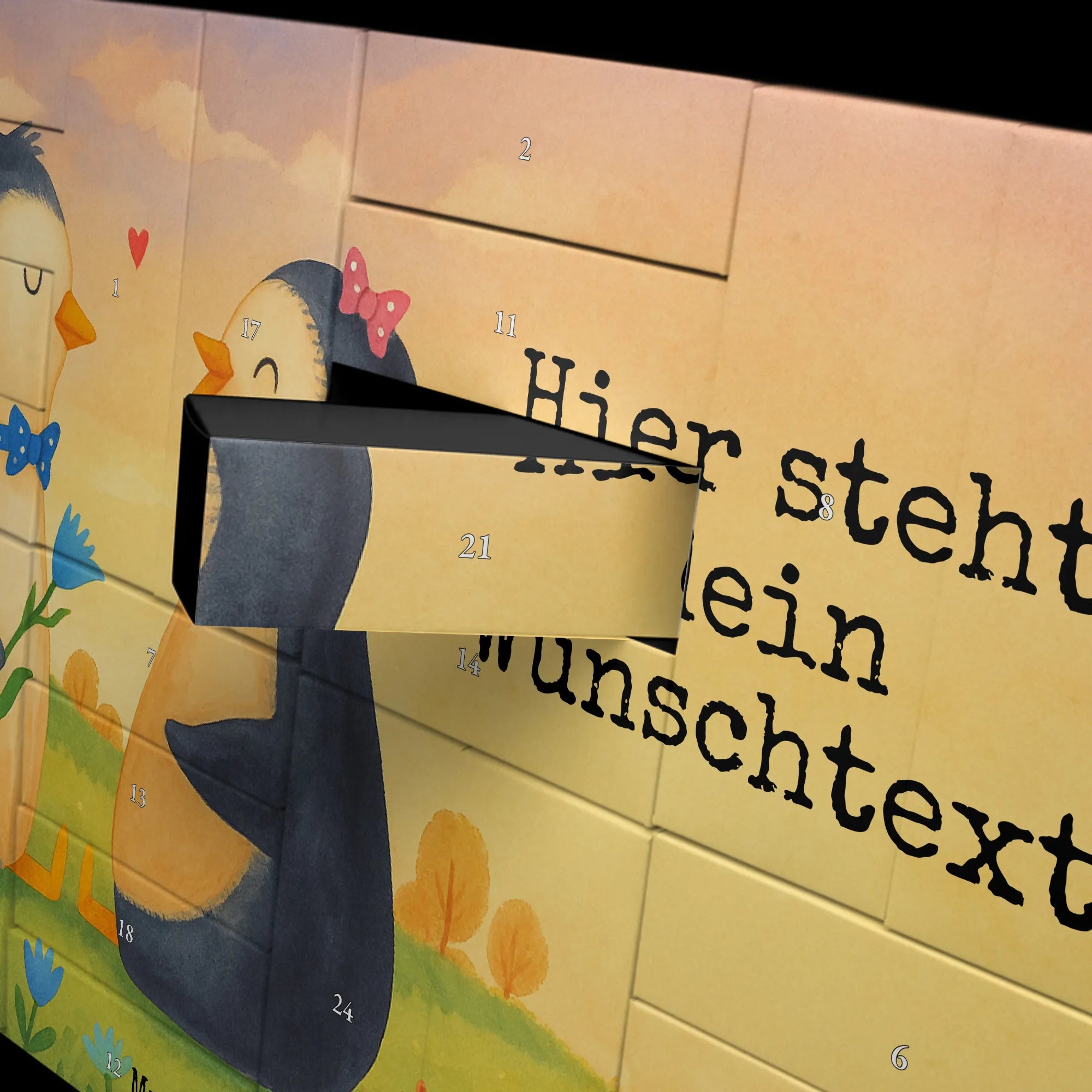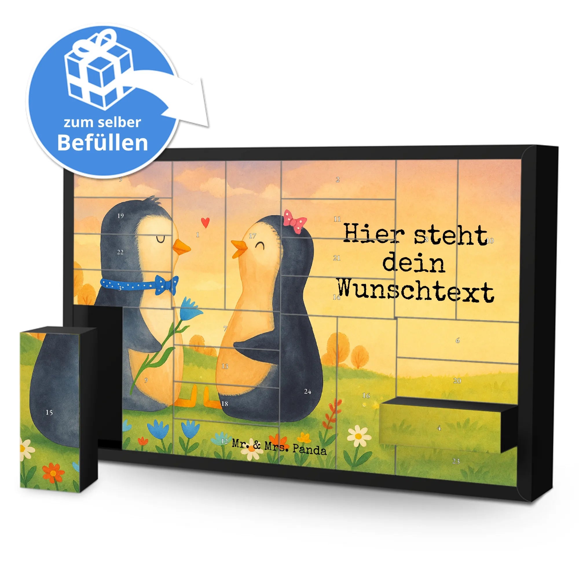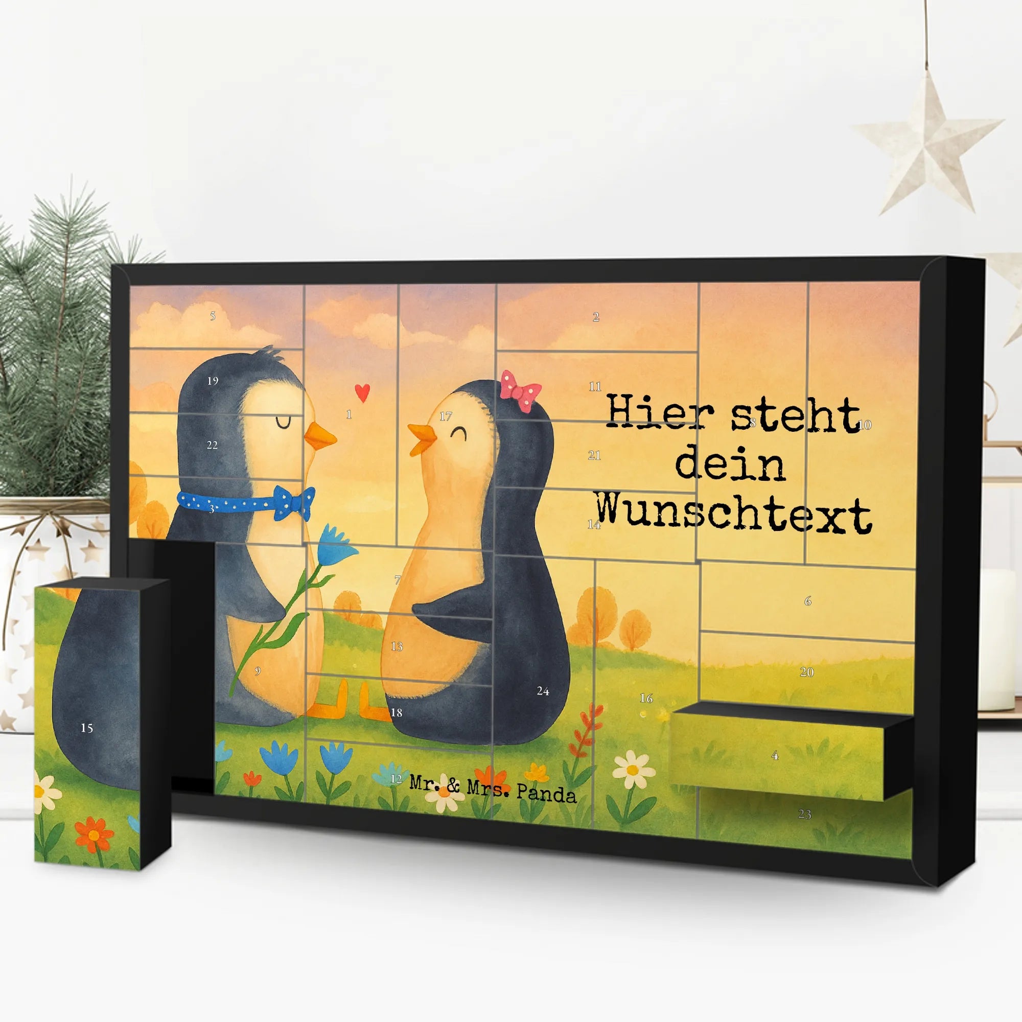 Discover the magic of the Advent season with Mr. & Mrs. Panda's personalized fillable Advent calendar. With the option to fill it with your own favorite surprises, this calendar becomes a heartwarming centerpiece of your holiday preparations. Each of the 24 boxes is ready to be uniquely filled by you, bringing daily joy to your loved ones or yourself. The heartfelt drawings and sayings, combined with the ability to personalize the calendar with a name or message of your choice, make it an incomparable and special gift that makes the Christmas season even more magical.