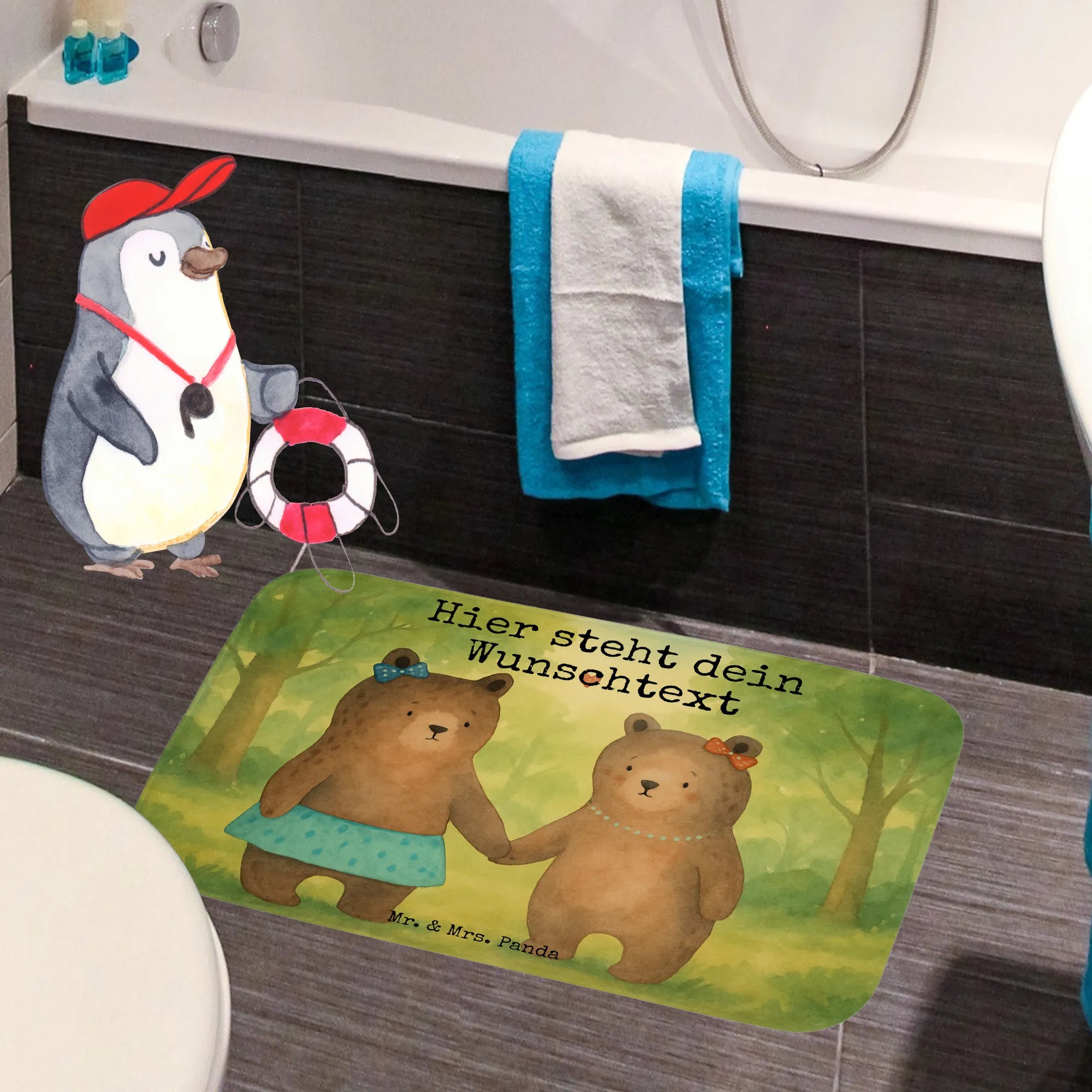 🐼 Elevate your bathroom with our personalised bath mat featuring stunning designs and custom text.