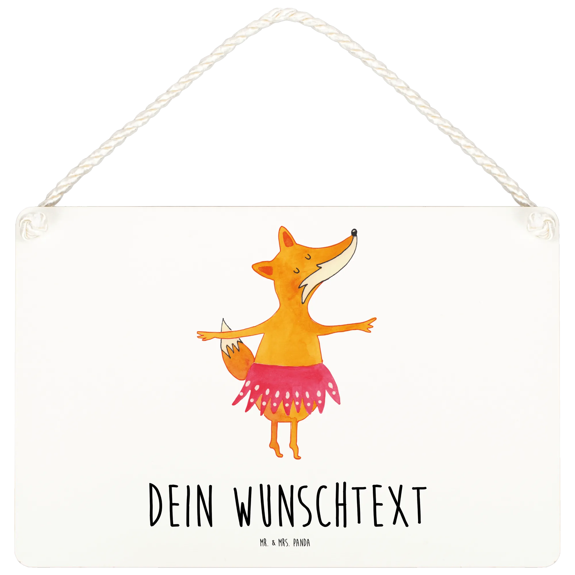 Personalised decorative sign Fox ballerina - DIN A6 - White